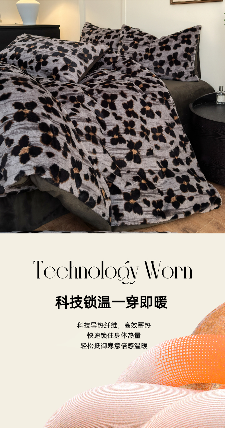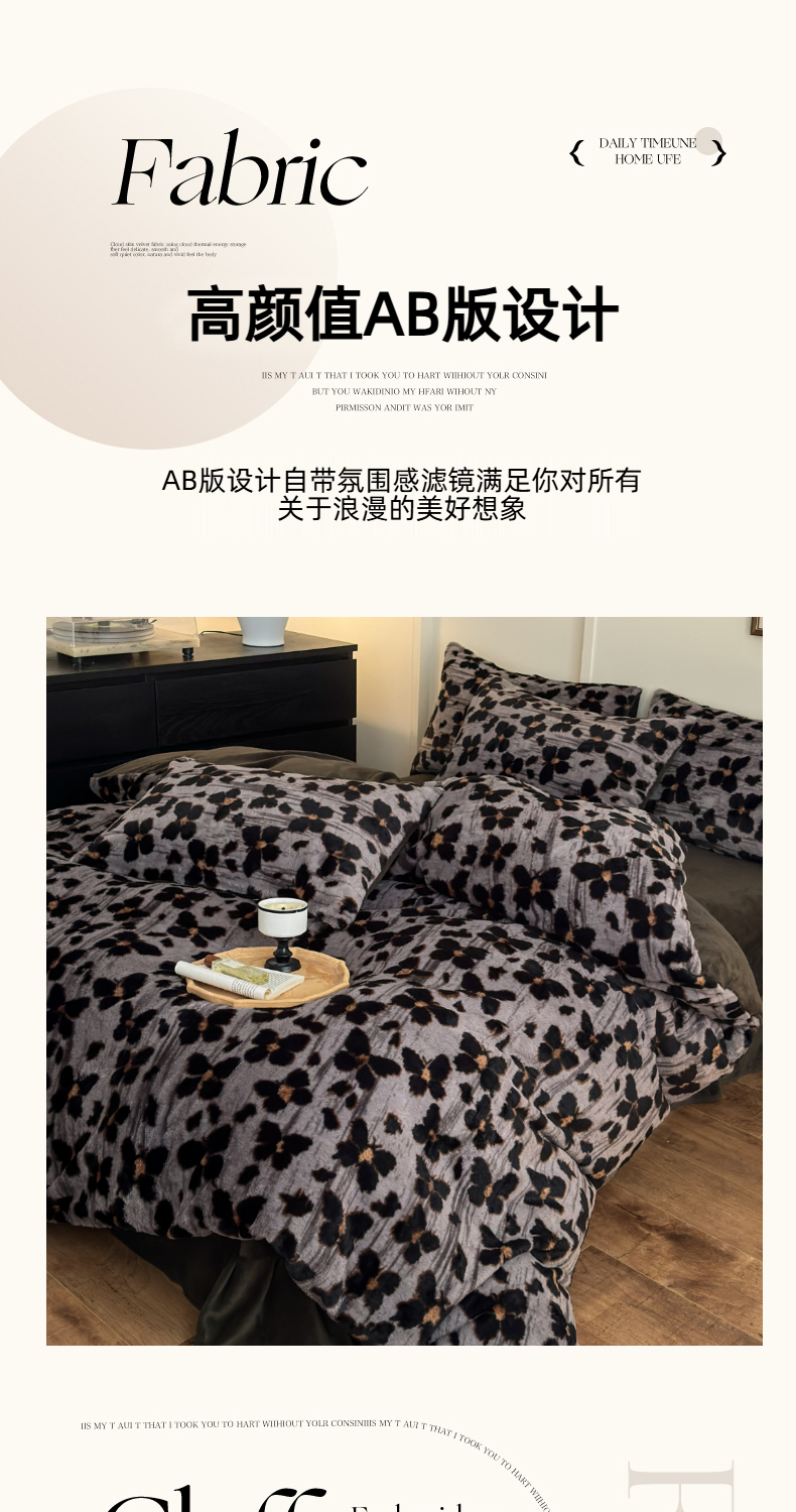 (总)十里居 2025新款兔毛印花法式轻奢系列牛奶绒四件套,豹纹蝴蝶,蝶舞咖,法式白,花海,花影灰,玫瑰
