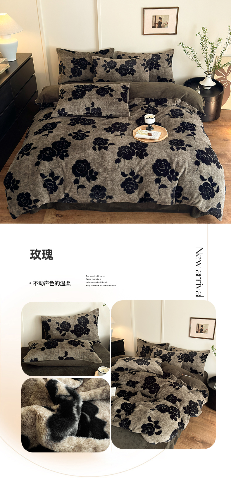 商品名称:十里居 2025新款兔毛印花法式轻奢系列牛奶绒四件套 玫瑰
