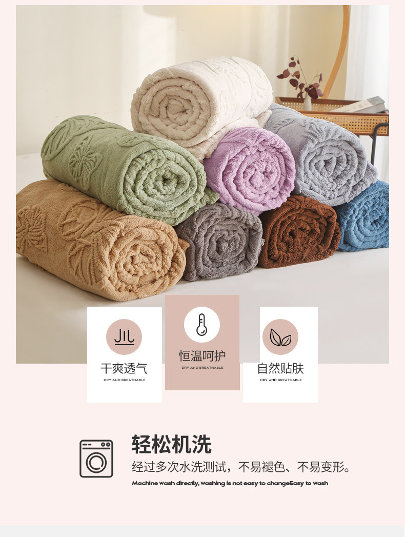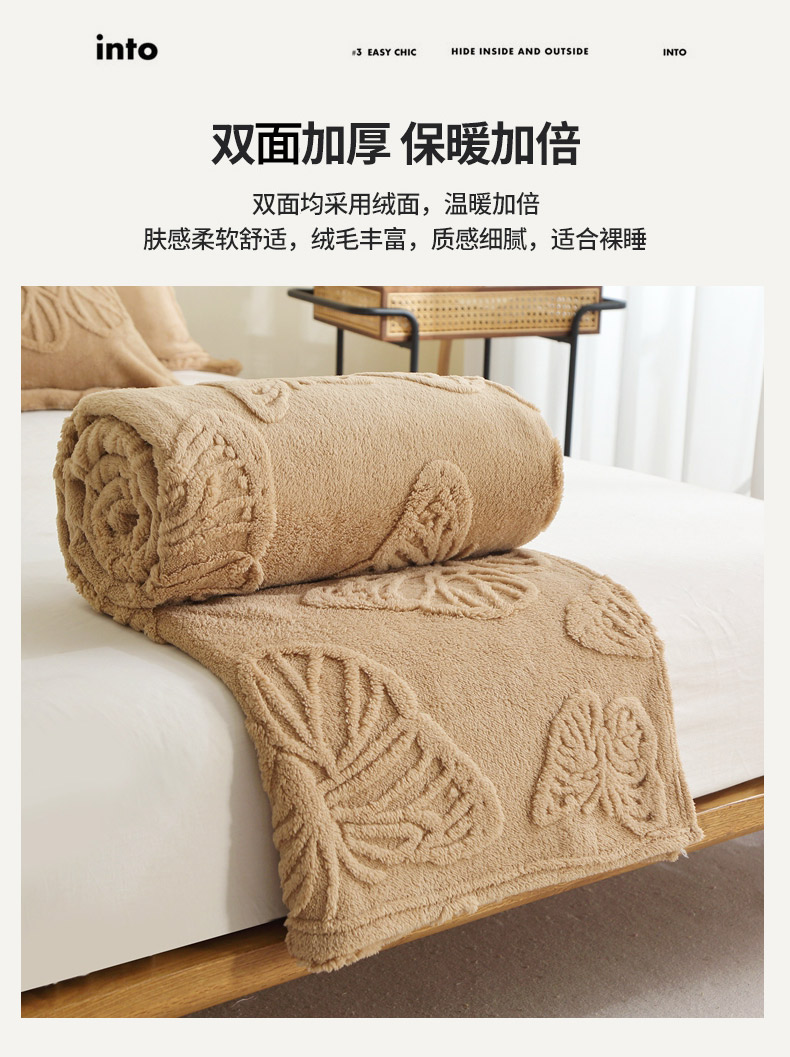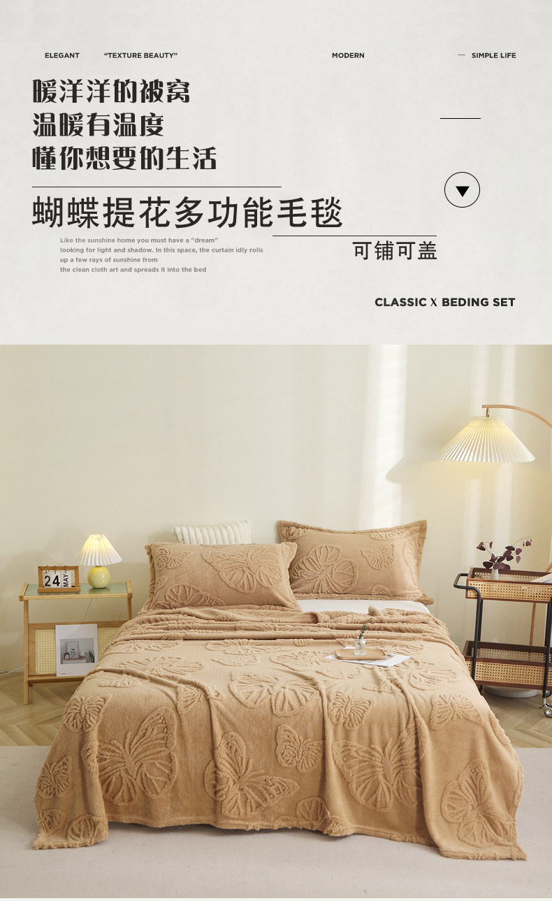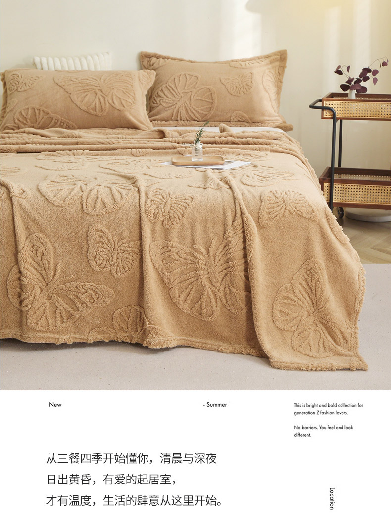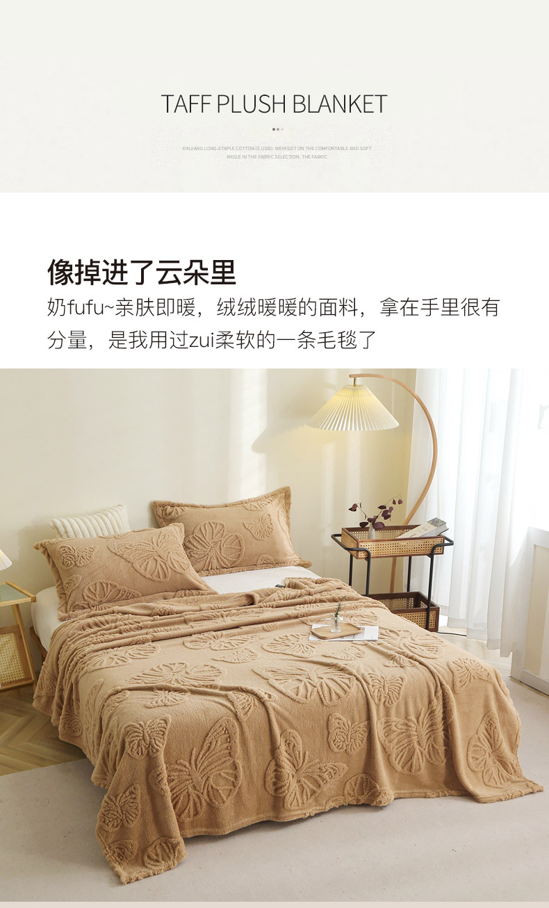 栩裕纺织 2024新款蝴蝶提花卷边款多功能毛毯 蓝灰-卷边款
