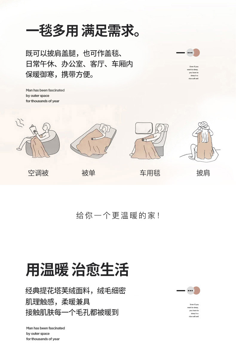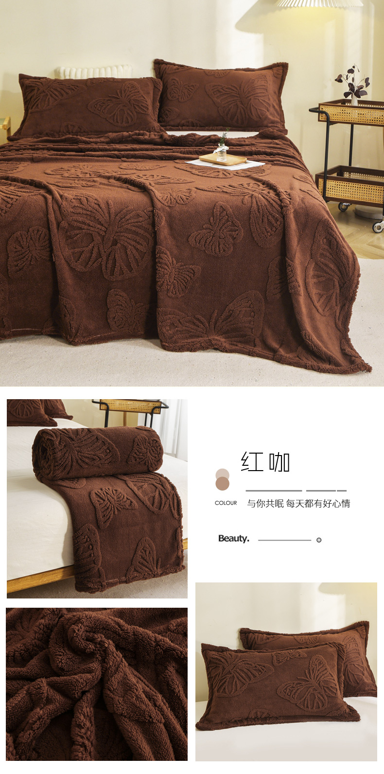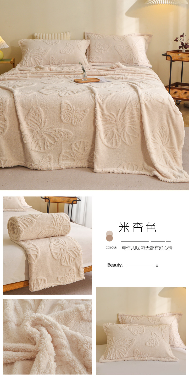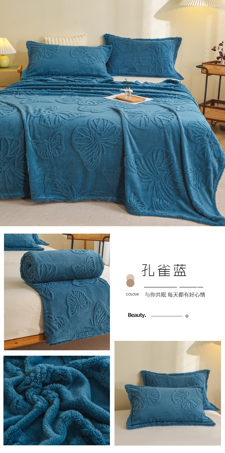 商品名称:栩裕纺织 2024新款蝴蝶提花卷边款多功能毛毯 蓝灰-卷边款