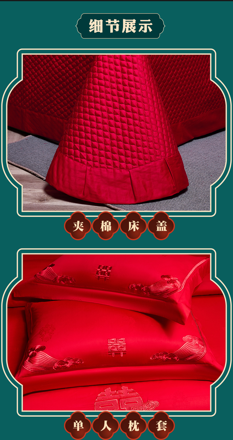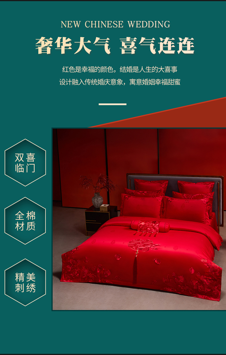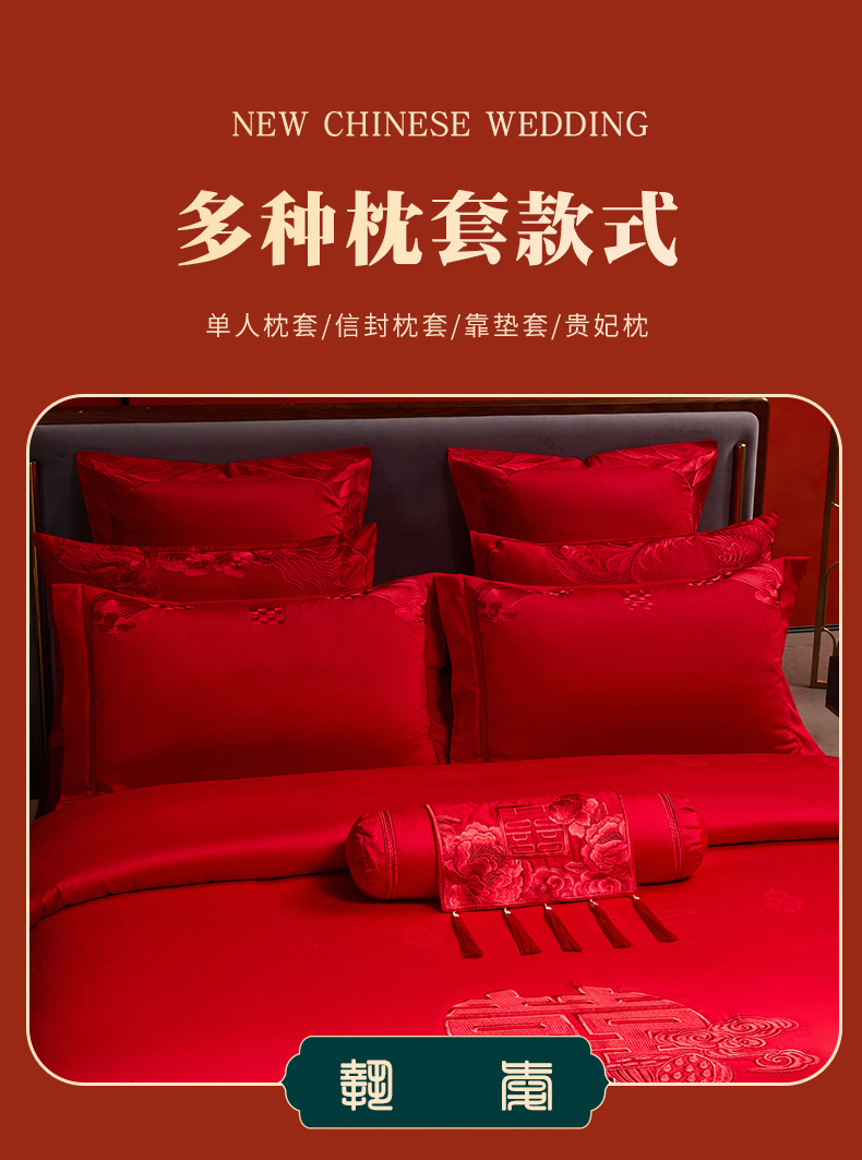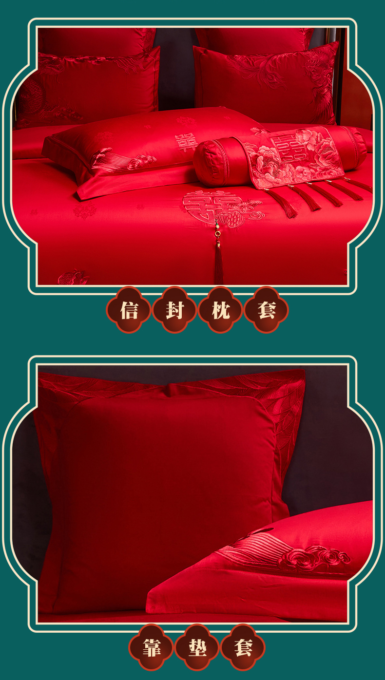 当前位置: 91家纺网 > 商品网购 > 床品套件 > 四件套 > 婚庆四件套 > 宏羽纺家纺 2025新款高支高密全棉提花新中式婚庆多件套 高支高密榴连忘返-红