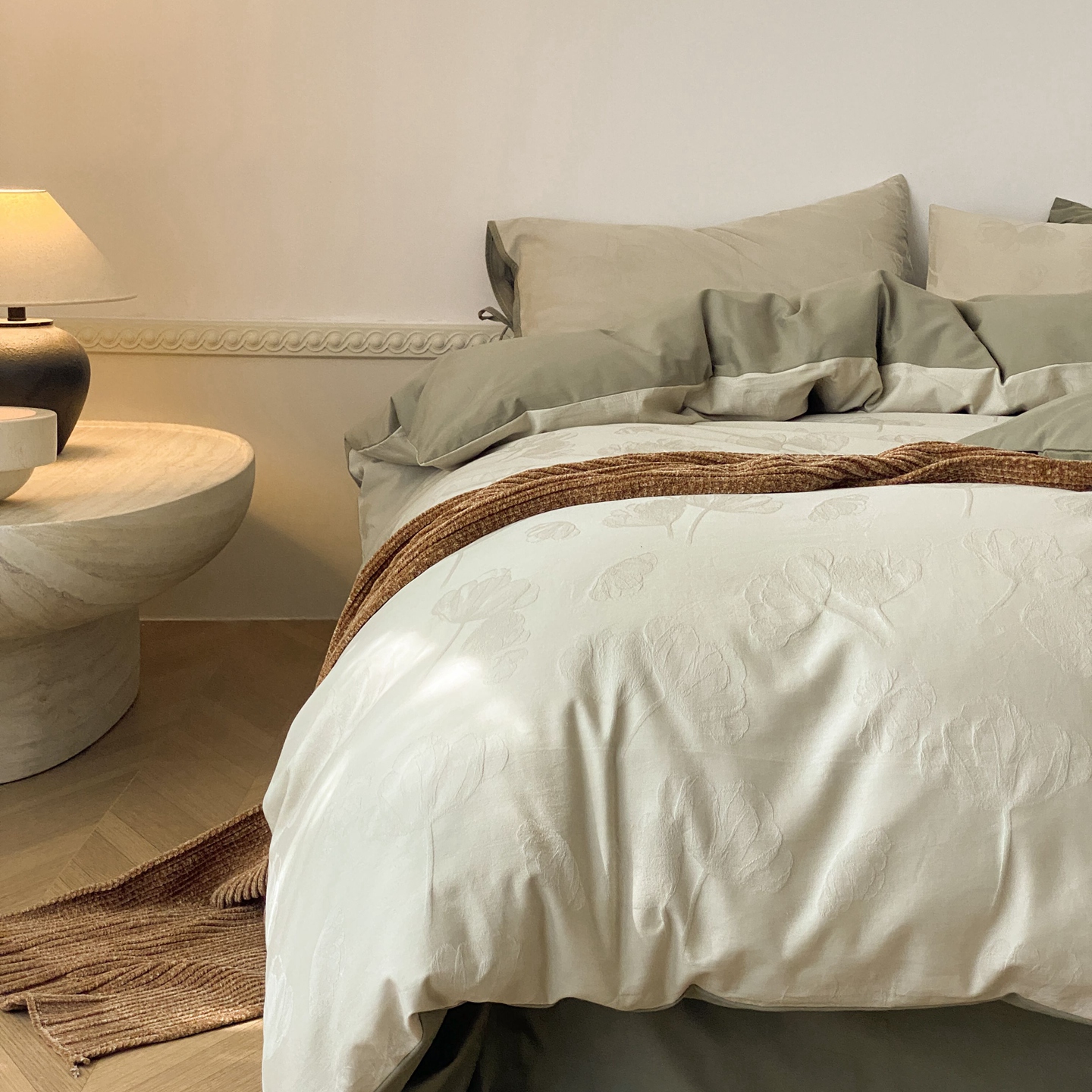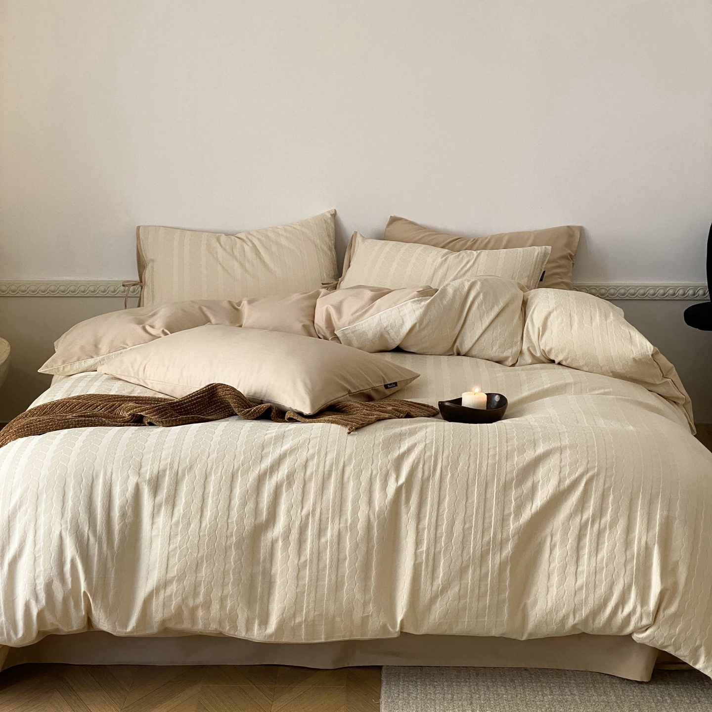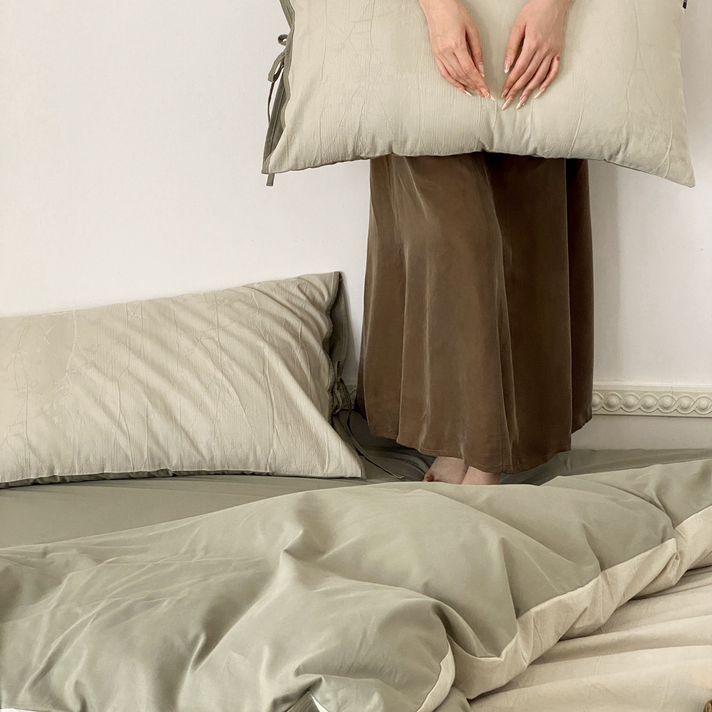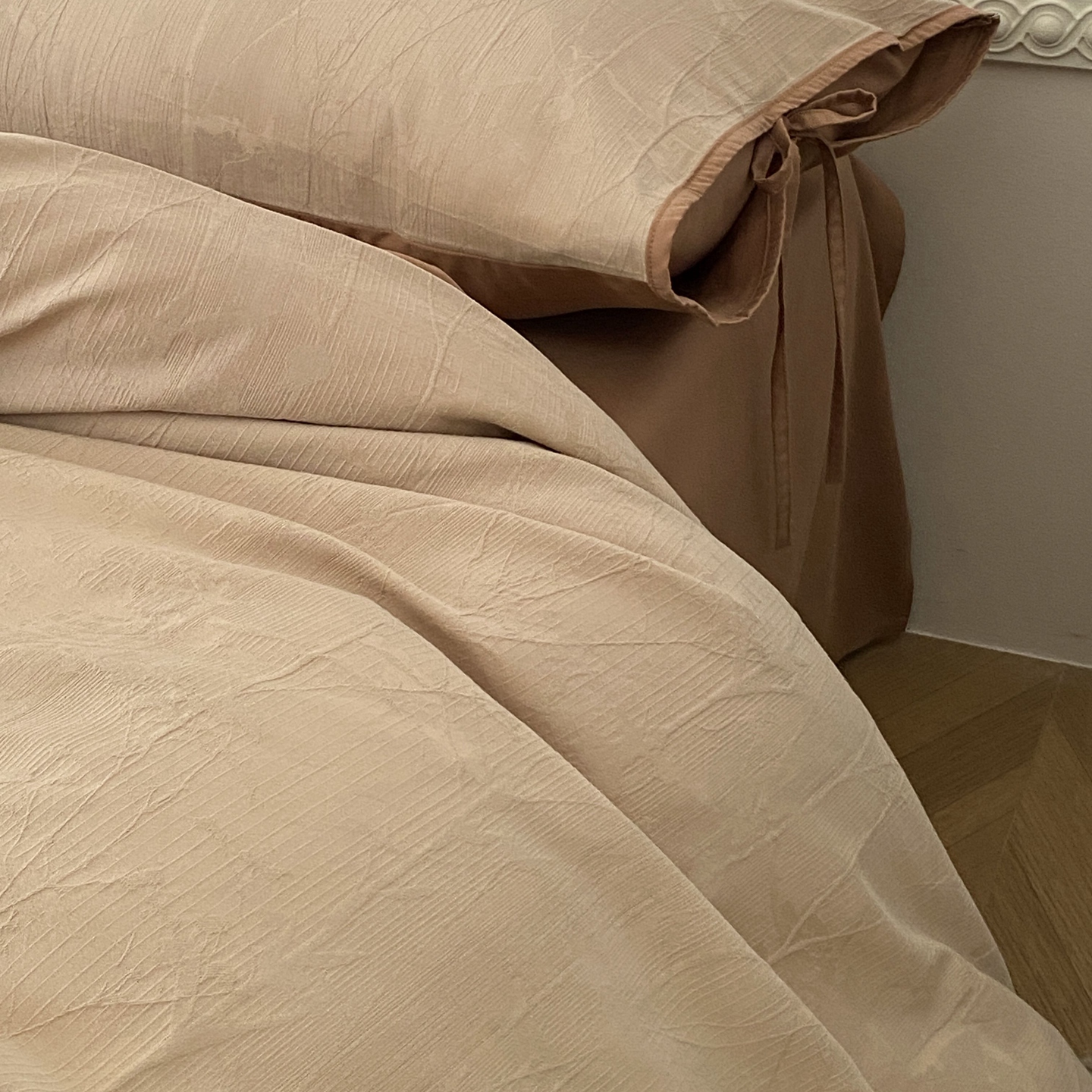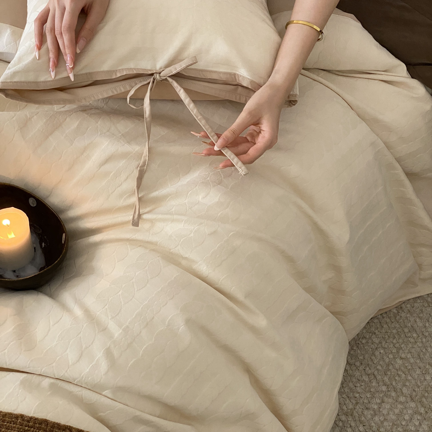 当前位置: 91家纺网 > 商品网购 > 床品套件 > 四件套 > 全棉普通四件套 > 玉宇阁家居 2025秋冬新品60s色织全棉磨毛大提花四件套-绑带款 绑带款-缃叶棕