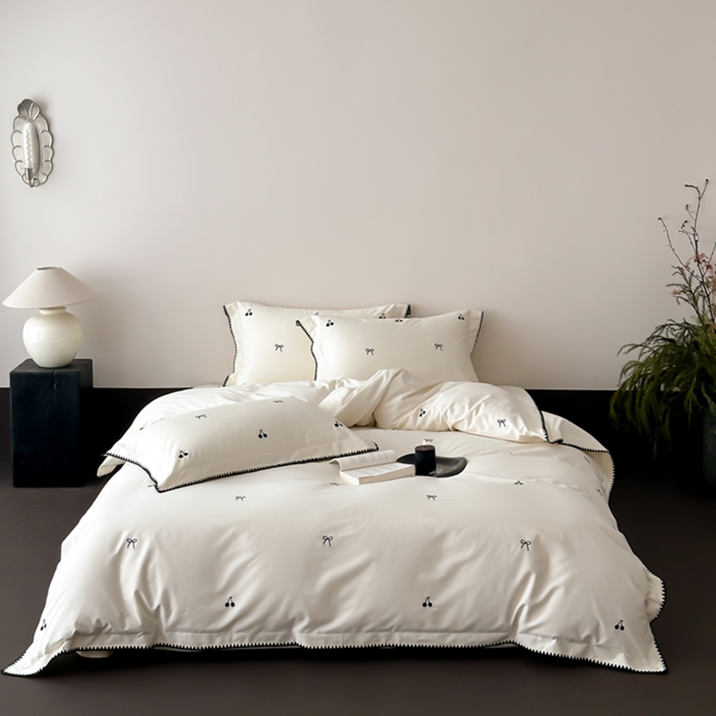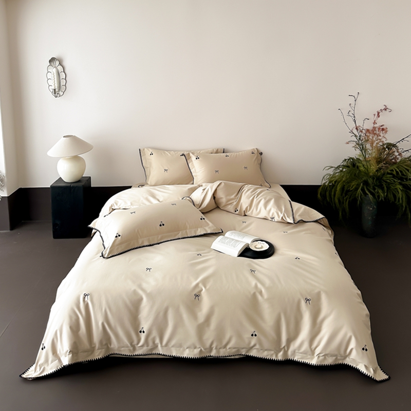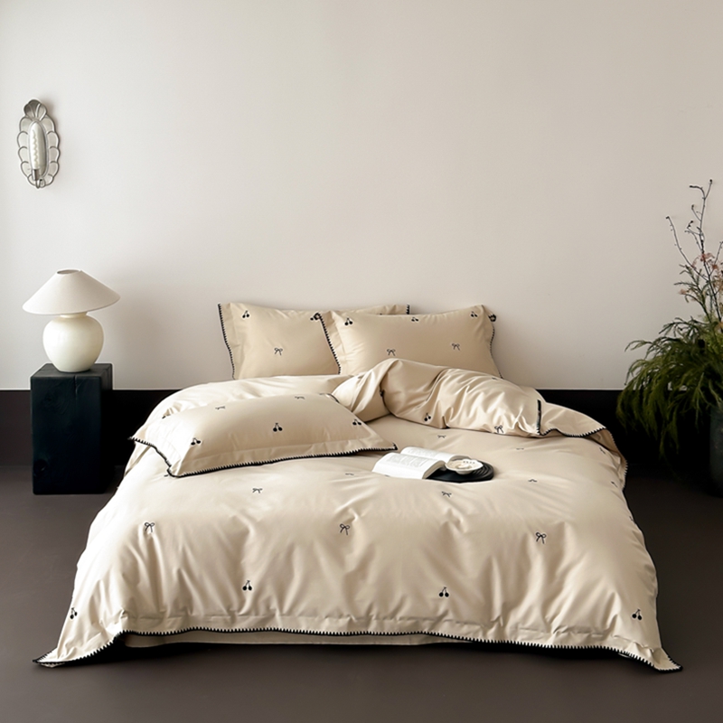 商品名称:时亿家居 2025新款亲肤舒适黑樱梦境磨毛款四件套 磨毛香槟