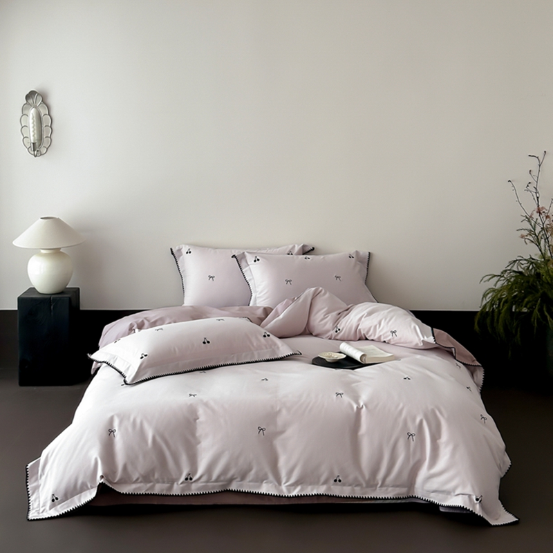 (总)时亿 2023新款100支长绒棉四件套心晴,心晴-粉,心晴-灰,心晴-蓝