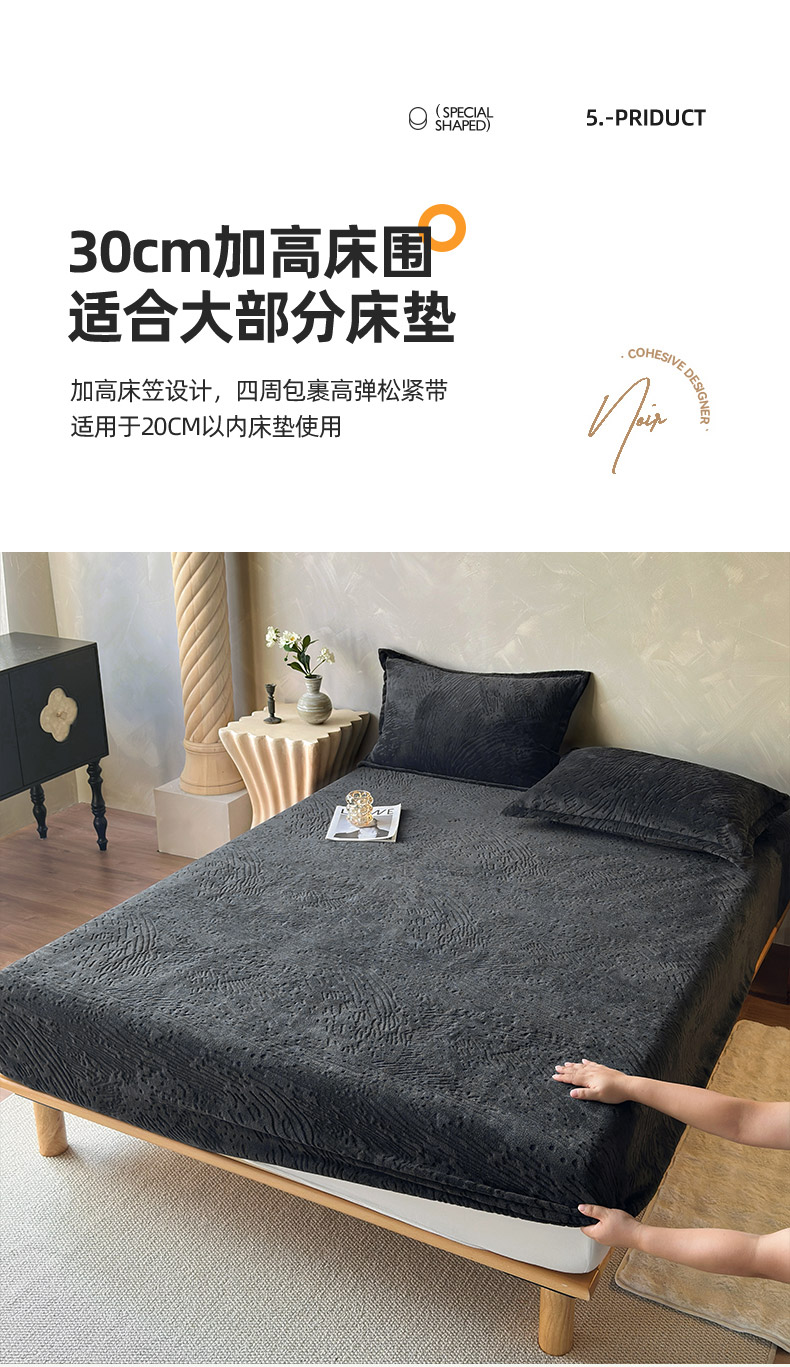 (总)久云居 2025新款牛奶绒剪花床笠,深邃黑,藏蓝,灰调,米白,暖棕,藕粉