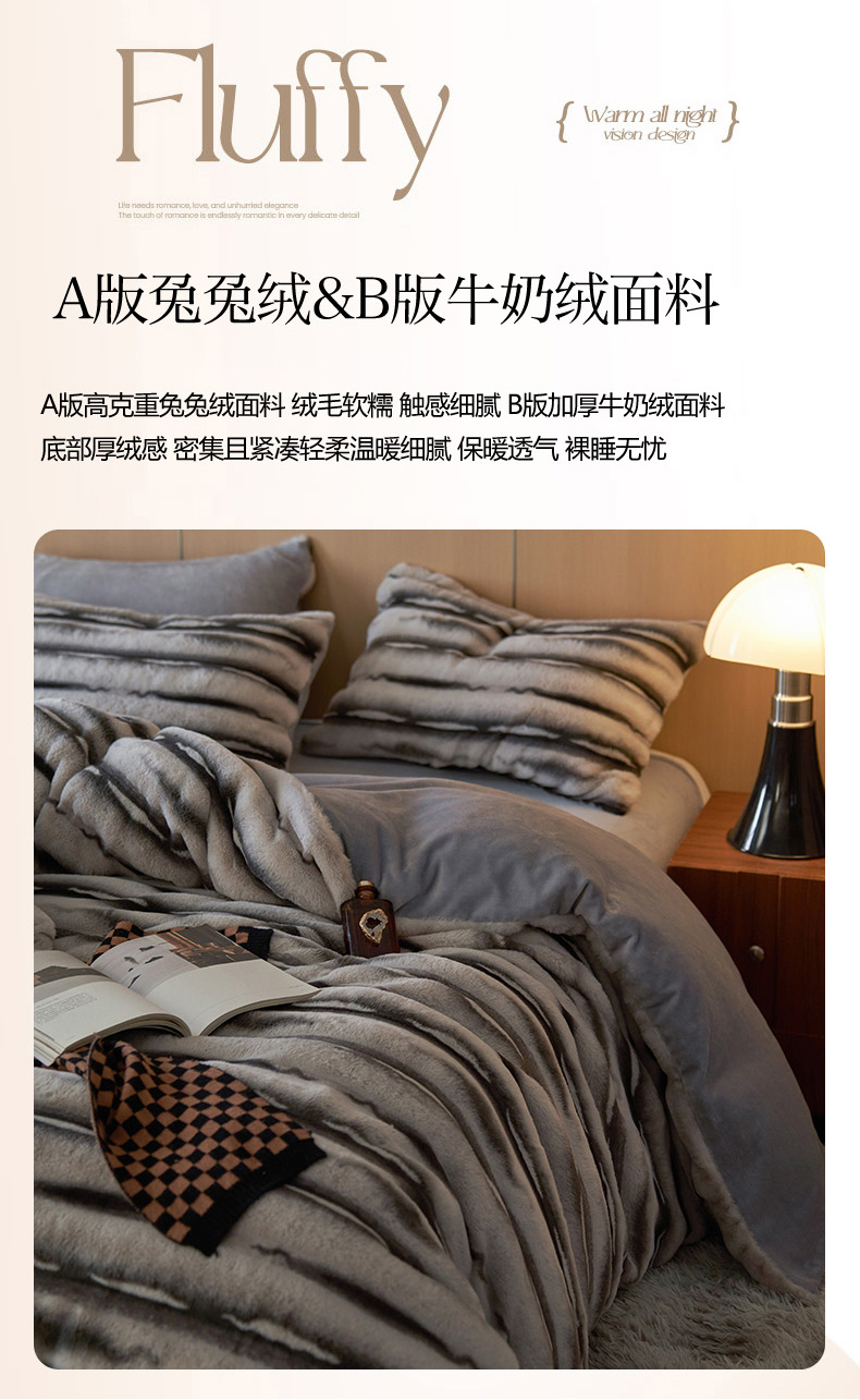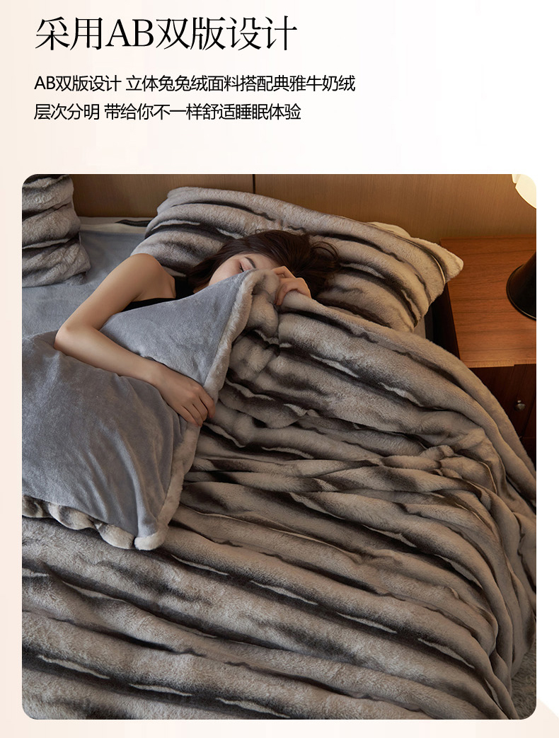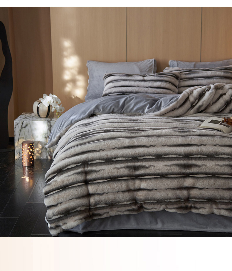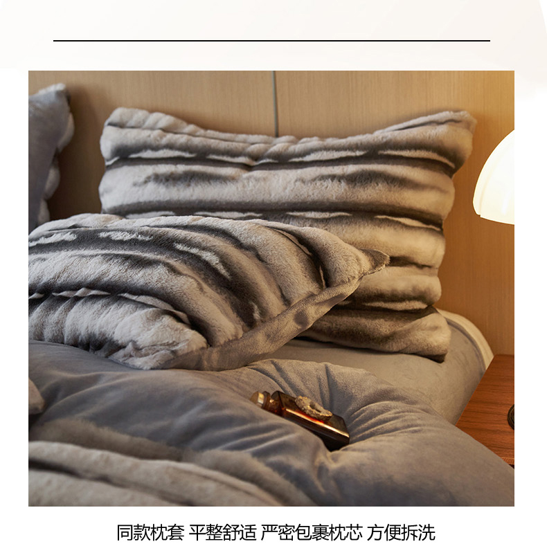 商品名称:眠博士 2025新款兔兔牛奶绒加厚保暖四件套 兔兔绒-条条灰
