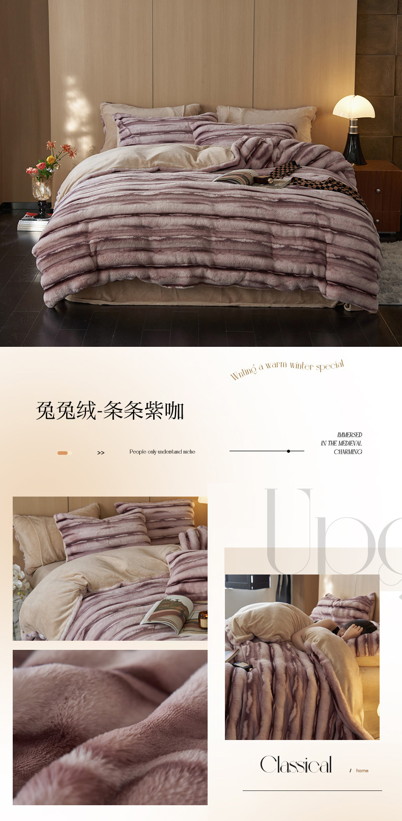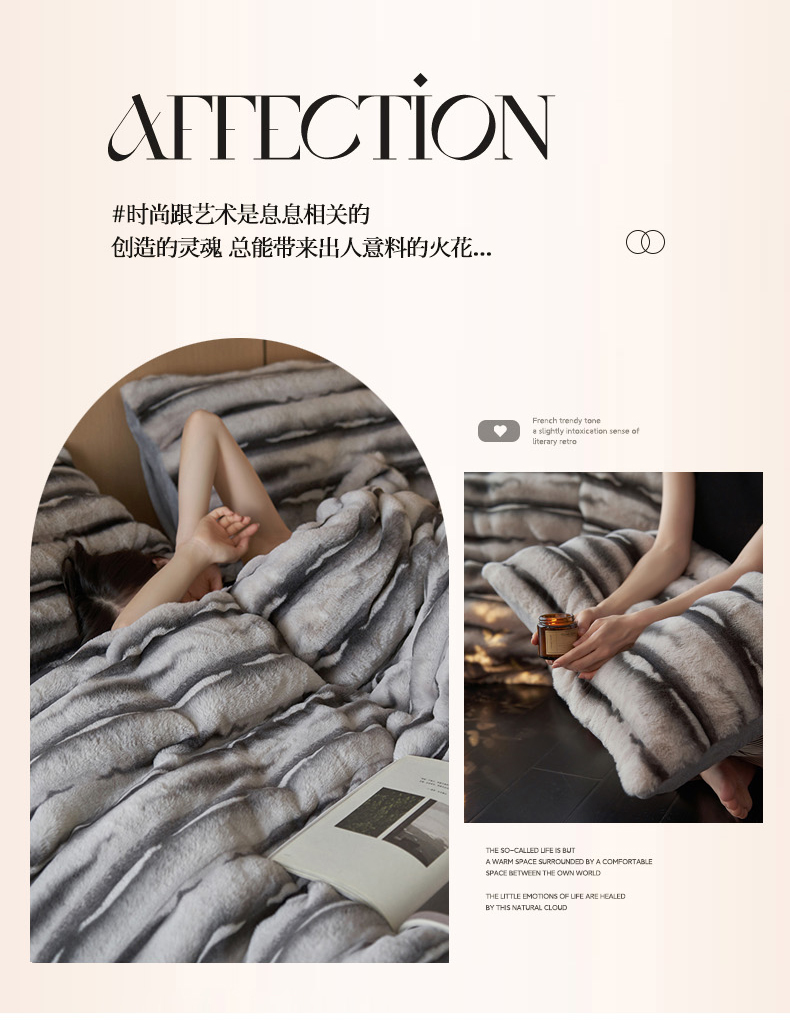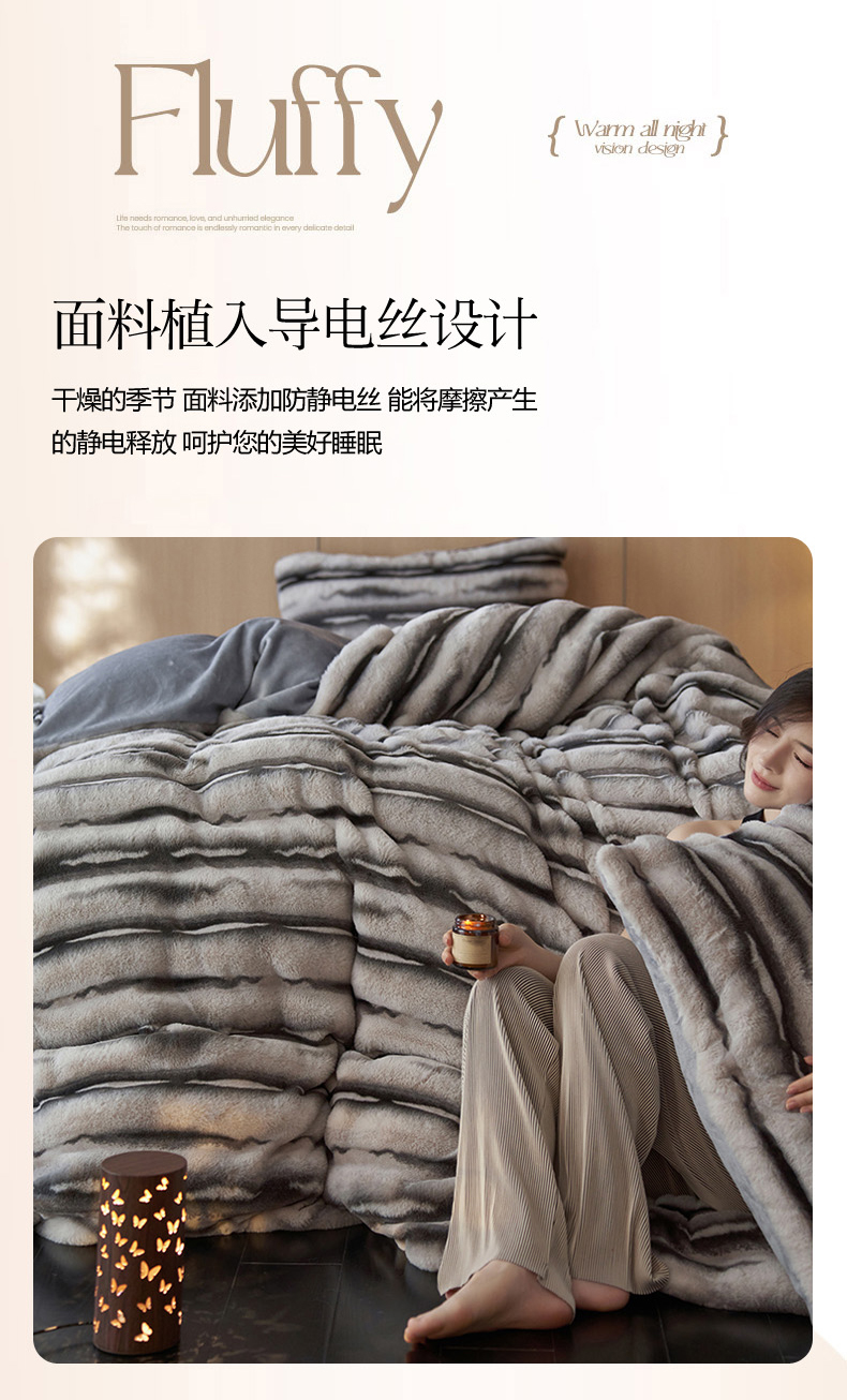 商品名称:眠博士 2025新款兔兔牛奶绒加厚保暖四件套 兔兔绒-条条灰