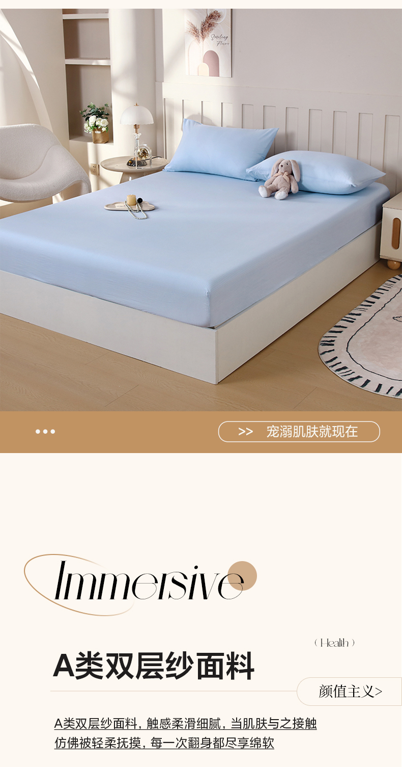 • 91家纺网 家纺一手货源 找家纺 (总)一诺家居 2025新款A类云感双层纱纯色床笠针织棉母婴级裸睡床笠三件套 量大可优惠,叠拍图床笠款,豆蔻绿,暮云灰,奶昔白,天空蓝,香妃玉,熏衣紫,优雅粉,月光蓝,珍珠白