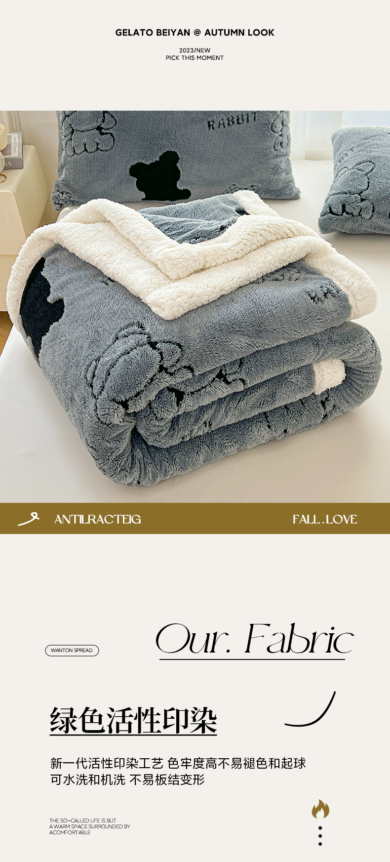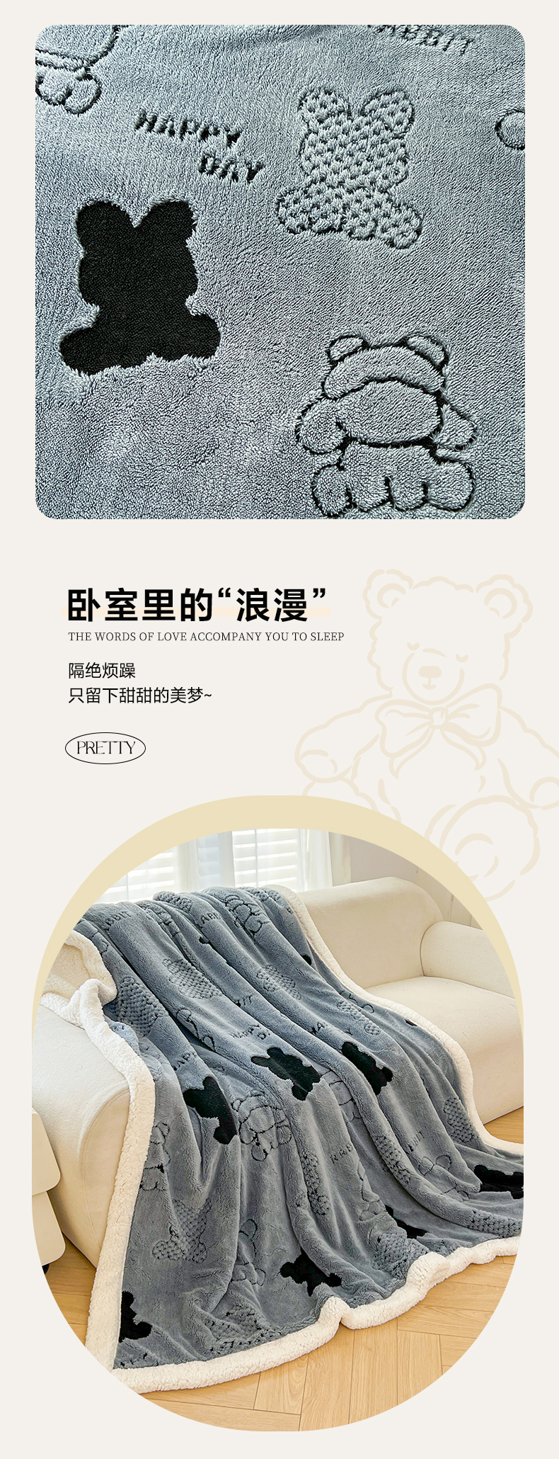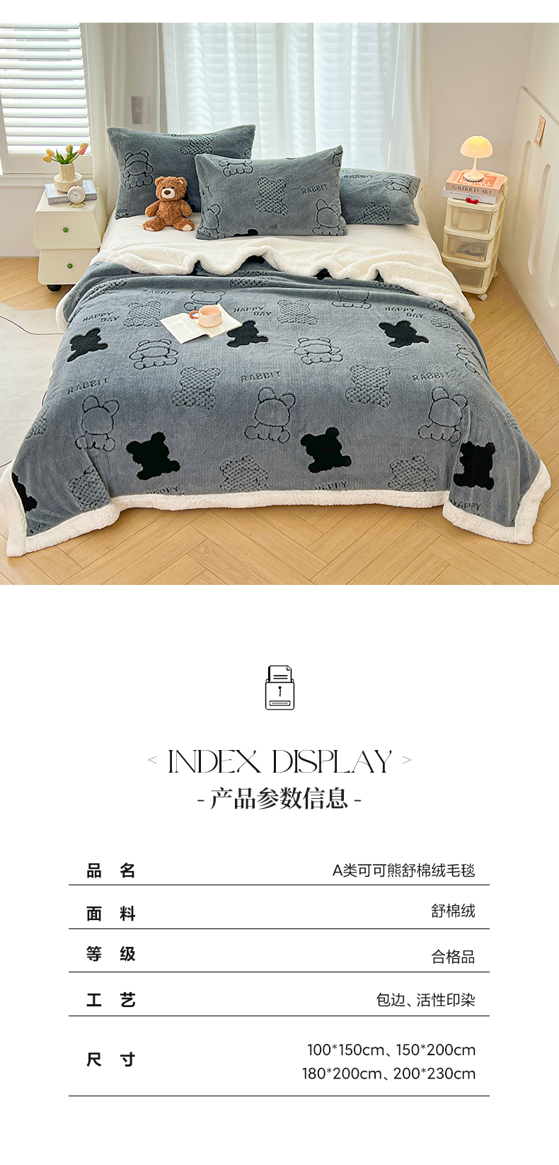 欧邦 2025新款A类舒棉绒毛毯盖毯毯子-可可熊 可可熊-蓝灰