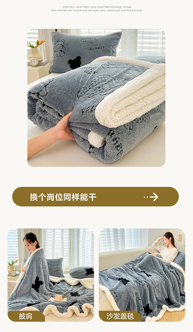 (总)欧邦 2025新款提花暖阳绒羊羔绒毛毯多功能盖毯-梦境系列,梦境-粉玉,梦境-幻白,梦境-米驼,梦境-桑绿,梦境-雾灰