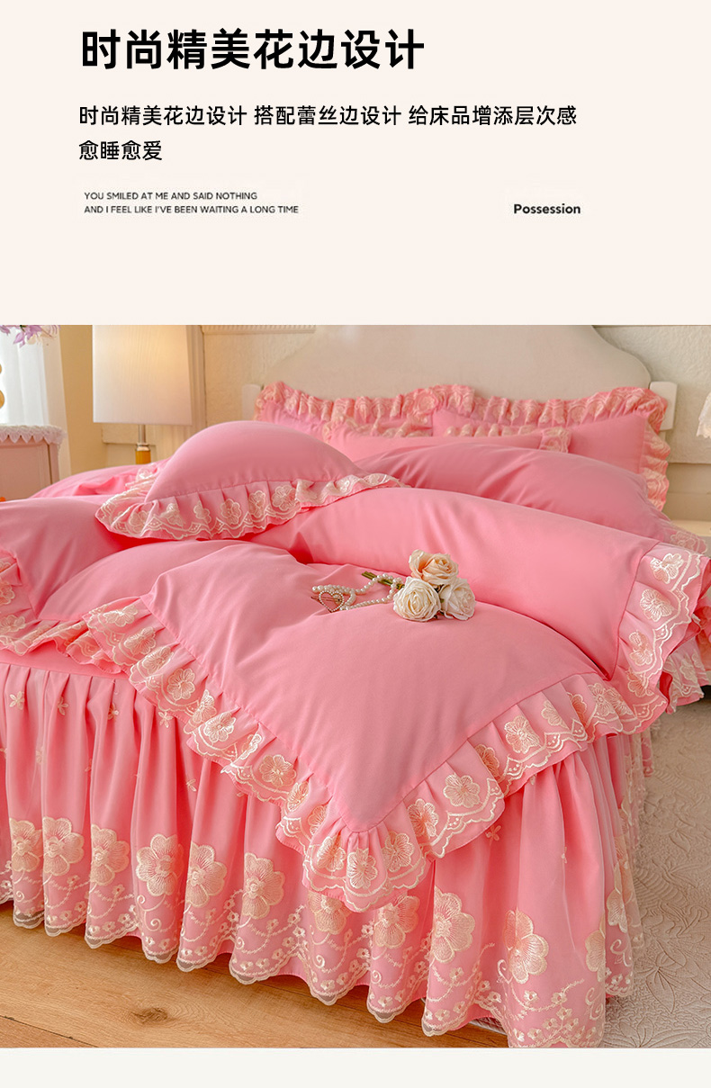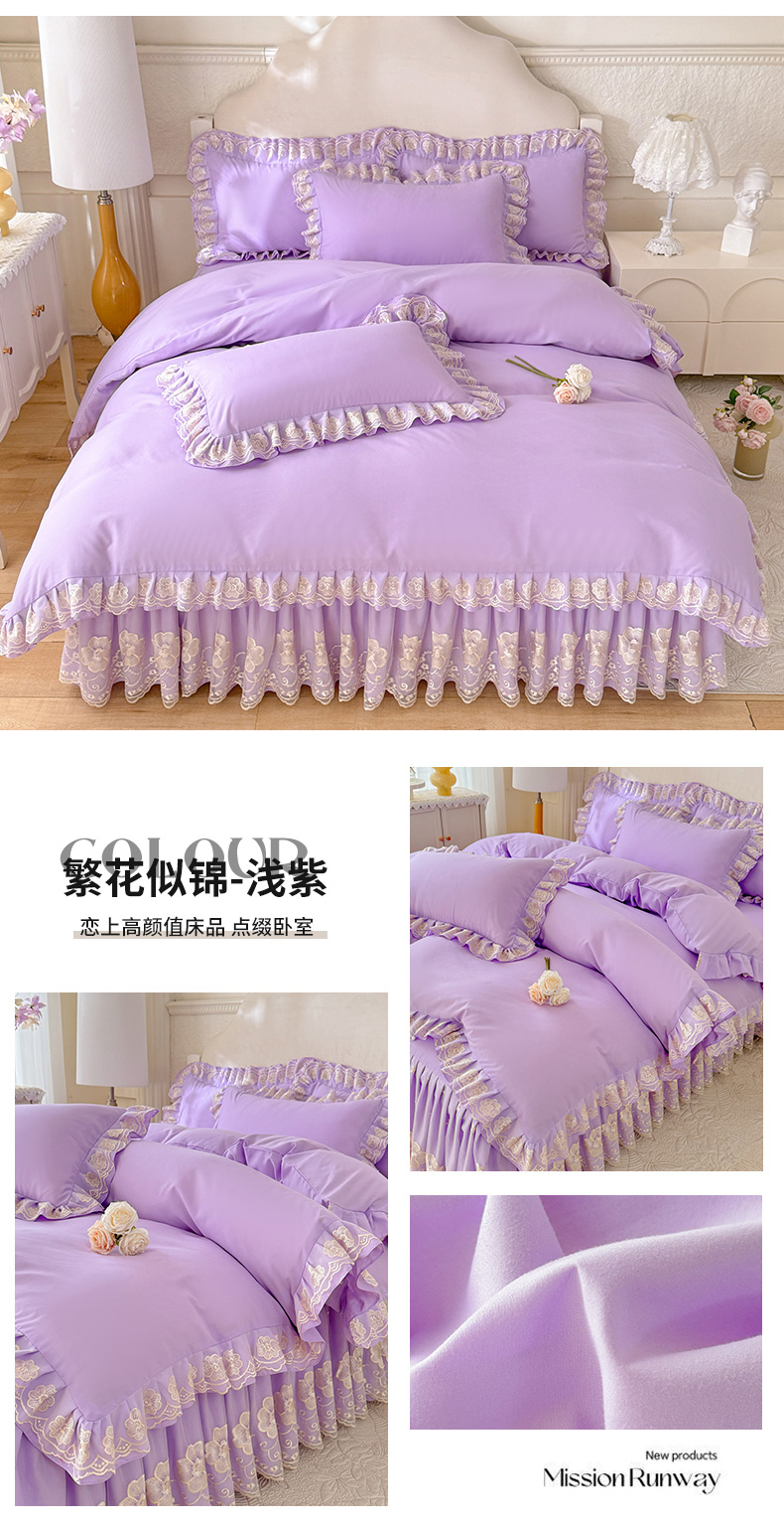 (总)后庭寝室 2025新款牛奶绒花边床裙四件套-浪漫花语系列,浪漫花语-暖黄,浪漫花语-公主玉,浪漫花语-梦幻紫,浪漫花语-暖粉玉,浪漫花语-少女粉,浪漫花语-天空蓝