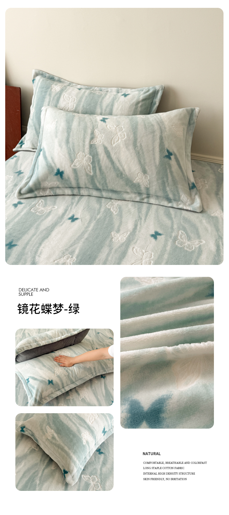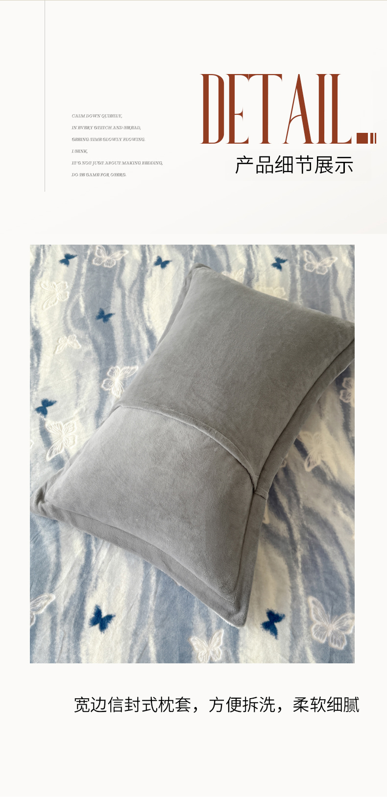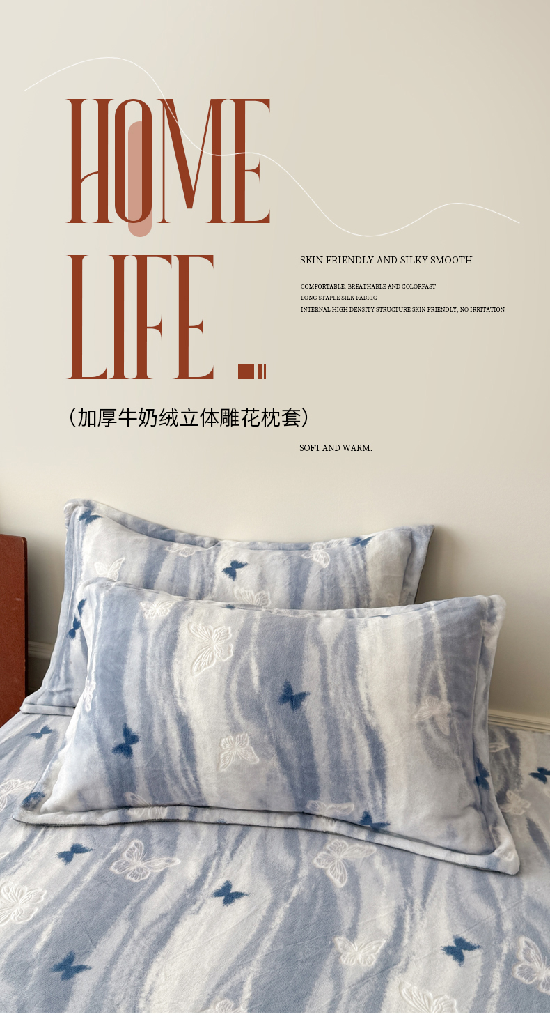 商品名称:LIFE.丽芙 2025秋冬新款A类牛奶绒加厚立体雕花压线宽边枕套 镜花蝶梦-蓝