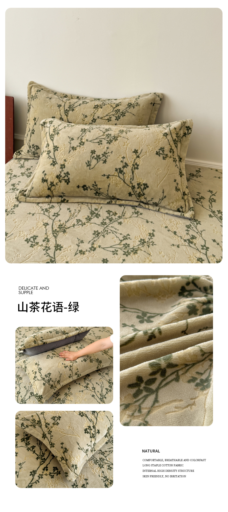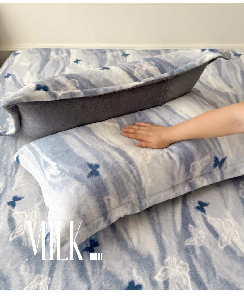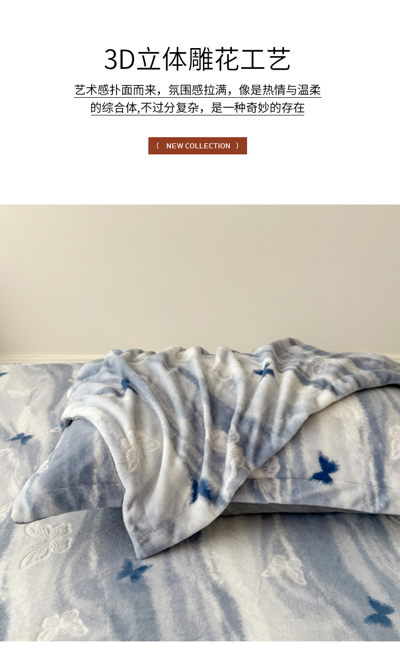 商品名称:LIFE.丽芙 2025秋冬新款A类牛奶绒加厚立体雕花压线宽边枕套 镜花蝶梦-蓝