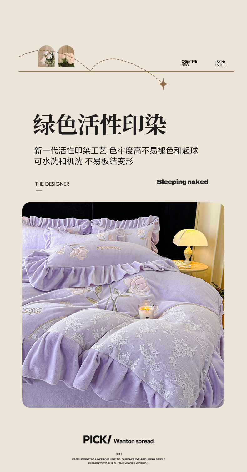 (总)民新家纺 2025新款牛奶绒花边床裙四件套,浪漫时光-浅粉,浪漫时光-大红,浪漫时光-灰,浪漫时光-浅蓝,浪漫时光-浅绿,浪漫时光-浅米黄,浪漫时光-浅紫
