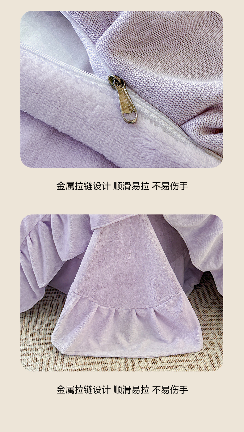 (总)民新家纺 2025新款牛奶绒夹棉床裙三件套,浪漫时光-浅紫,浪漫时光-灰,浪漫时光-大红,浪漫时光-浅粉,浪漫时光-浅蓝,浪漫时光-浅绿,浪漫时光-浅米黄