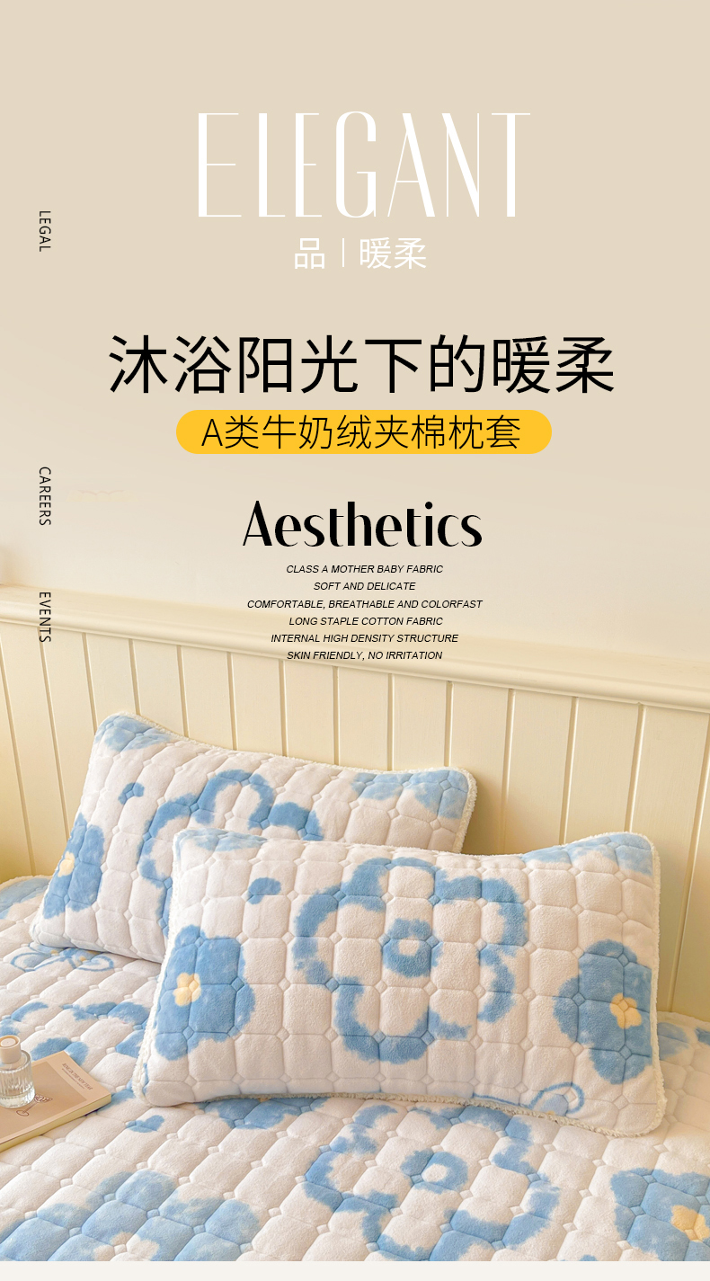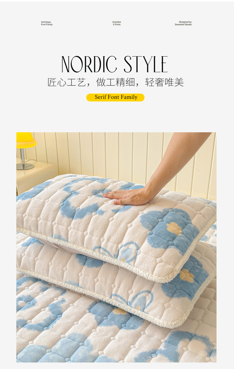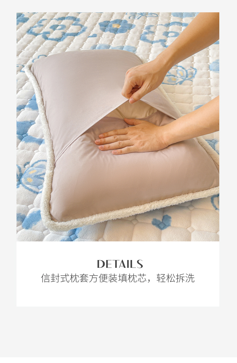 商品名称:LIFE.丽芙 2025秋冬新款A类牛奶绒加厚保暖夹棉枕套-包边款 花恋