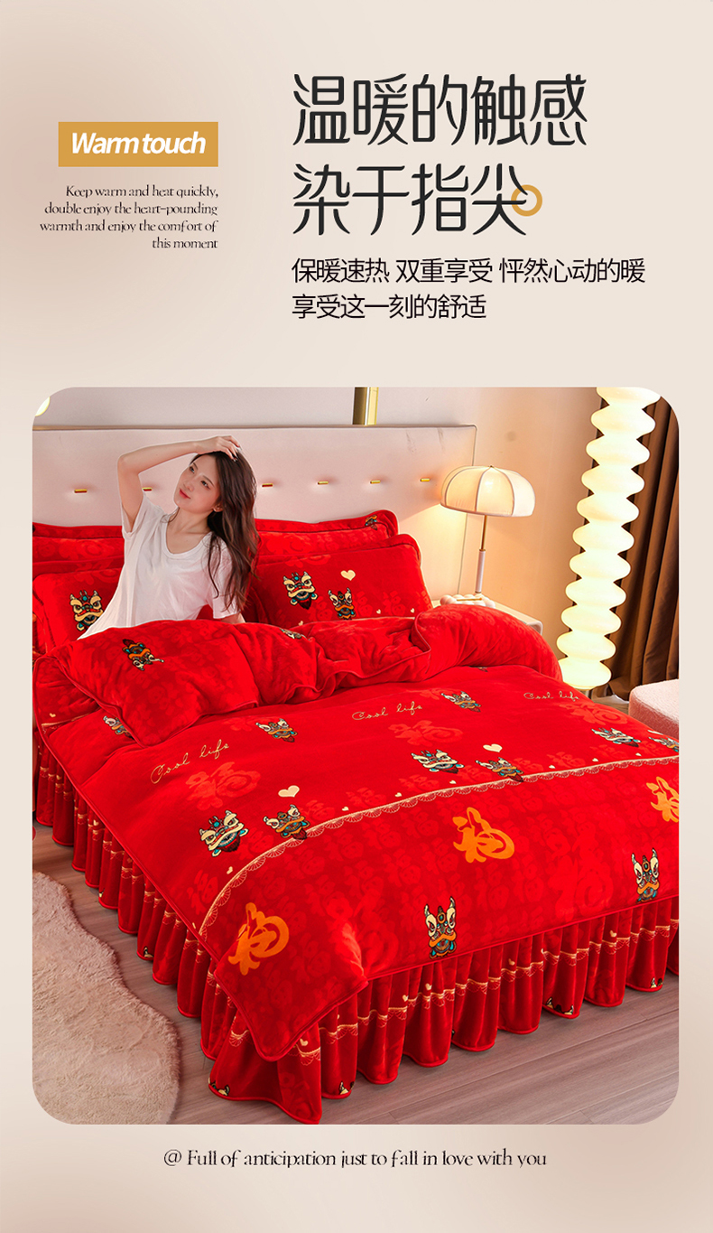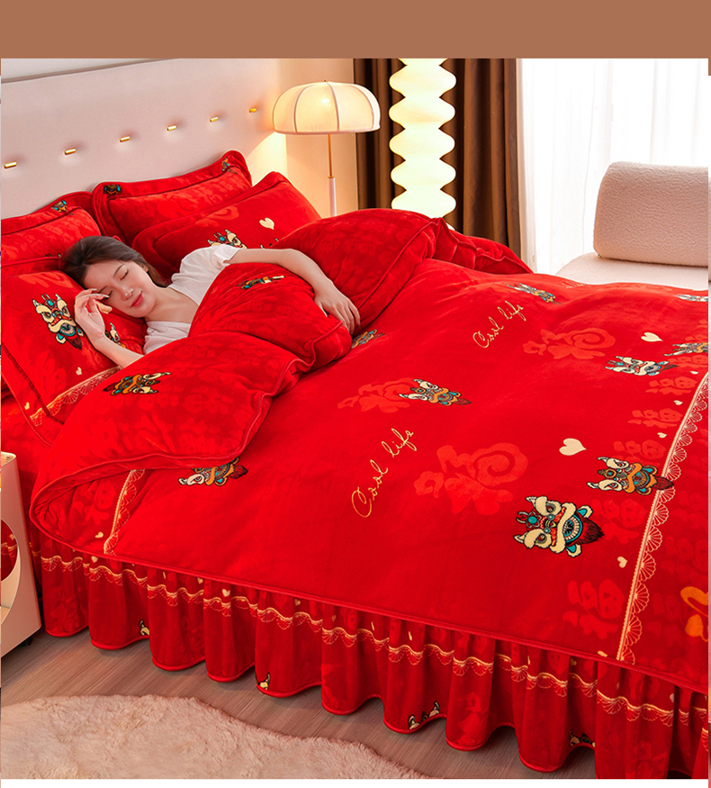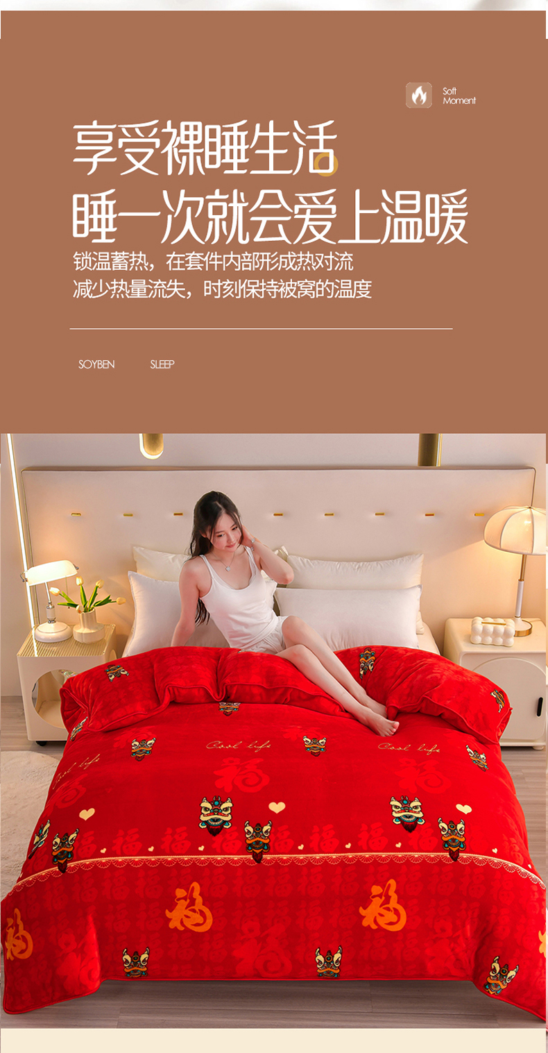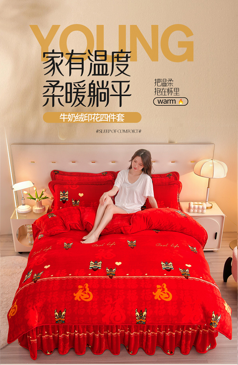 缘莉娜家纺 2025高克重8斤牛奶绒四件套金貂绒法莱绒加厚保暖直播电商爆款 百福吉祥