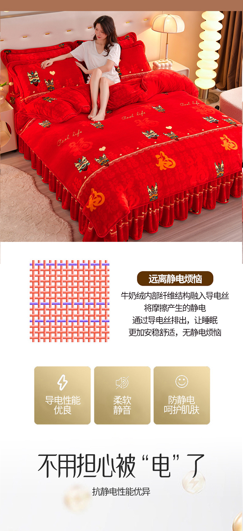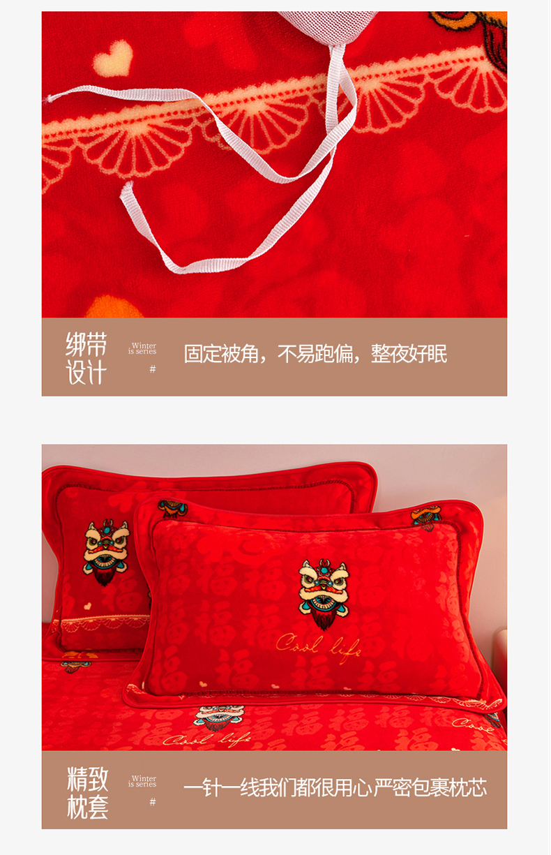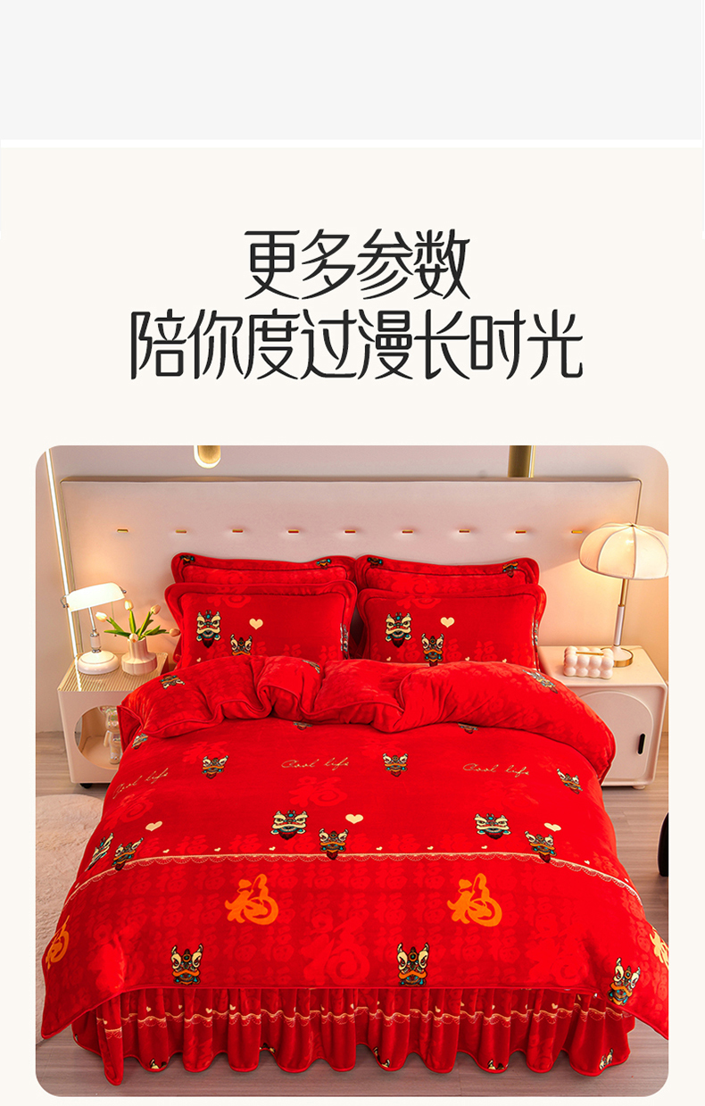 商品名称:缘莉娜家纺 2025高克重8斤牛奶绒四件套金貂绒法莱绒加厚保暖直播电商爆款 百福吉祥
