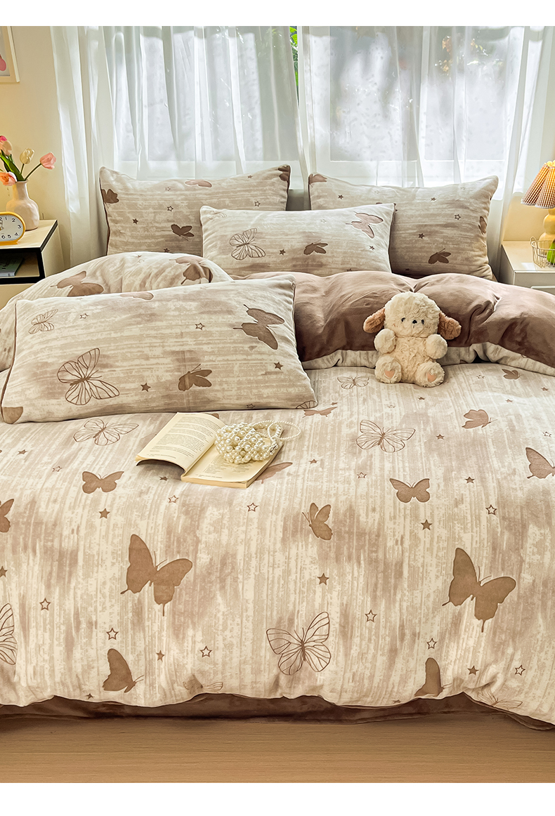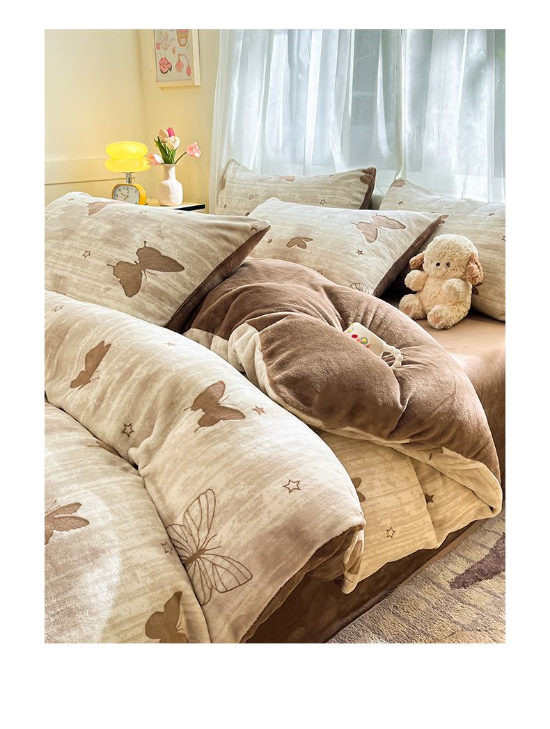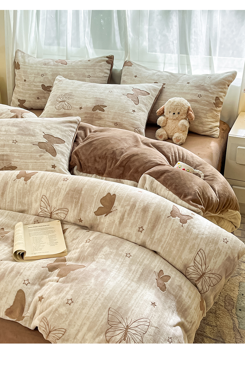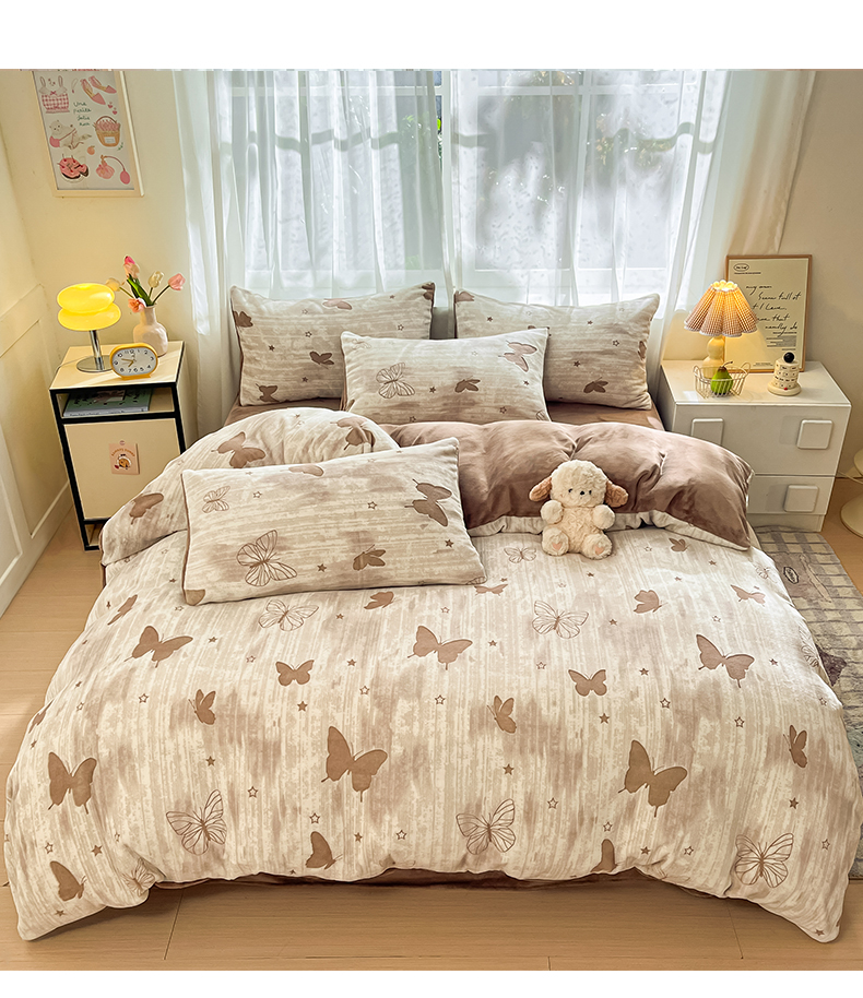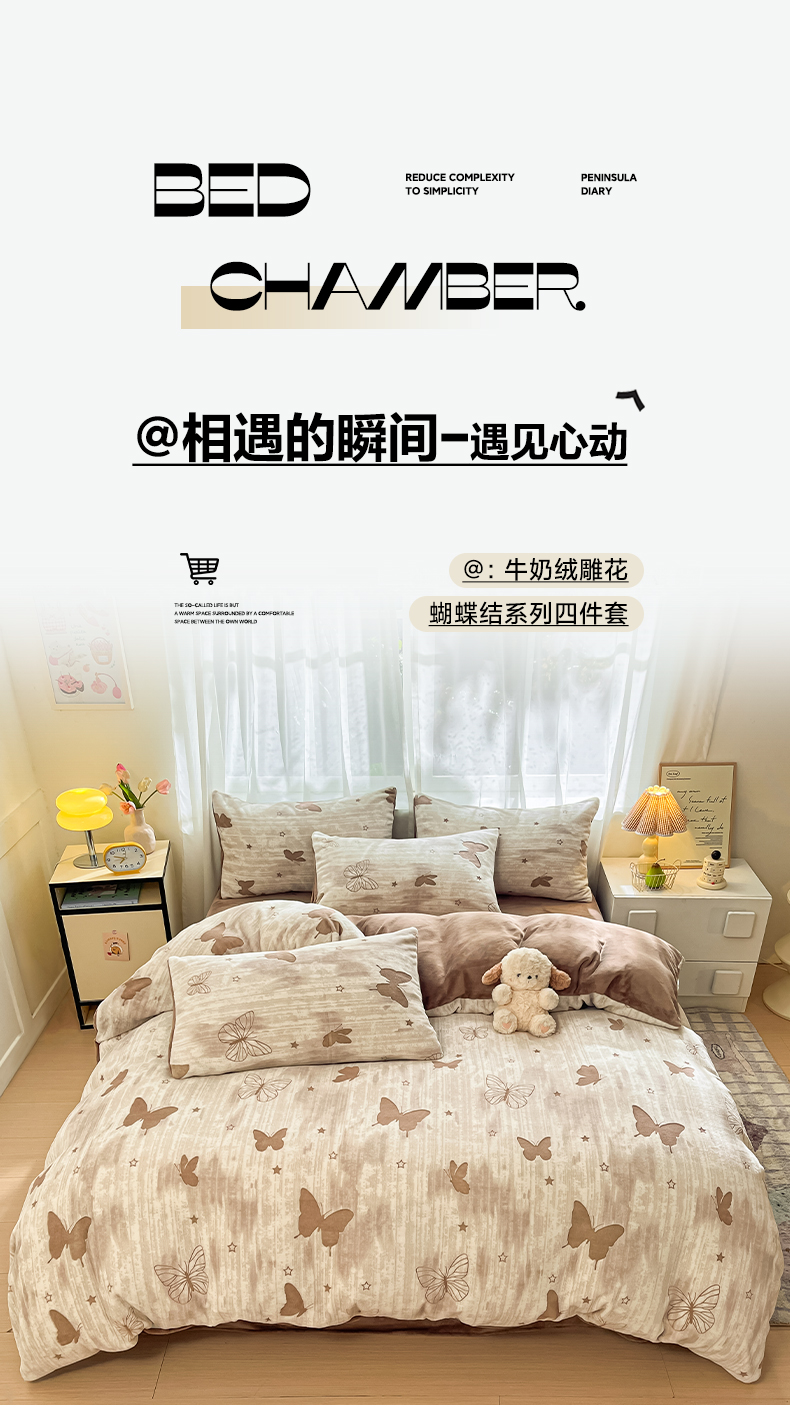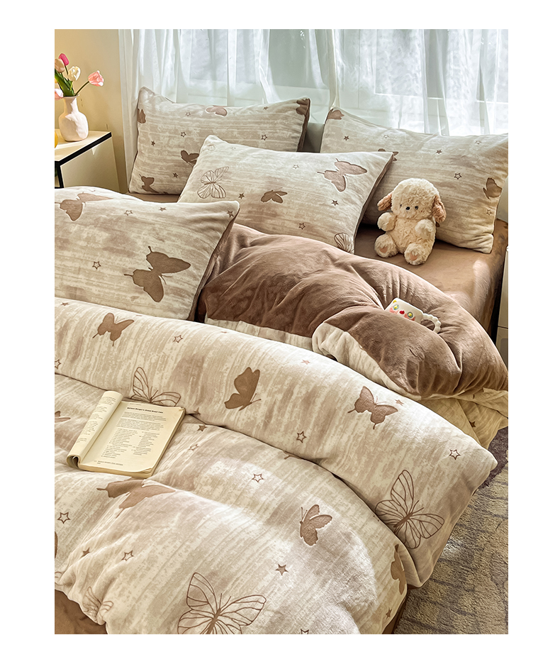 当前位置: 91家纺网 > 商品网购 > 床品套件 > 四件套 > 牛奶绒四件套 > 雅居纺家纺 2025新款雕花牛奶绒四件套-蝴蝶系列 星蝶-咖
