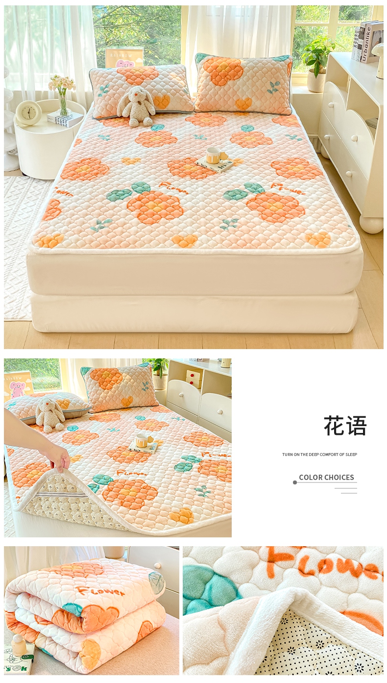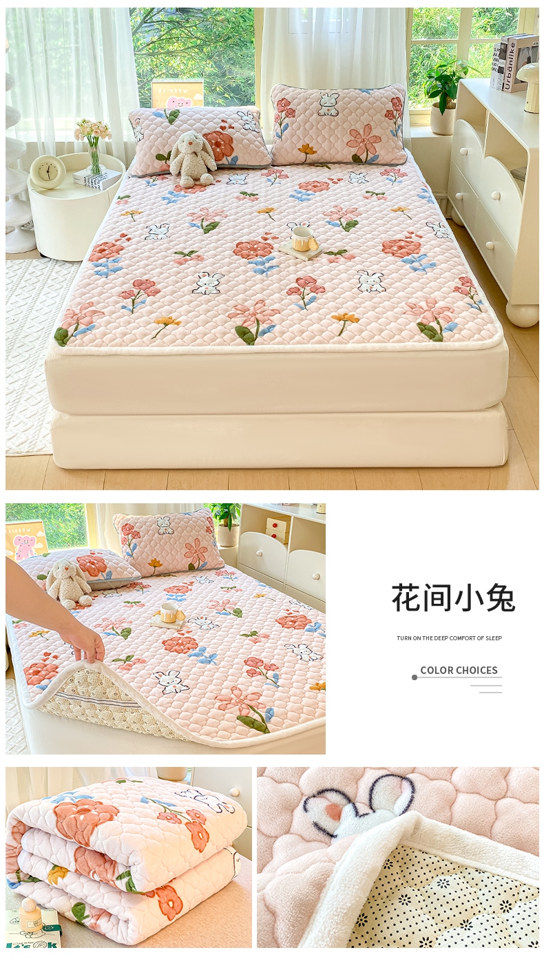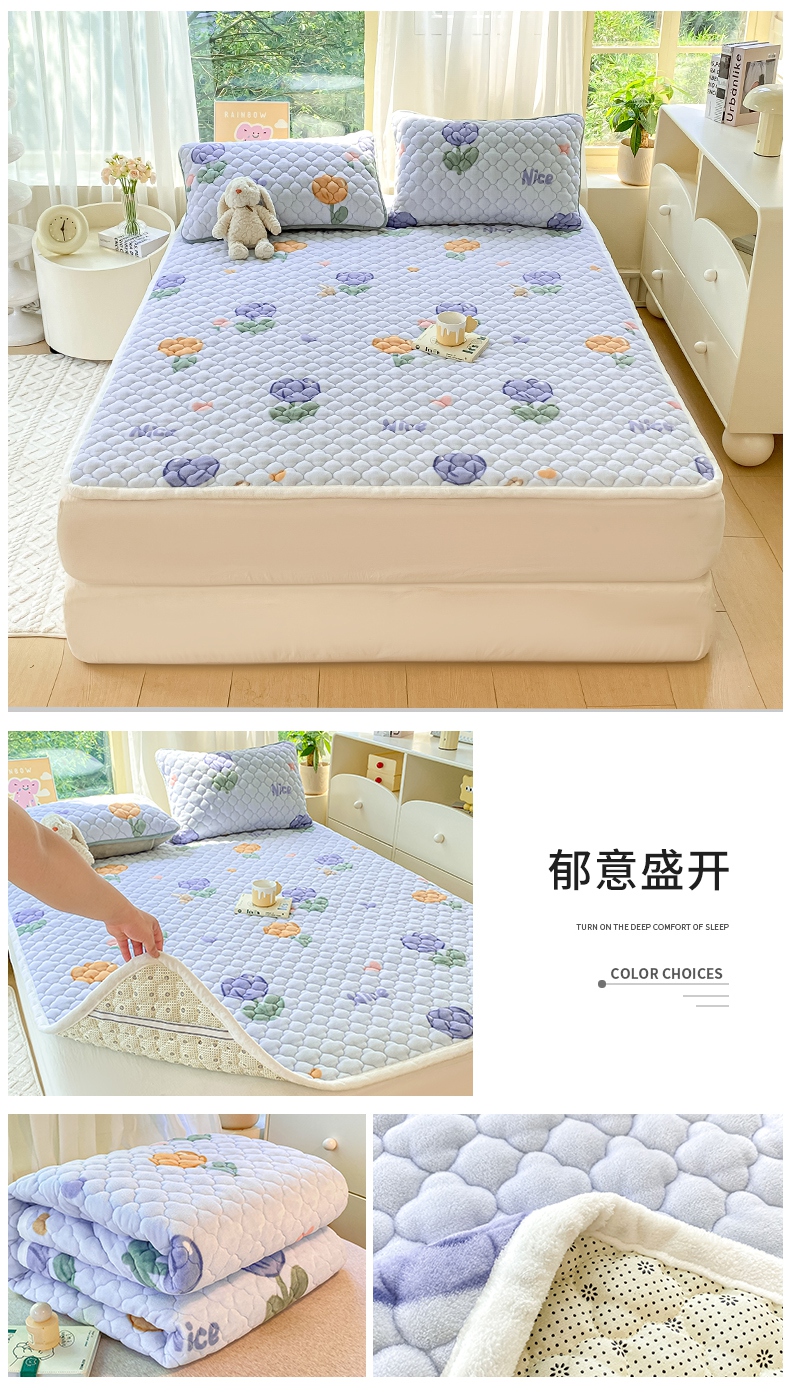 • 91家纺网 家纺一手货源 找家纺 康纳利 2025新款亲肤舒适牛奶绒加厚保暖卡通床垫床褥 床褥款-花眠语