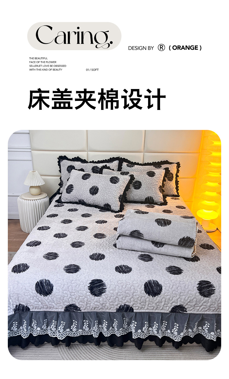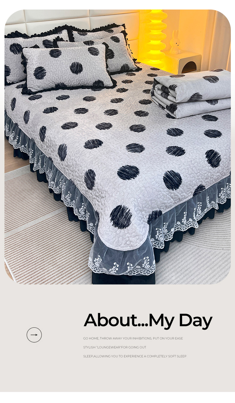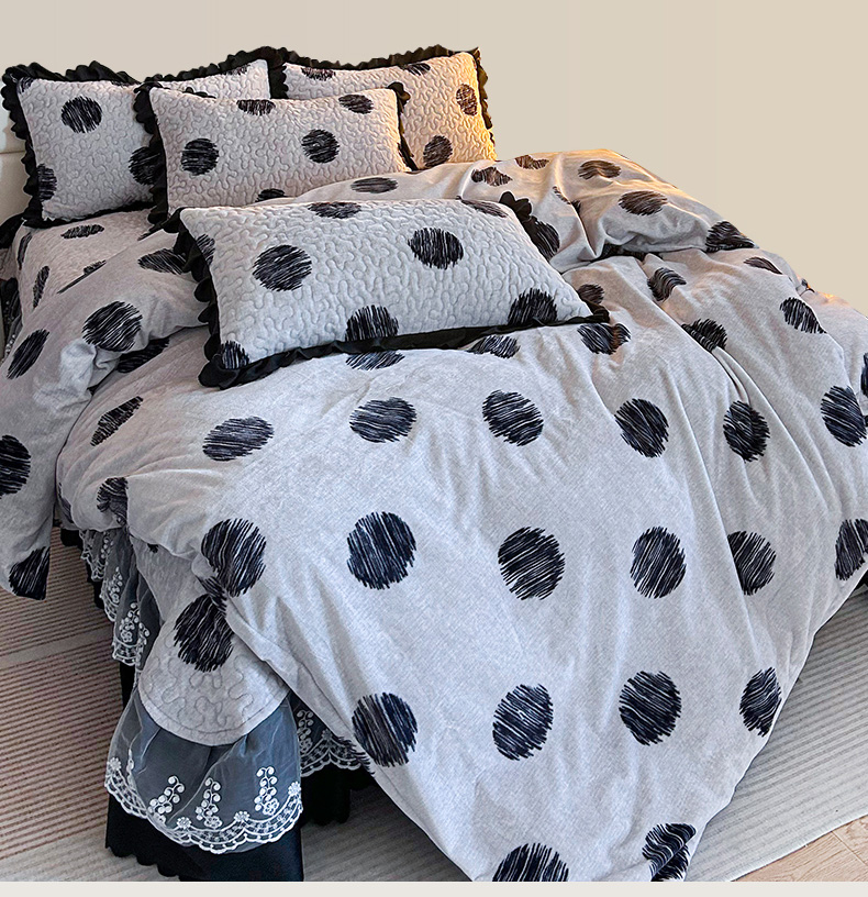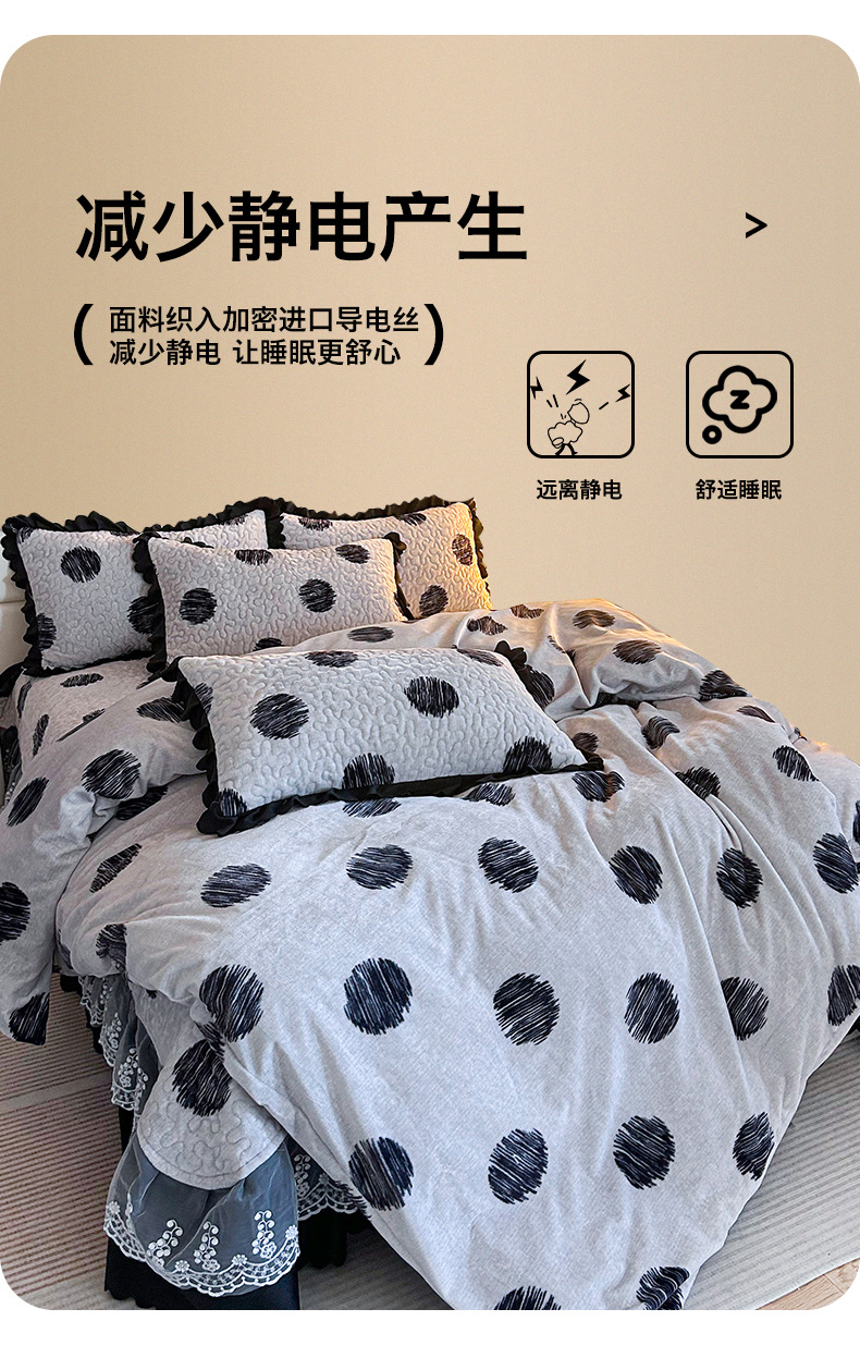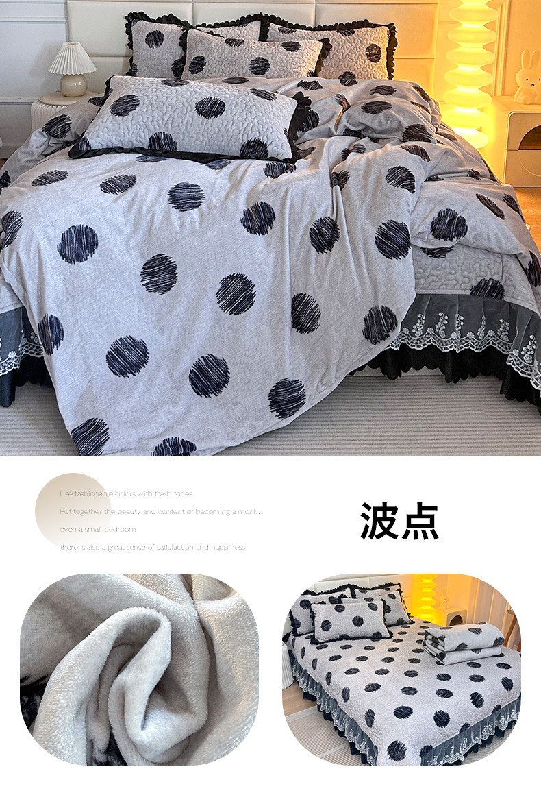 当前位置: 91家纺网 > 商品网购 > 床品套件 > 四件套 > 牛奶绒四件套 > 梦柏家纺 2025新款牛奶绒夹棉床盖四件套 波点