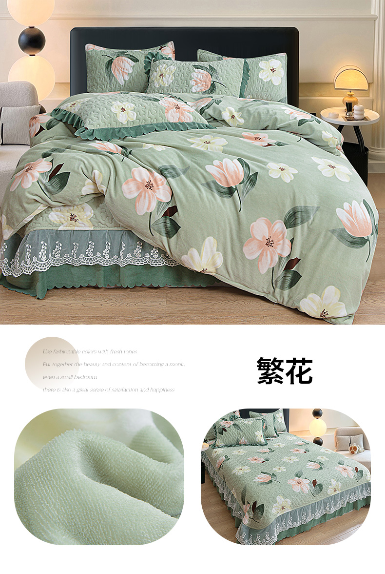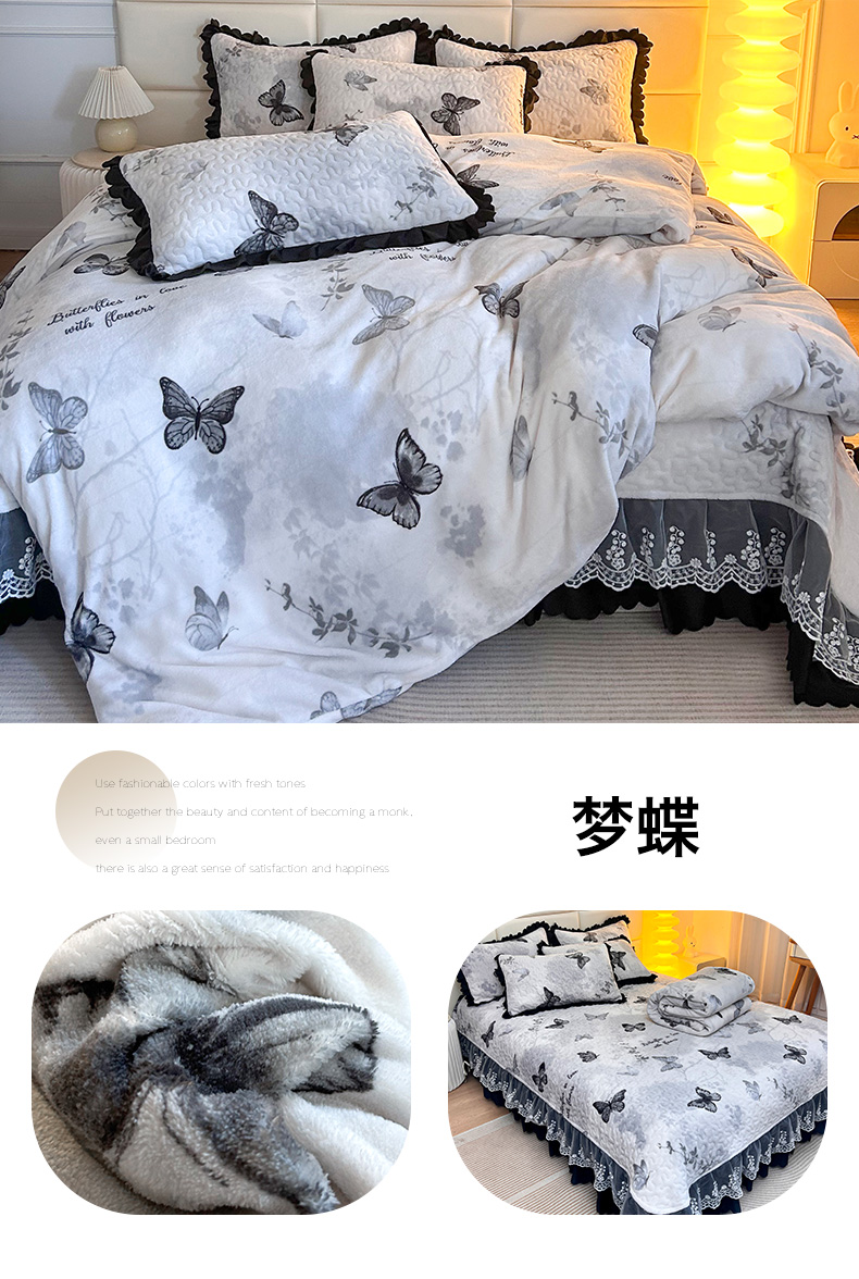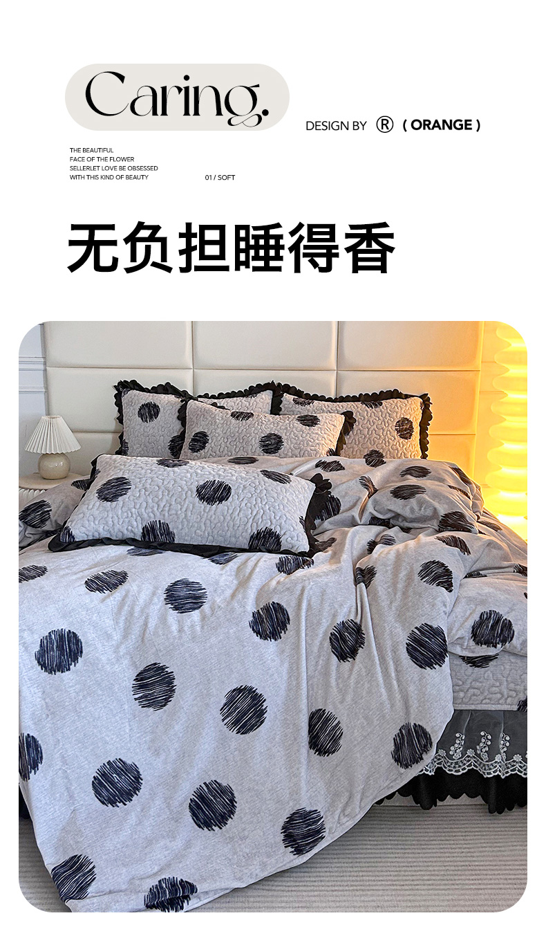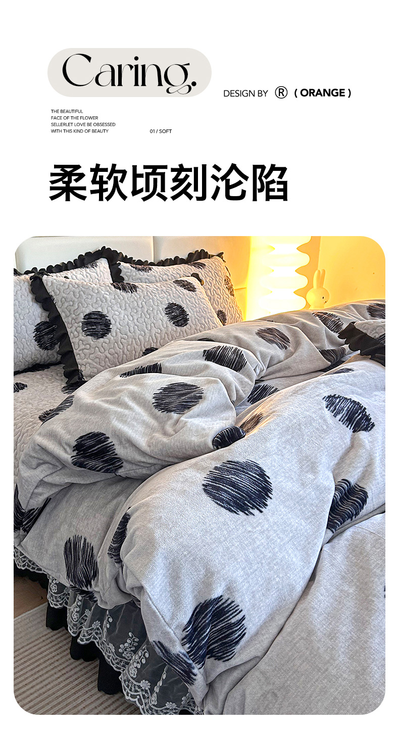当前位置: 91家纺网 > 商品网购 > 床品套件 > 四件套 > 牛奶绒四件套 > 梦柏家纺 2025新款牛奶绒夹棉床盖四件套 波点