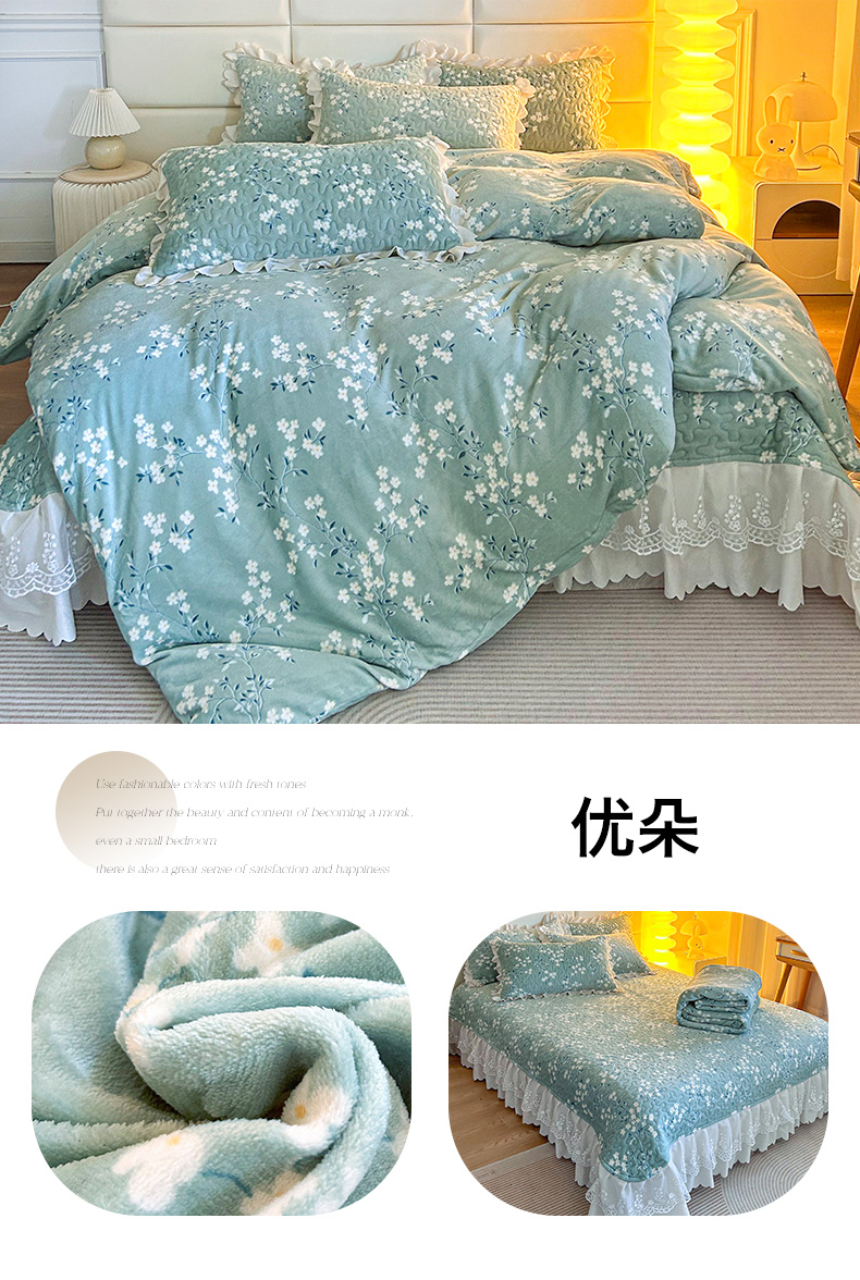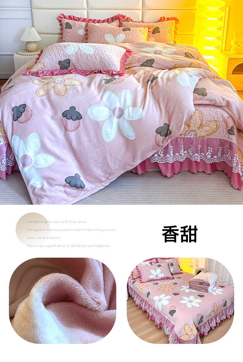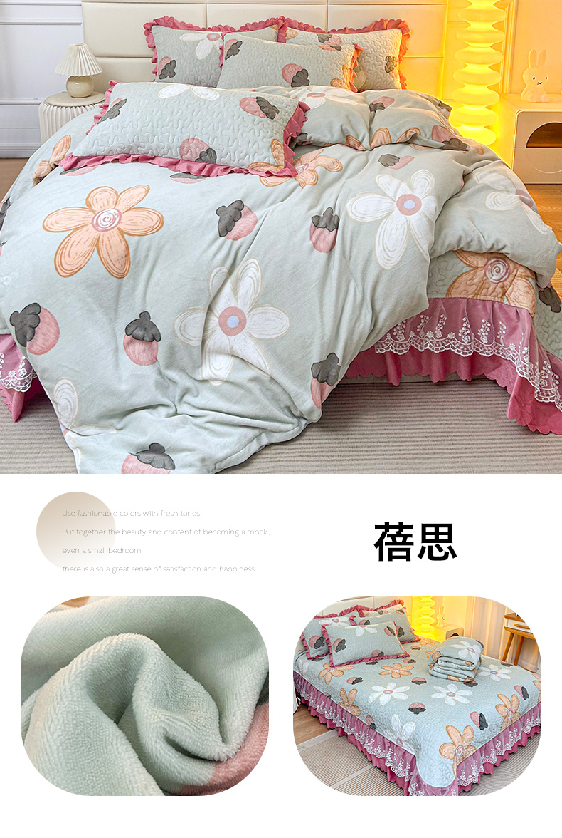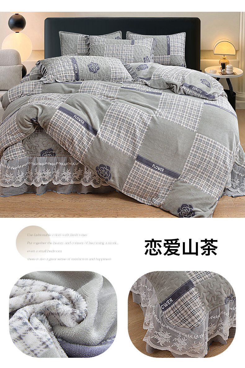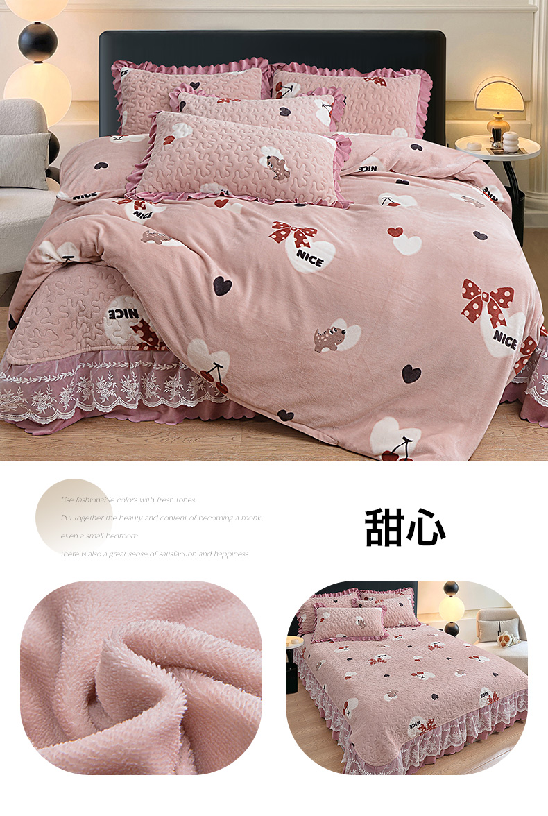 当前位置: 91家纺网 > 商品网购 > 床品套件 > 四件套 > 牛奶绒四件套 > 梦柏家纺 2025新款牛奶绒夹棉床盖四件套 波点