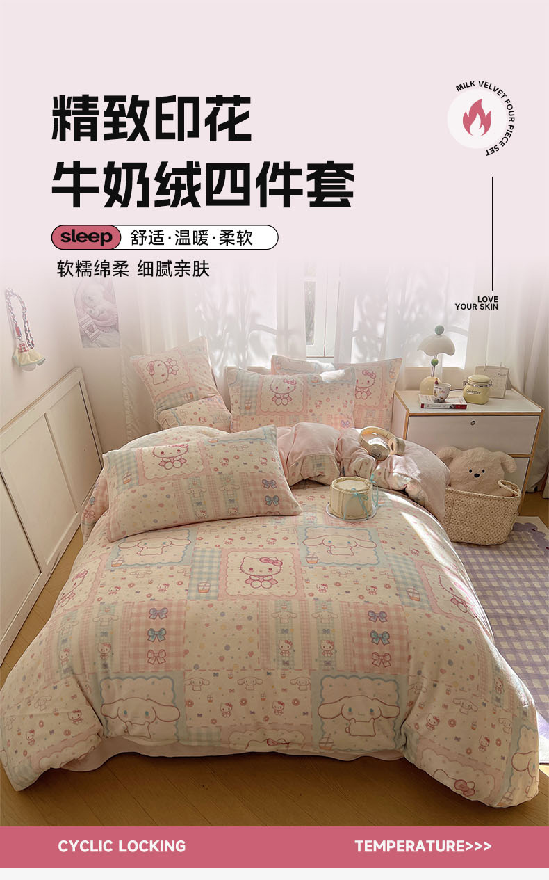 当前位置: 91家纺网 > 商品网购 > 床品套件 > 四件套 > 牛奶绒四件套 > 红嘴企鹅 2025新款精致印花牛奶绒四件套 牛奶绒-少女猫咪