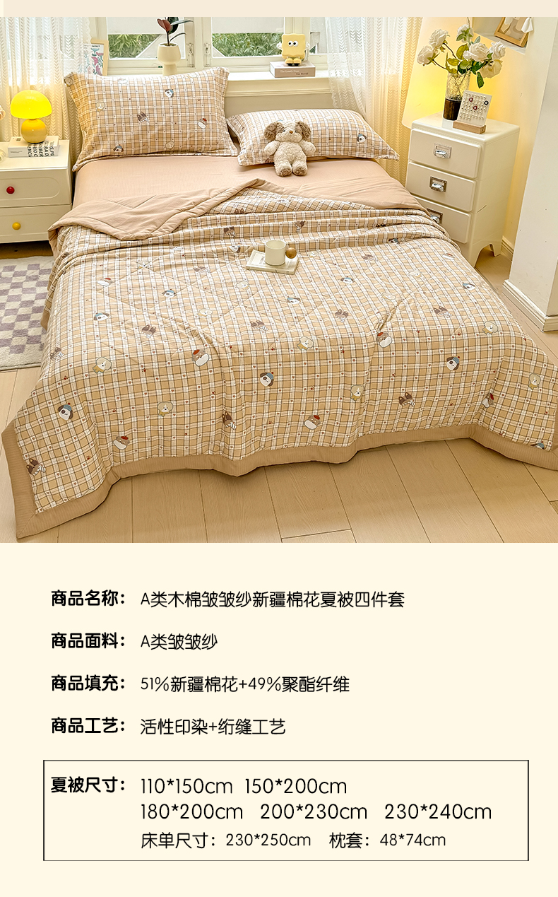 当前位置: 91家纺网 > 商品网购 > 床品套件 > 四件套 > 夏被四件套 > 梵克保罗 2025新款印花单夏被被子被芯夏被四件套 格子狗