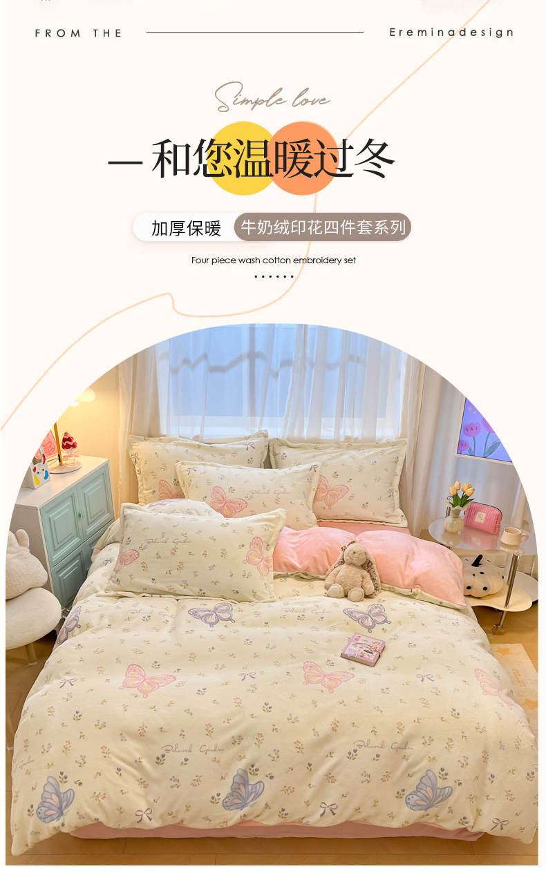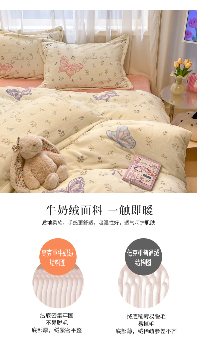 当前位置: 91家纺网 > 商品网购 > 床品套件 > 四件套 > 牛奶绒四件套 > 慕尚家纺 2025新款高克重田园花卉类加厚牛奶绒3.5kg四件套 蝴蝶花