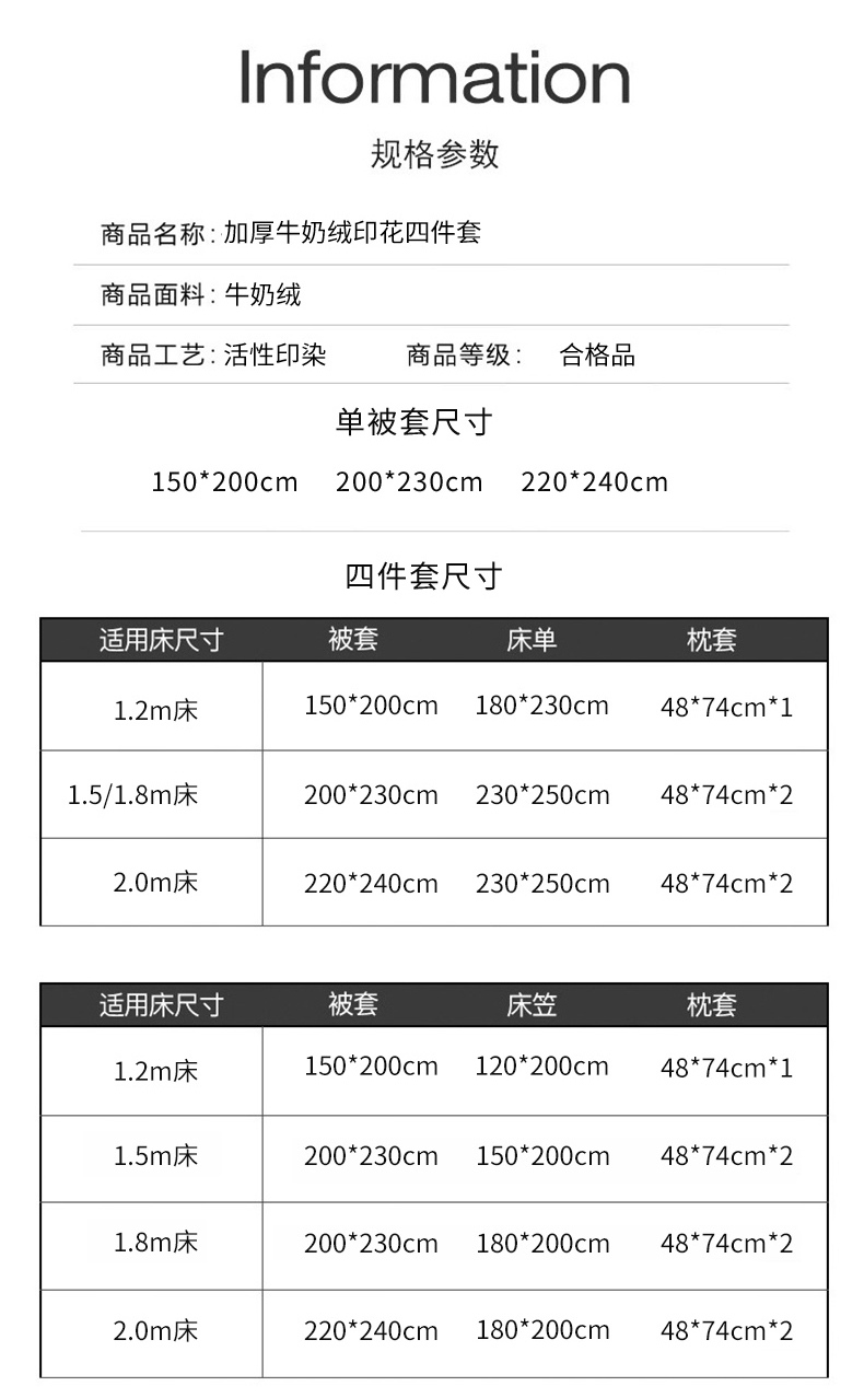 【床笠款】1.8四件套-被套200x230 | ¥90.00 |