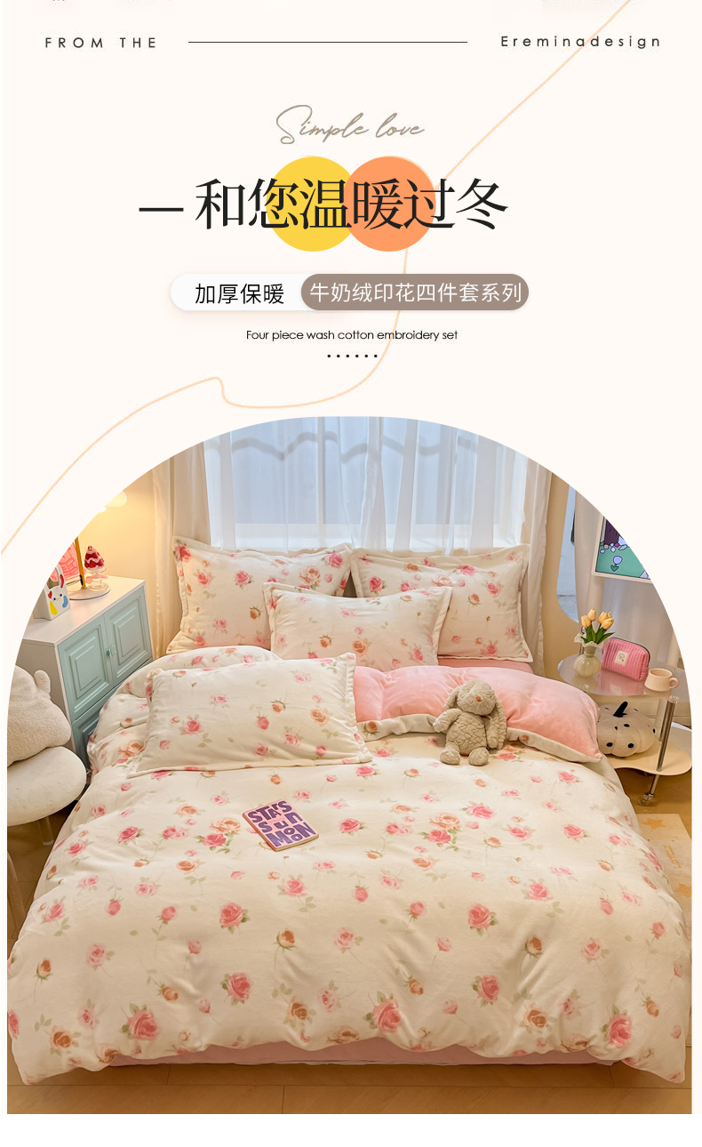 当前位置: 91家纺网 > 商品网购 > 床品套件 > 四件套 > 牛奶绒四件套 > 慕尚家纺 2025新款高克重田园花卉类加厚牛奶绒3.5kg四件套 甜美冬日