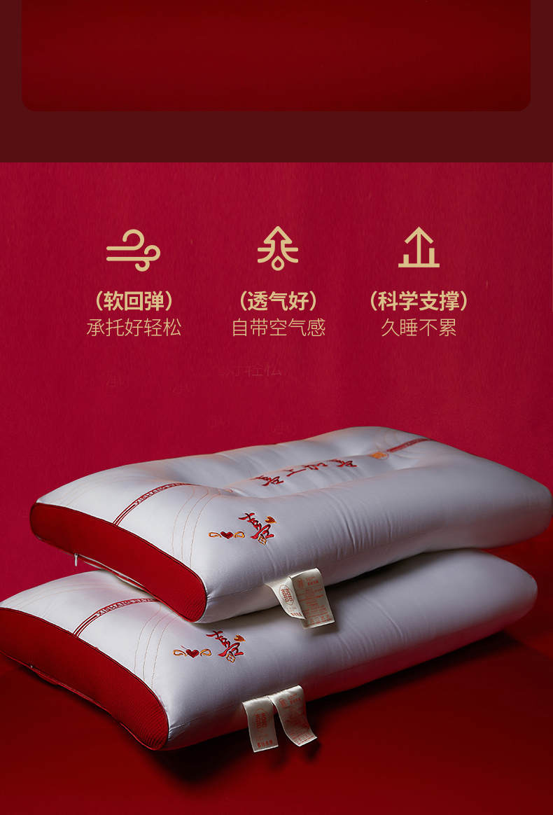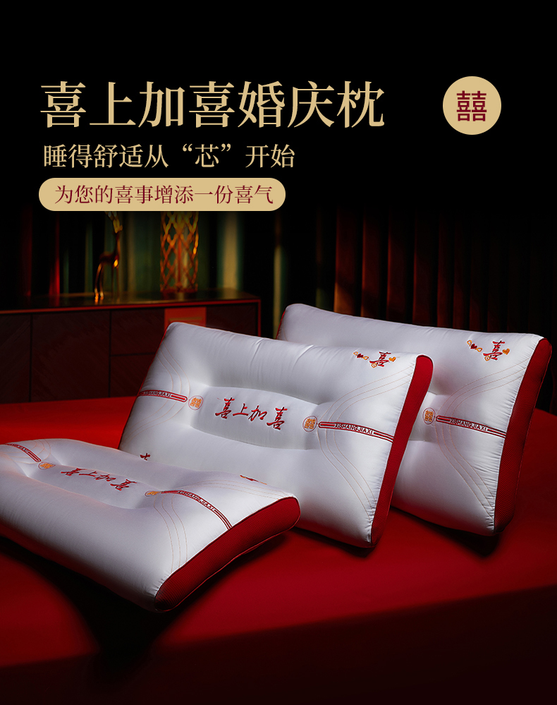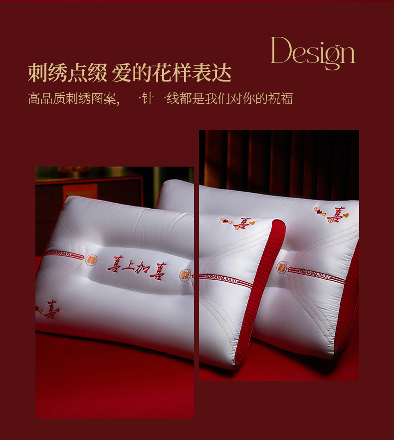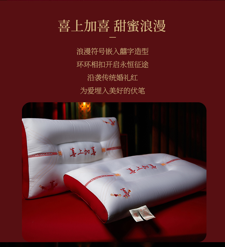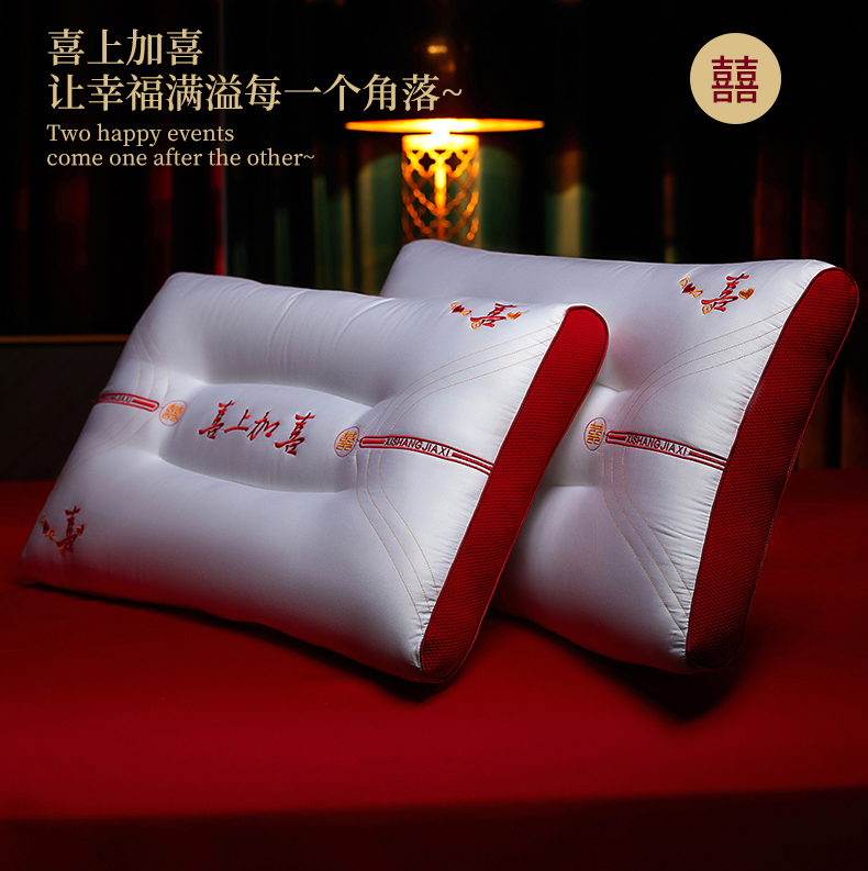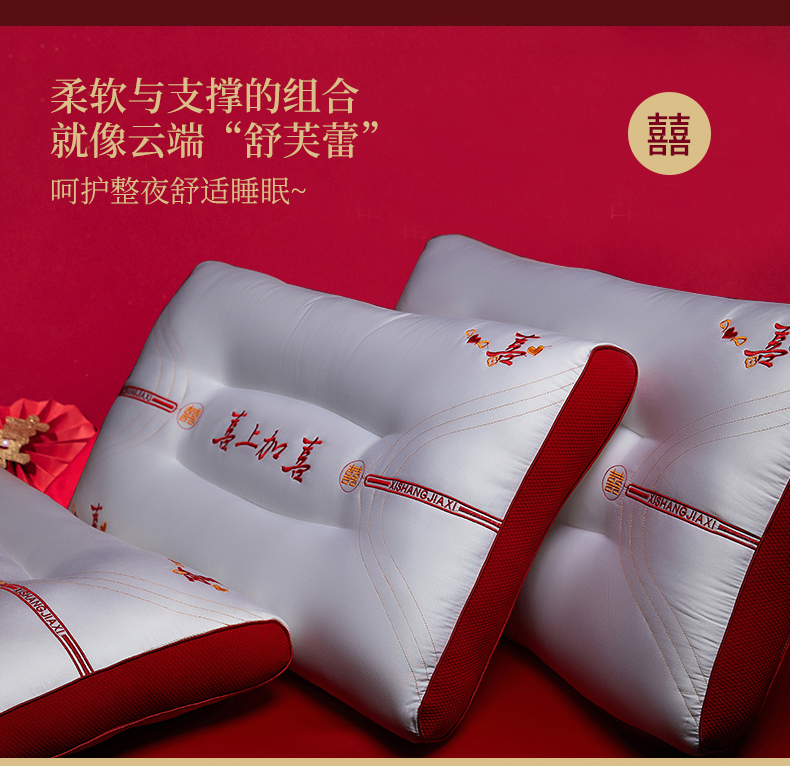 商品名称:(总)鼎晟纺 2025新款亲肤柔软婚庆枕头喜上加囍护颈枕成人枕芯