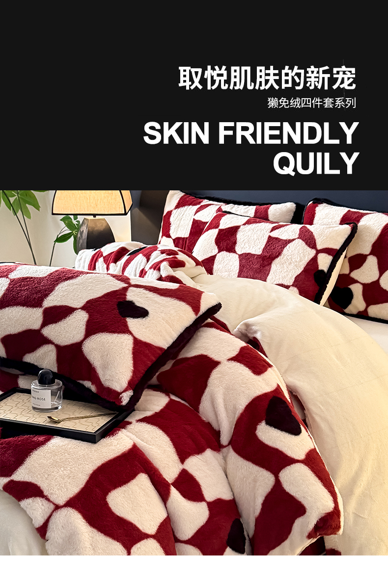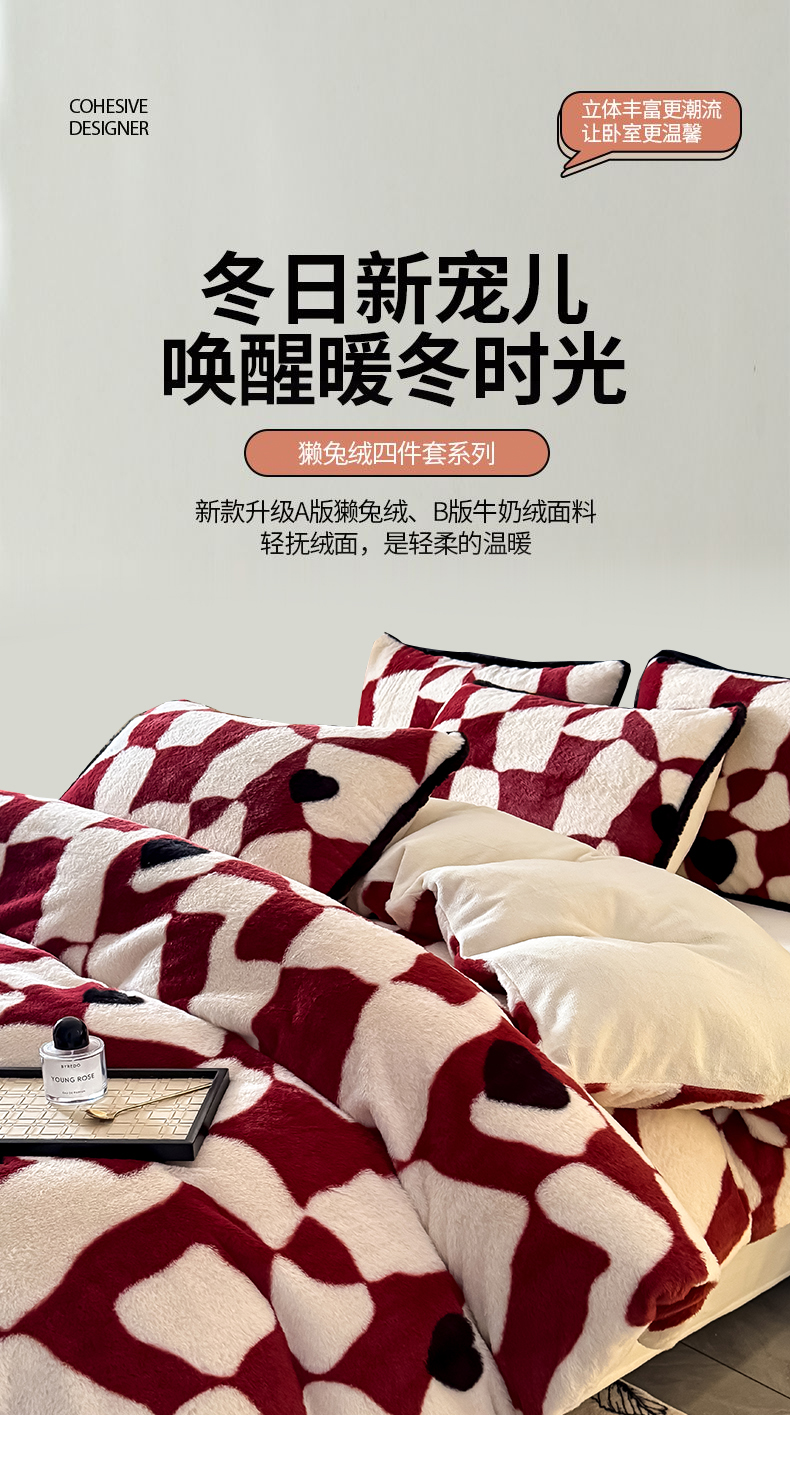 当前位置: 91家纺网 > 商品网购 > 床品套件 > 四件套 > 牛奶绒四件套 > KA家纺 2025新款秋冬兔毛边工艺款兔毛牛奶绒四件套 心乱乱
