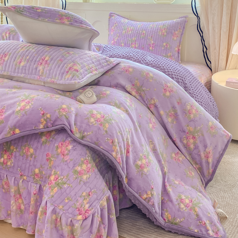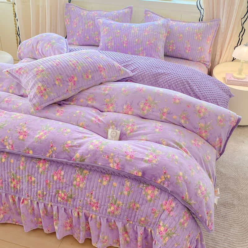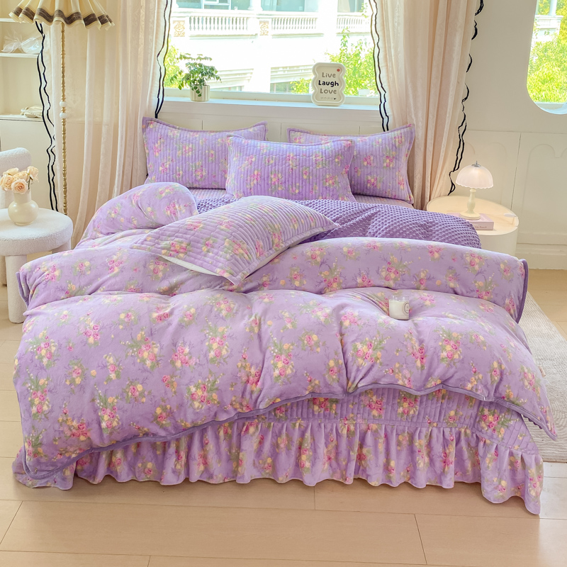 商品名称:尚美 2025新款豆豆绒牛奶绒大花边床盖四件套-系列2(床盖花边随机) 紫苏