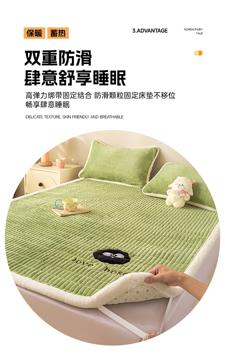 (总)梦初语 2025新款纯色牛奶绒贴布绣床垫褥冬季加绒加厚防滑学生宿舍 -直播爆款(面料17