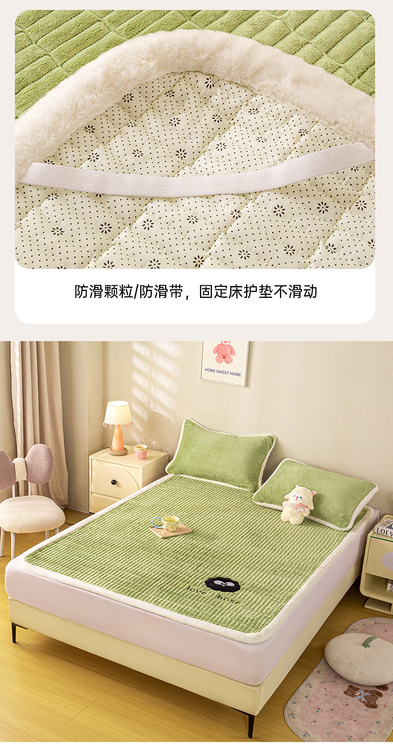 商品名称:(总)梦初语 2025新款纯色牛奶绒贴布绣床垫褥冬季加绒加厚防滑学生宿舍 -直播爆款(面料17