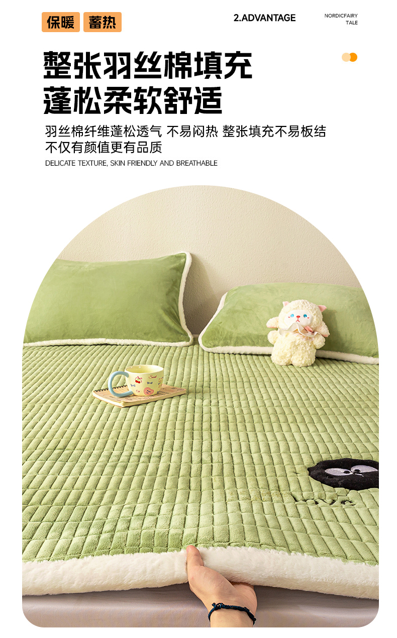 (总)梦初语 2025新款纯色牛奶绒贴布绣床垫褥冬季加绒加厚防滑学生宿舍 -直播爆款(面料17,猫咪-灰,猫咪-兰,维尼-咖,维尼-棕,小煤球-绿,小煤球-玉