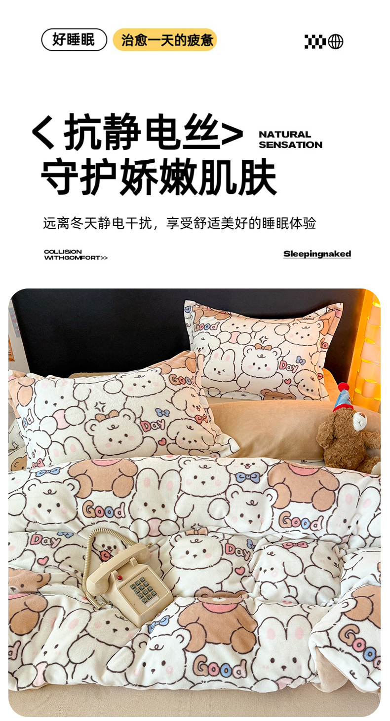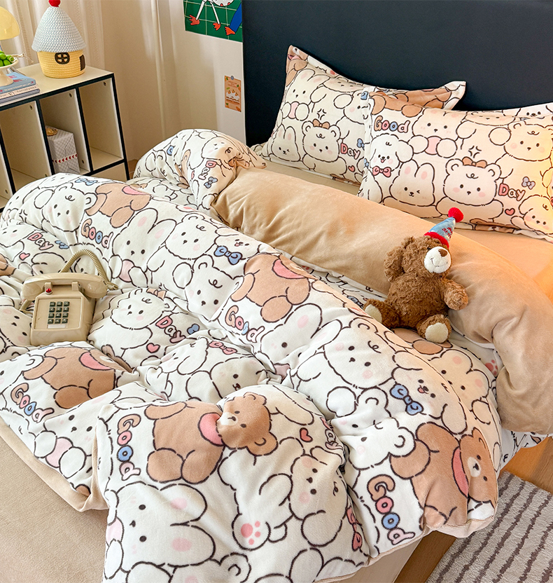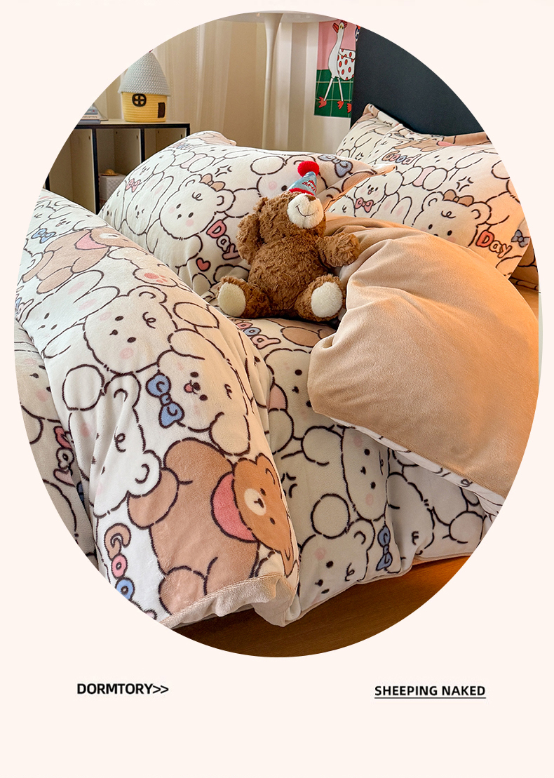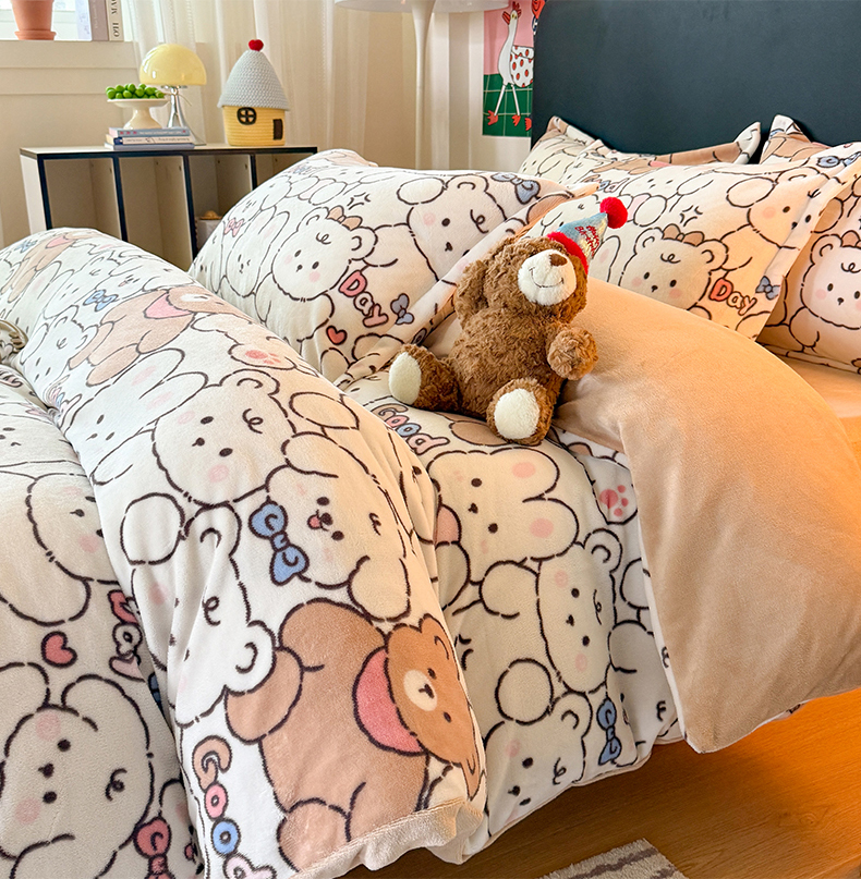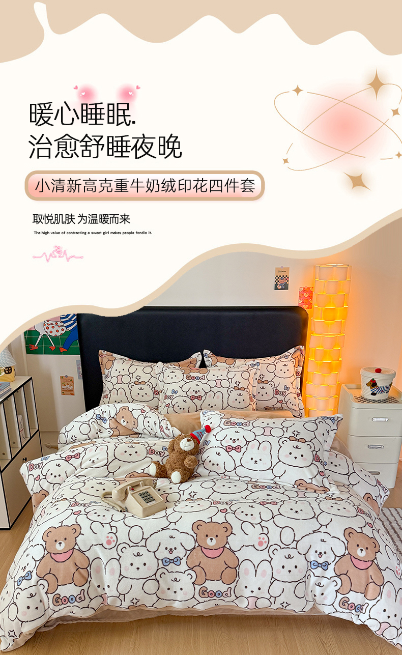 当前位置: 91家纺网 > 商品网购 > 床品套件 > 四件套 > 牛奶绒四件套 > 艾特你 2025新款小清新高克重牛奶绒印花四件套 熊多多