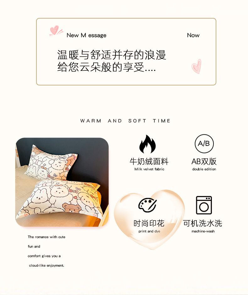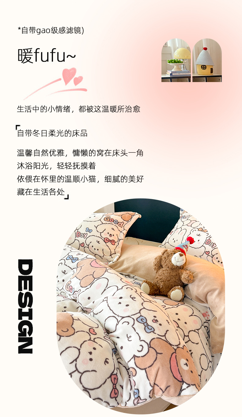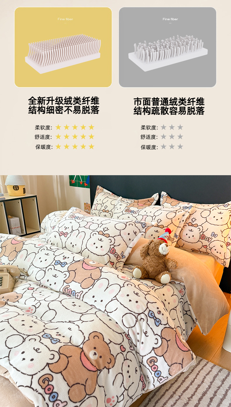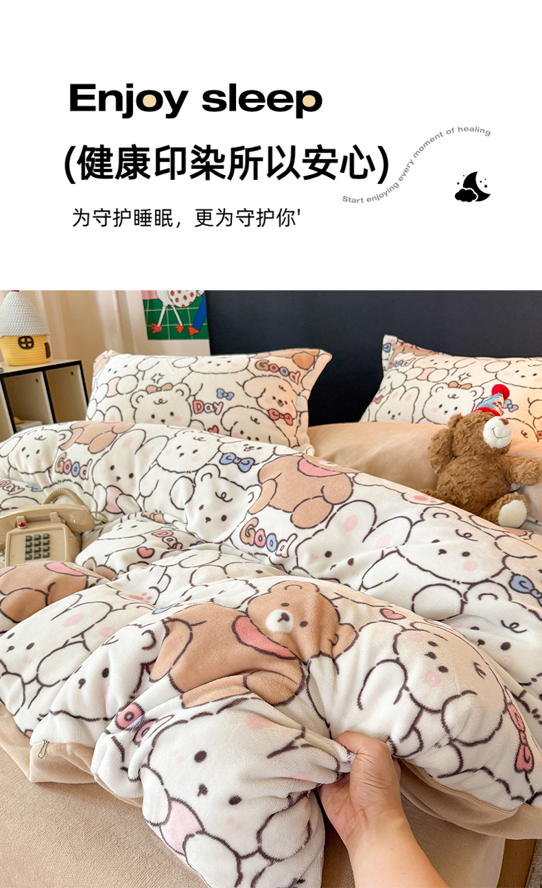 当前位置: 91家纺网 > 商品网购 > 床品套件 > 四件套 > 牛奶绒四件套 > 艾特你 2025新款小清新高克重牛奶绒印花四件套 熊多多