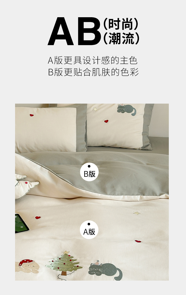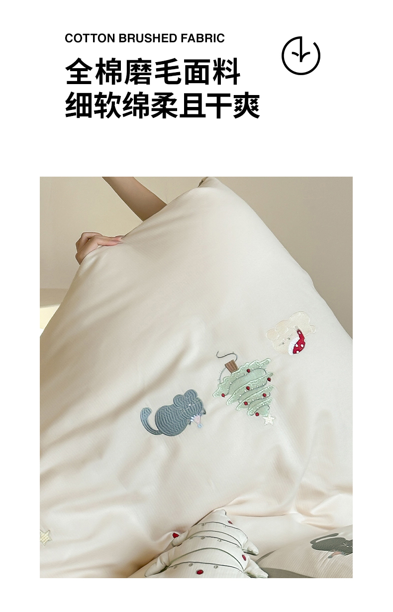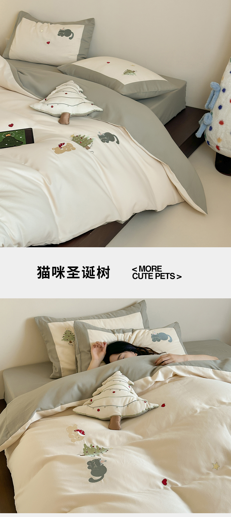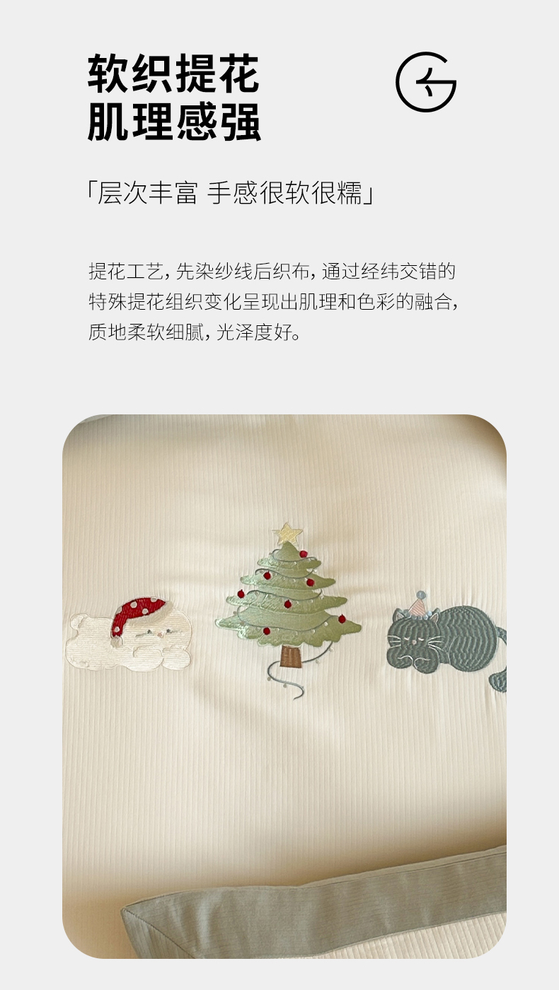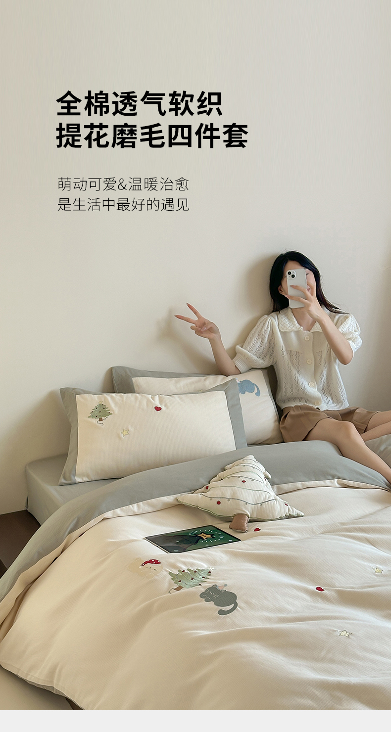 当前位置: 91家纺网 > 商品网购 > 床品套件 > 四件套 > 普通磨毛四件套 > 风向标家纺 2025新款透气软织提花磨毛卡通毛巾绣四件套-风格二 猫咪圣诞树