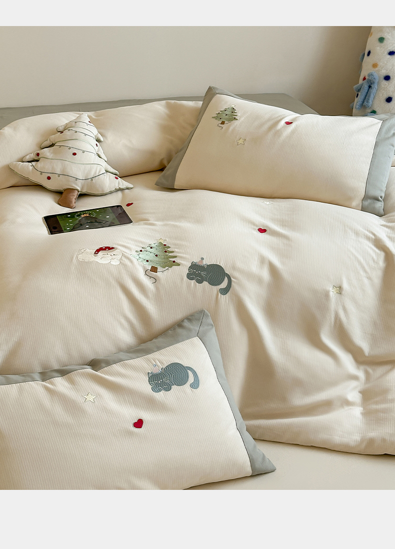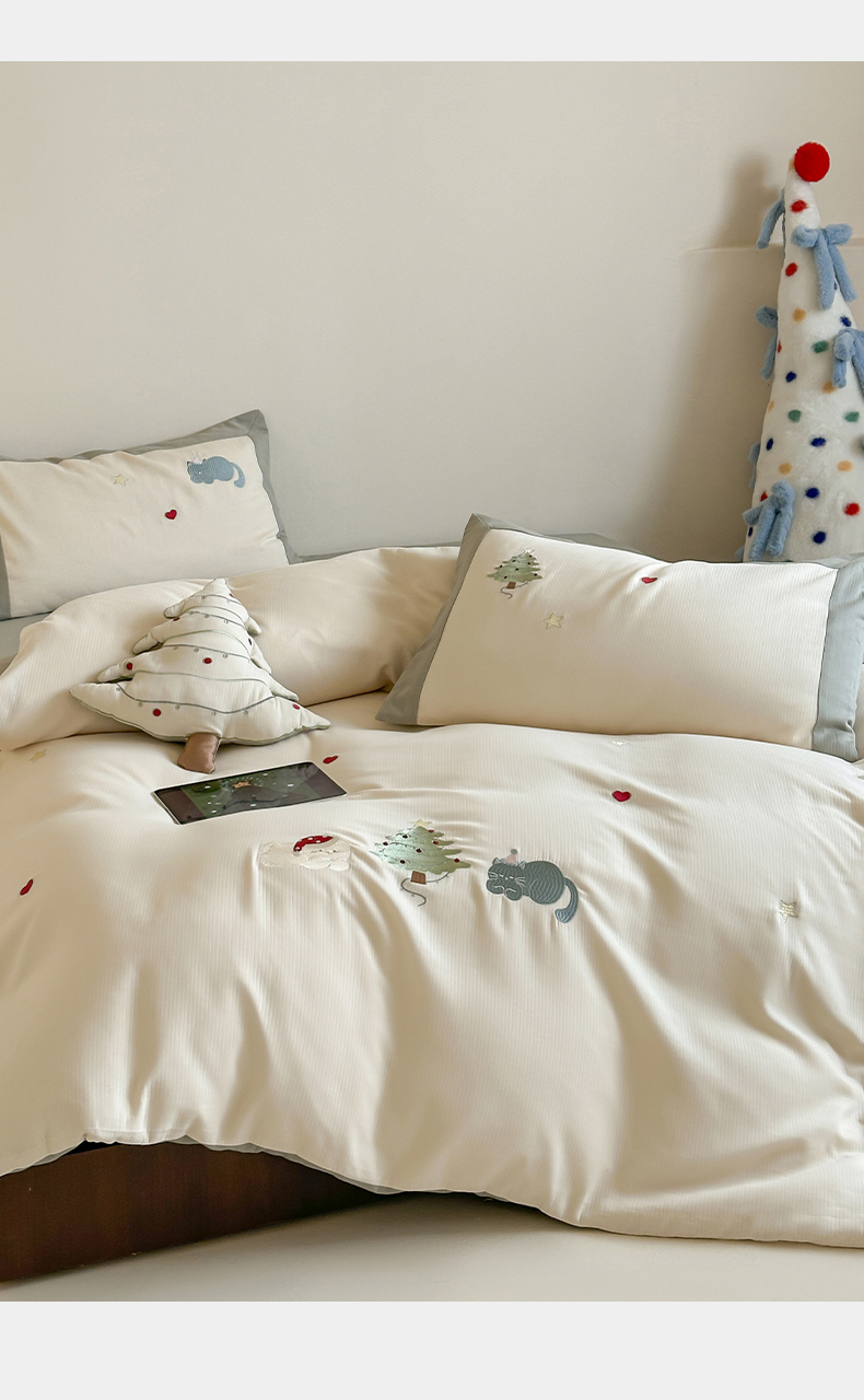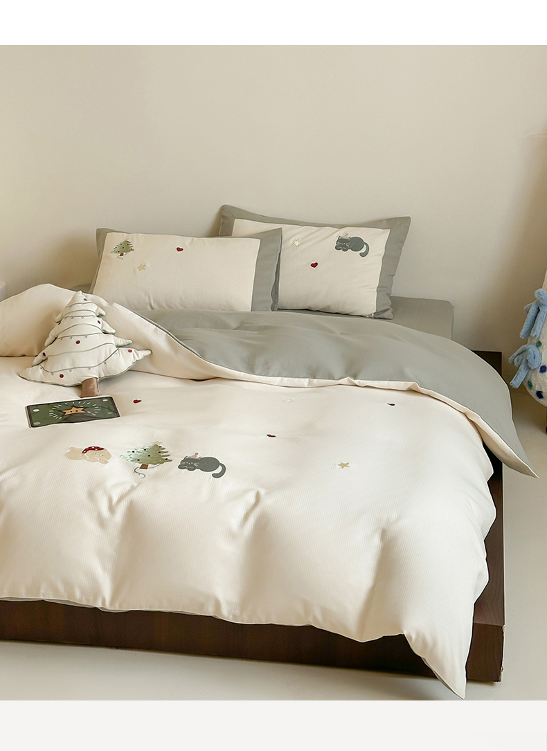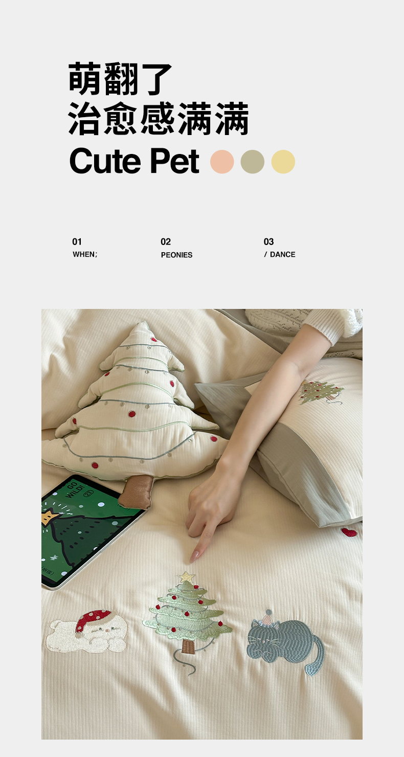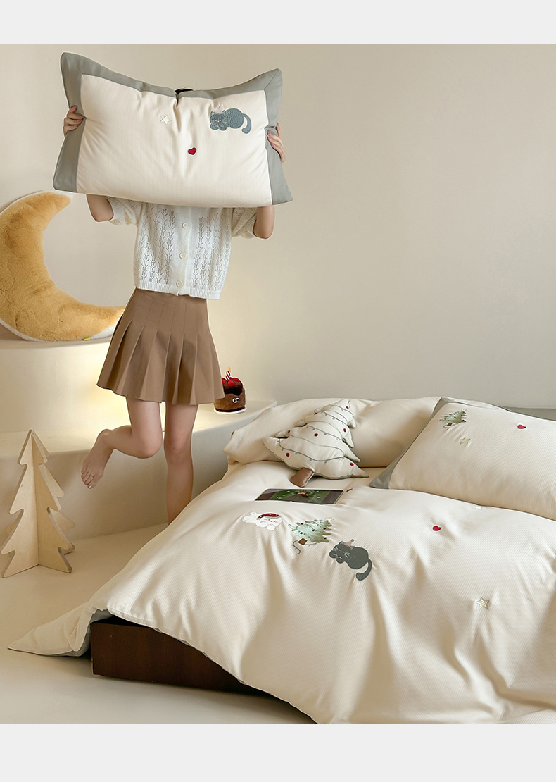 当前位置: 91家纺网 > 商品网购 > 床品套件 > 四件套 > 普通磨毛四件套 > 风向标家纺 2025新款透气软织提花磨毛卡通毛巾绣四件套-风格二 猫咪圣诞树