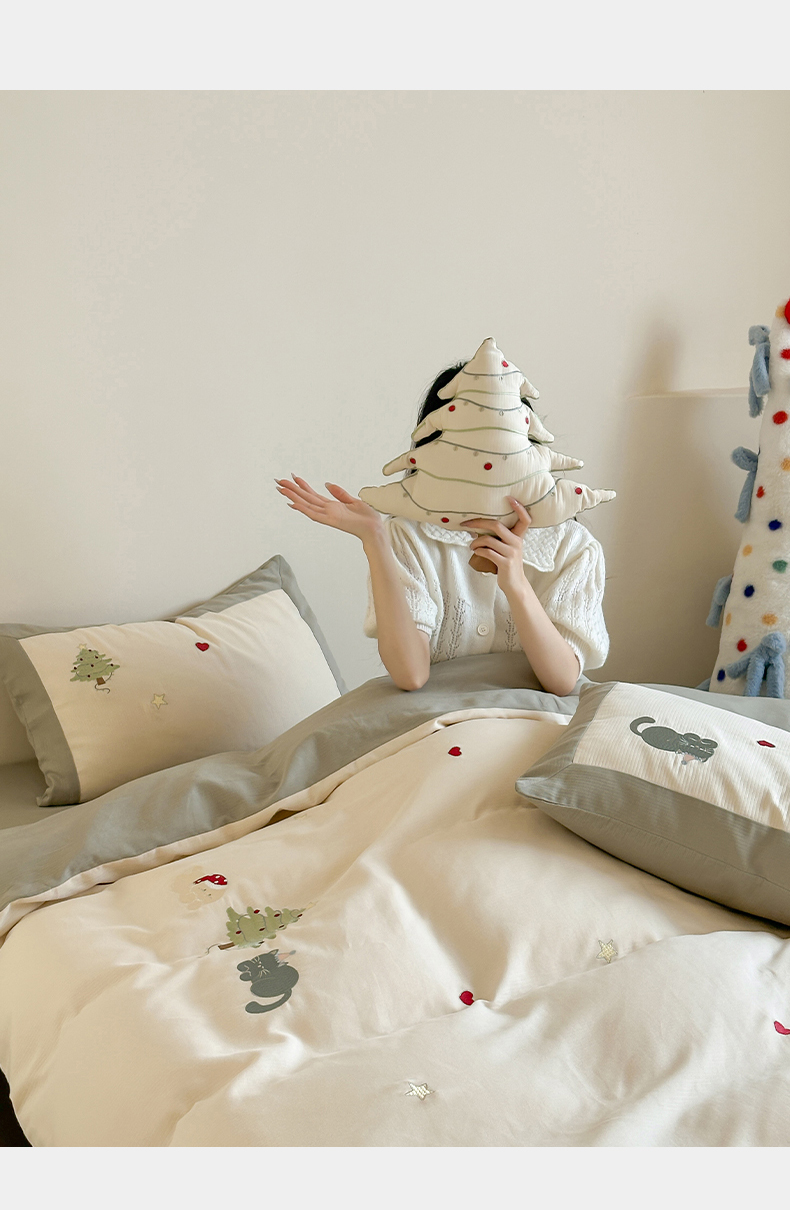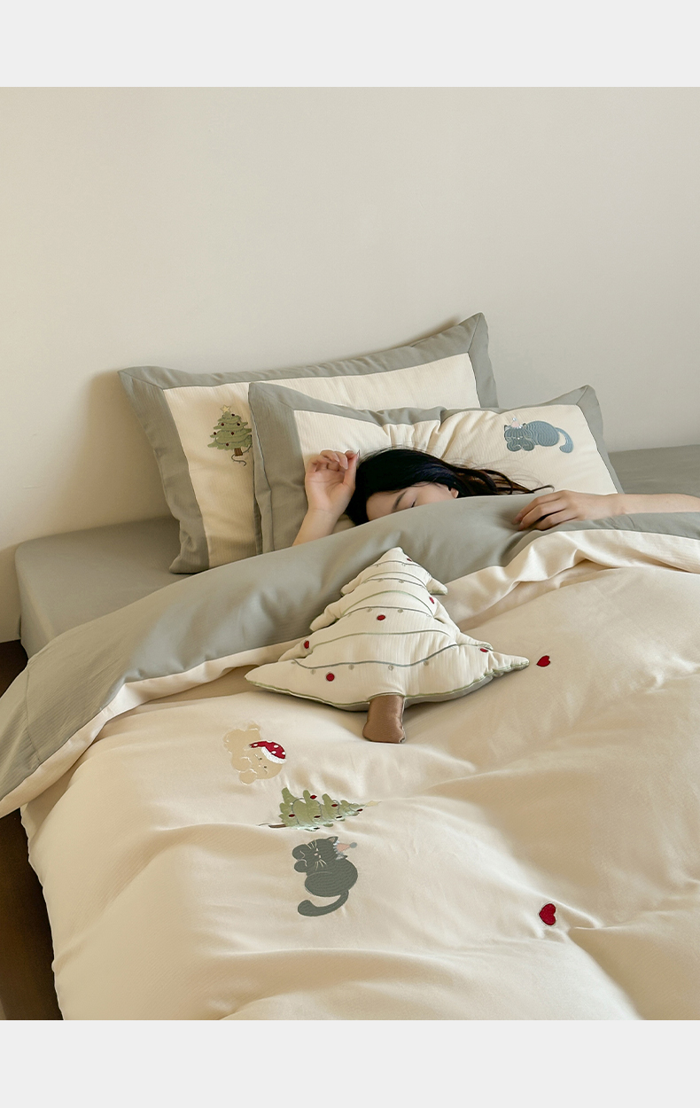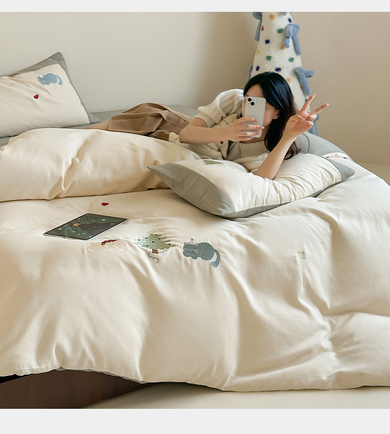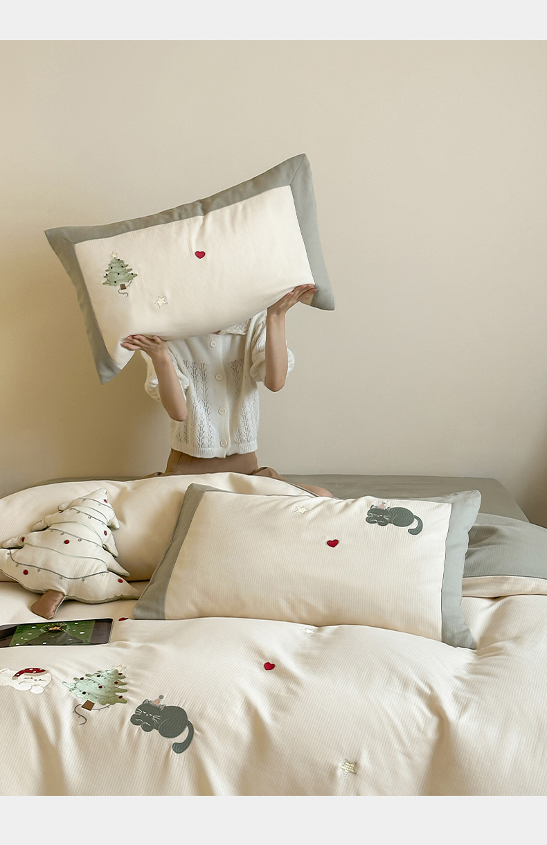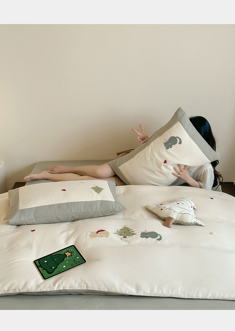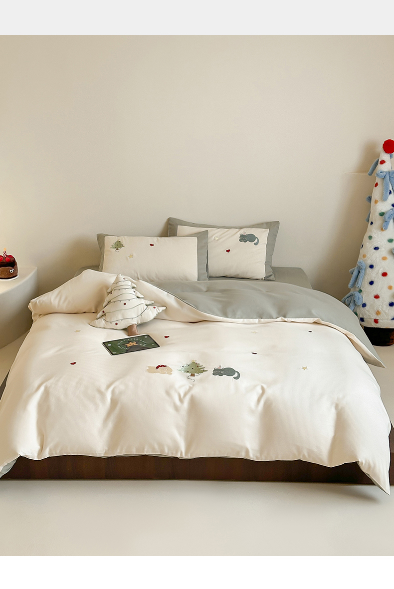 当前位置: 91家纺网 > 商品网购 > 床品套件 > 四件套 > 普通磨毛四件套 > 风向标家纺 2025新款透气软织提花磨毛卡通毛巾绣四件套-风格二 猫咪圣诞树