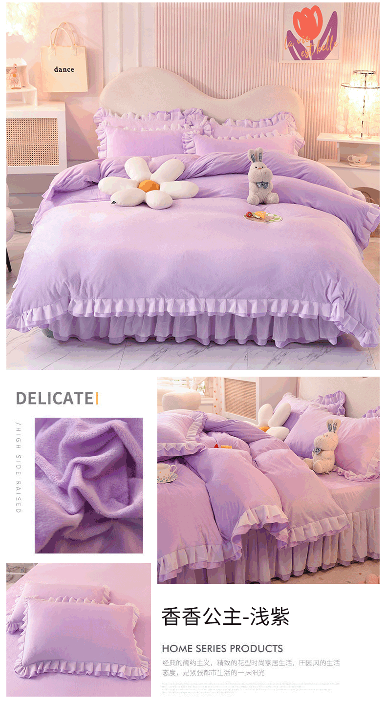 (总)后庭寝室 2025新款牛奶绒床裙四件套倾城,倾城-公主玉,倾城-梦幻紫,倾城-暖粉玉,倾城-暖黄,倾城-少女粉,倾城-天空蓝