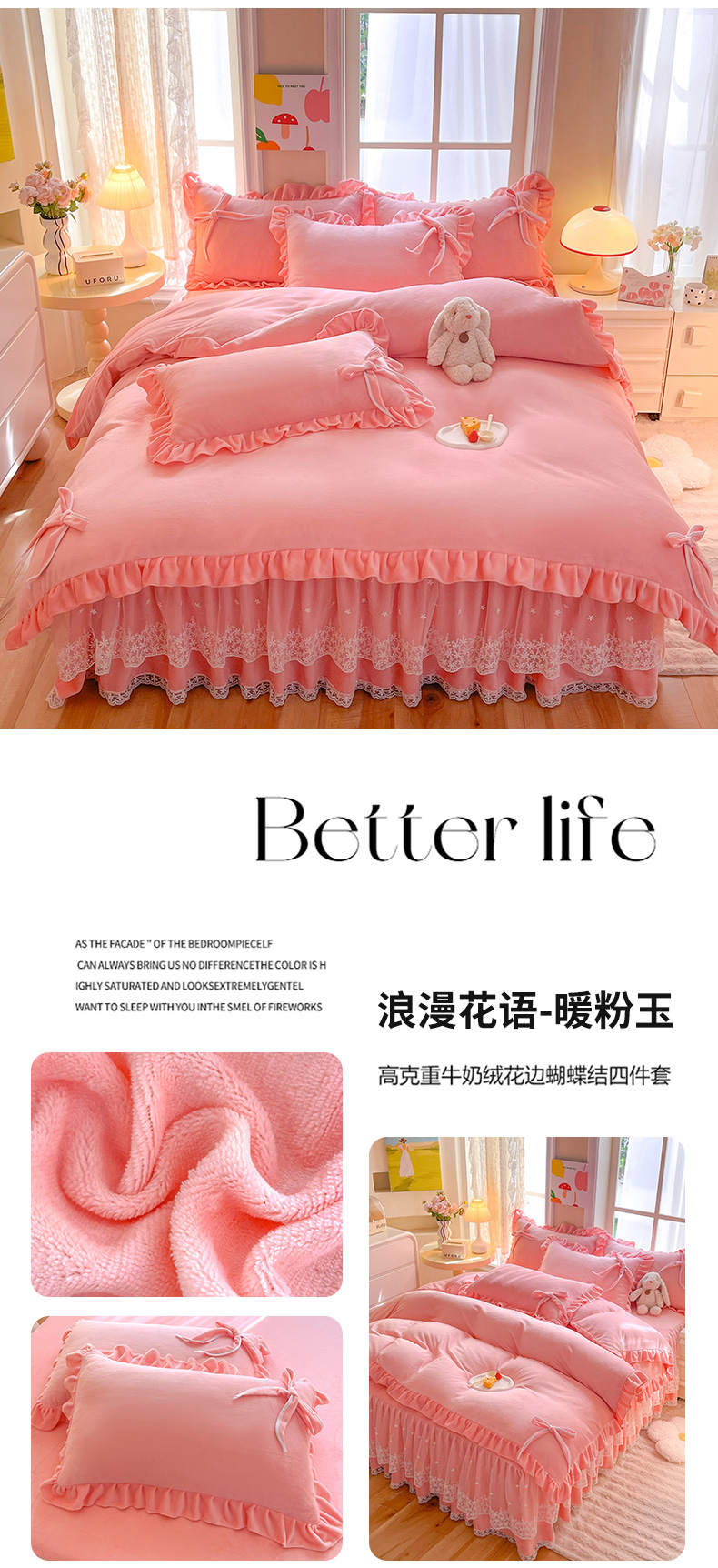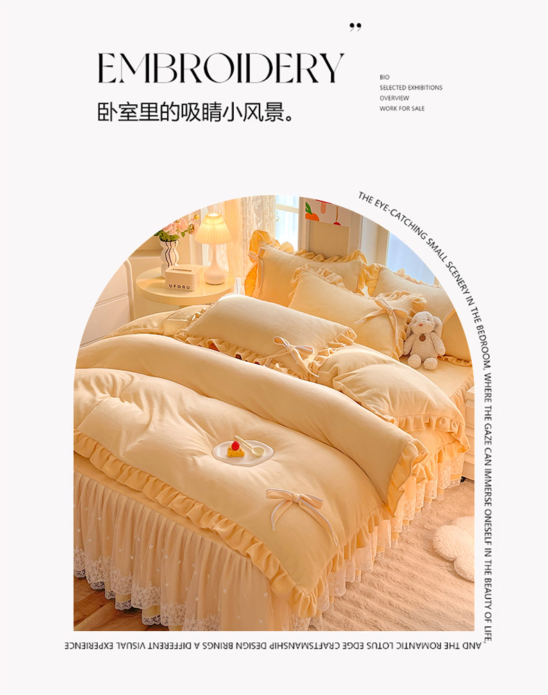 (总)后庭寝室 2025新款牛奶绒花边床裙四件套-浪漫花语系列