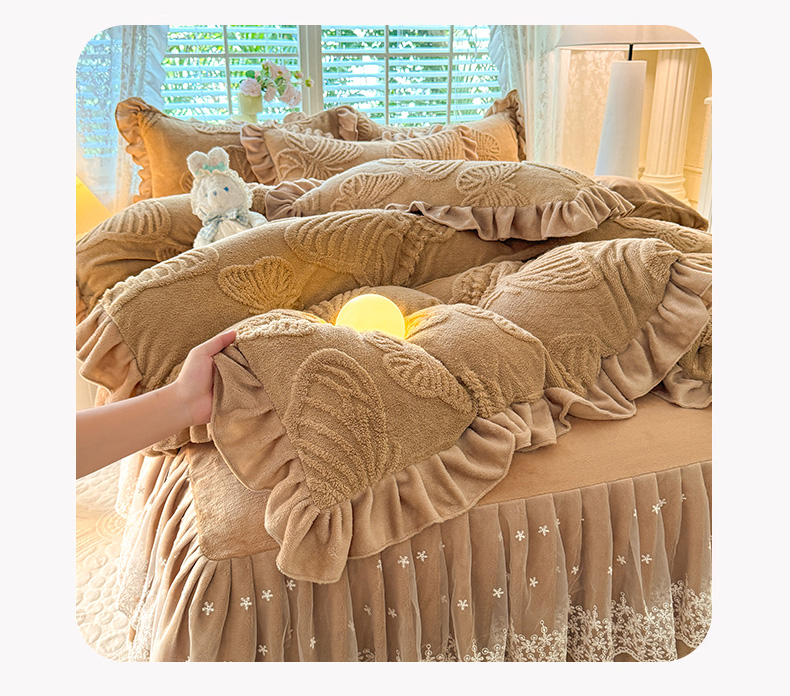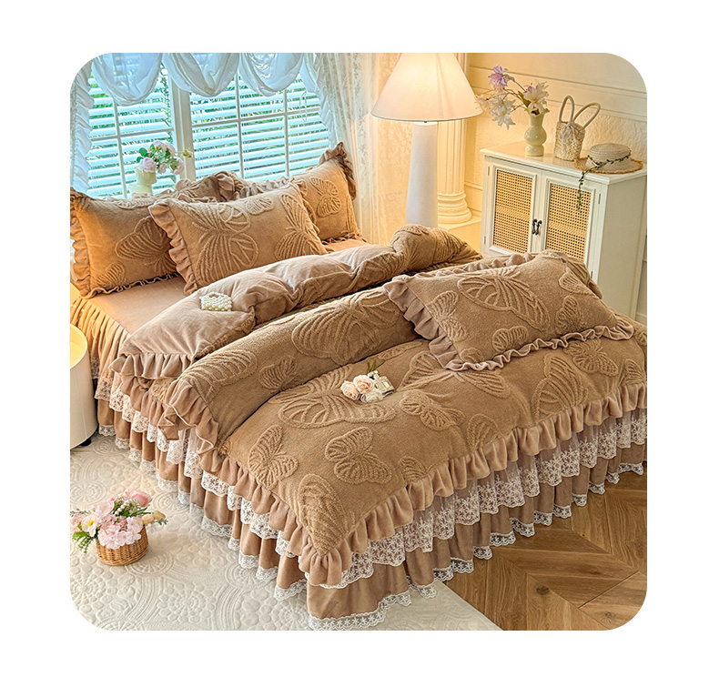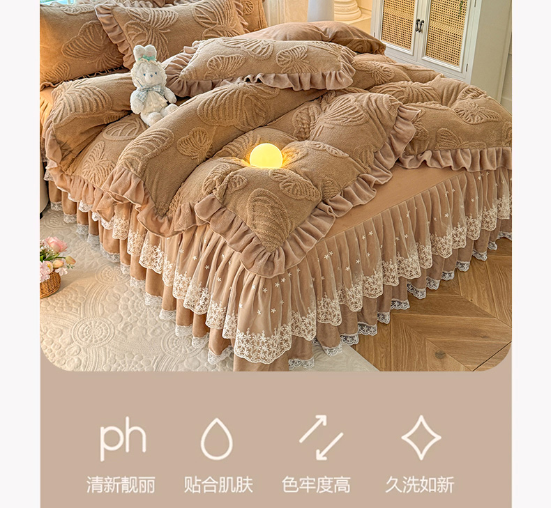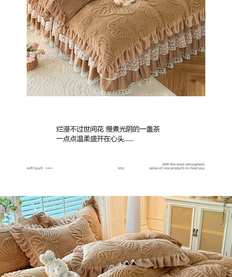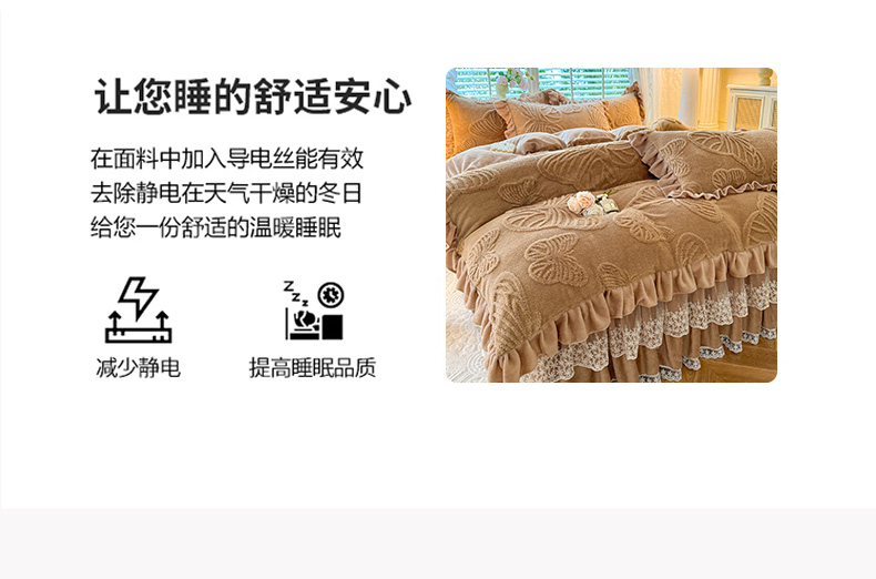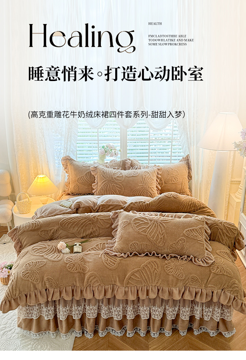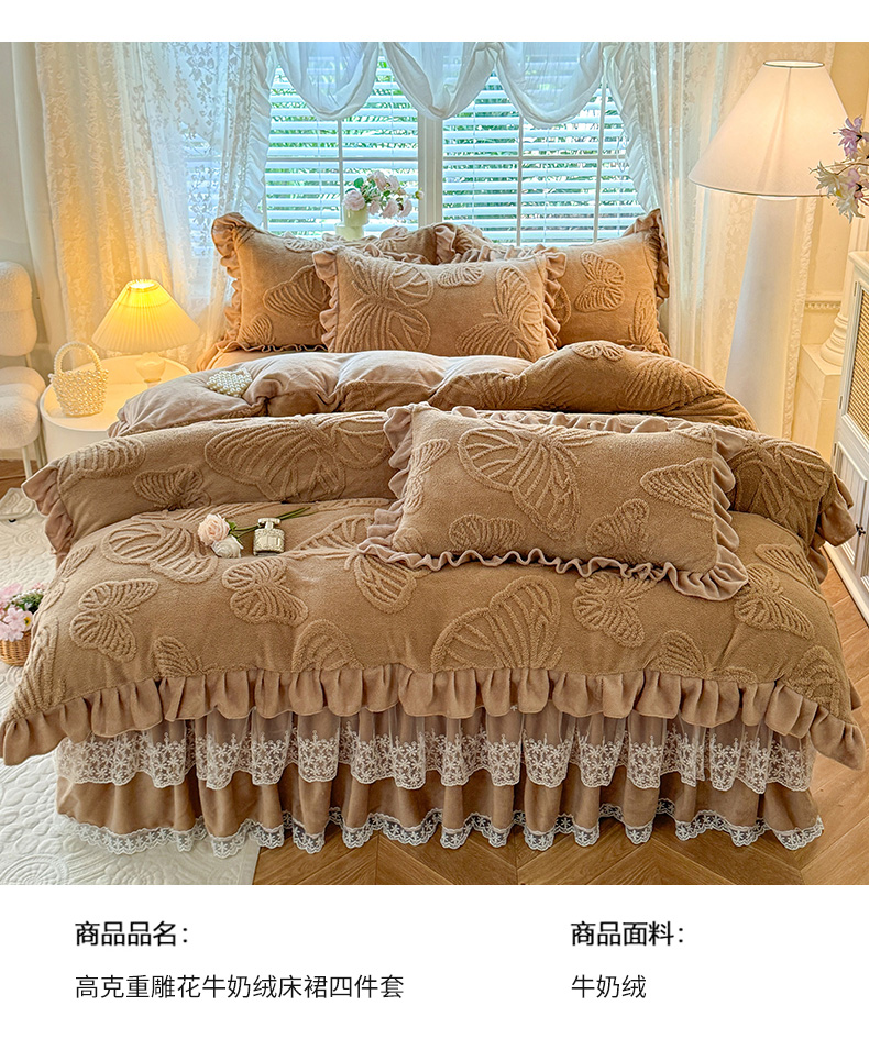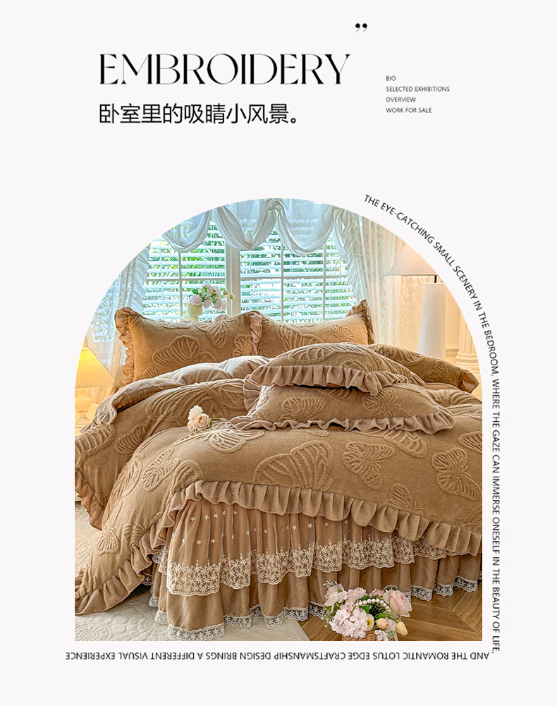 后庭寝室 2025新款牛奶绒床裙四件套-蝶舞翩翩系列 蝶舞翩翩-高贵咖