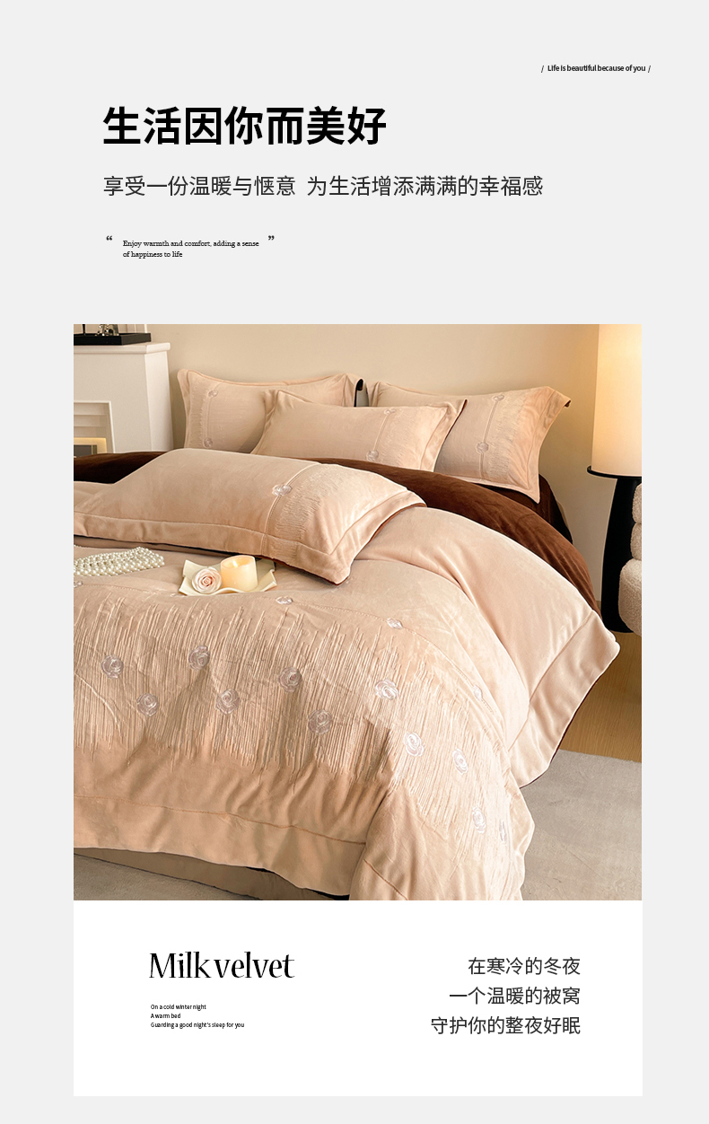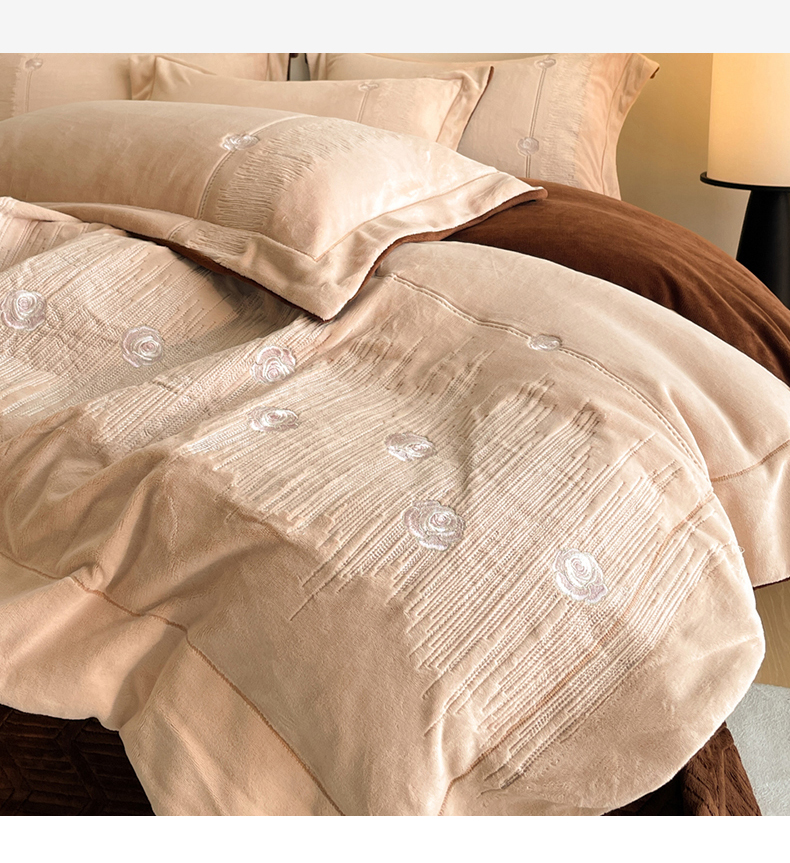 当前位置: 91家纺网 > 商品网购 > 床品套件 > 四件套 > 牛奶绒四件套 > 新方向 2025新款全消光A类刺绣牛奶绒四件套-玫瑰情缘 玫瑰情缘-香槟咖