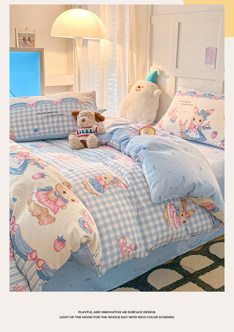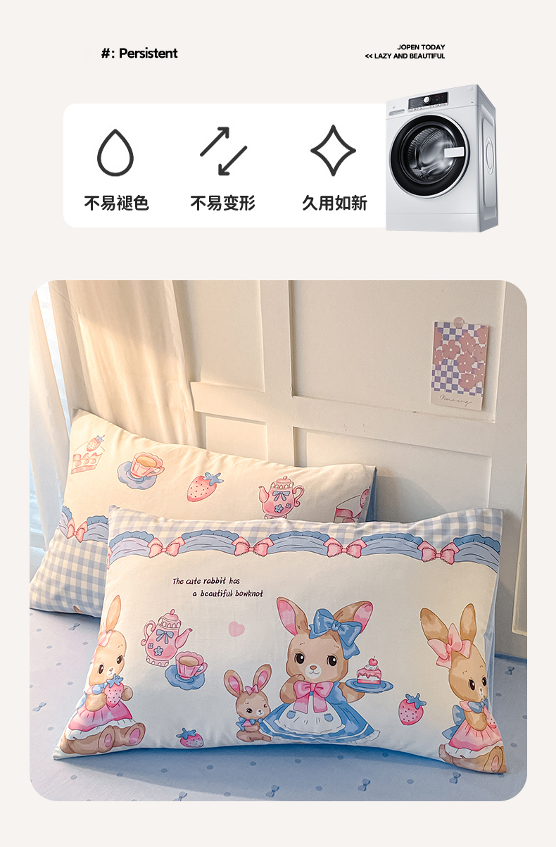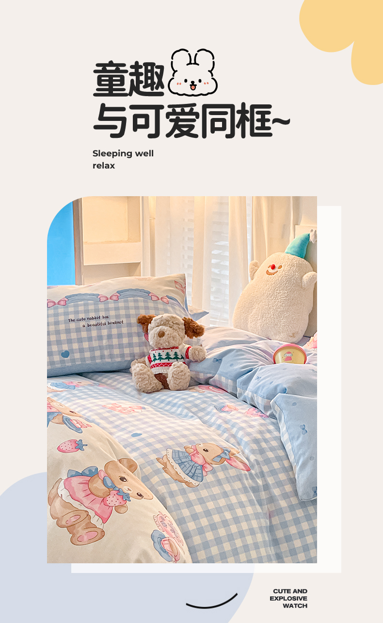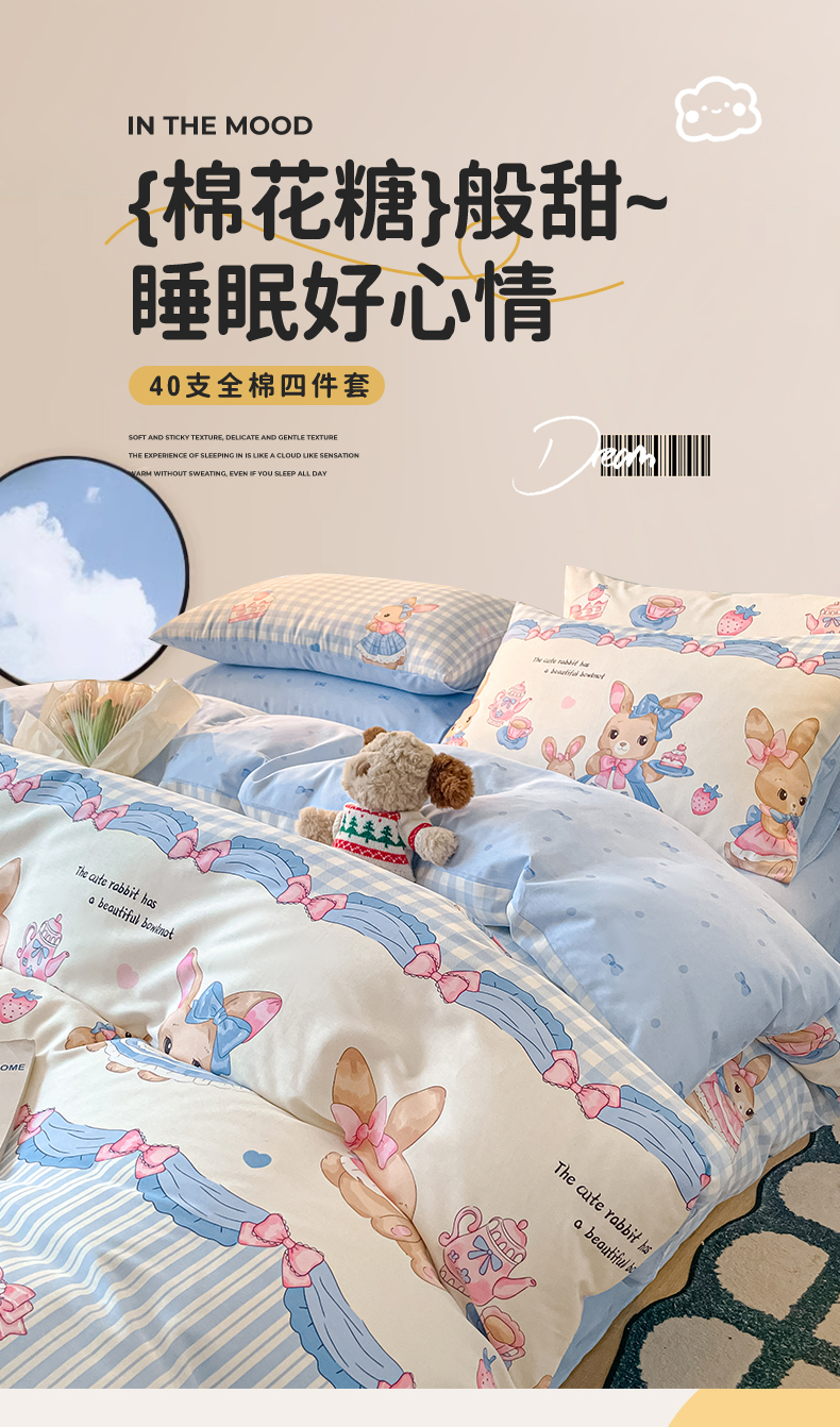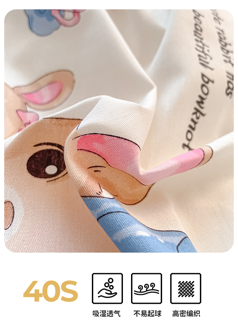 商品名称:澜妃 2025春夏新款12868全棉纯棉印花单被套 萌兔精灵