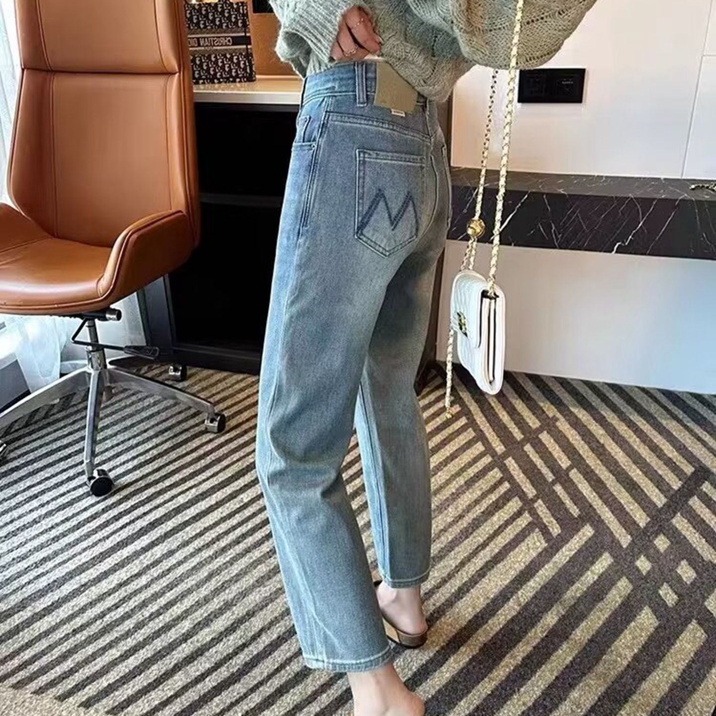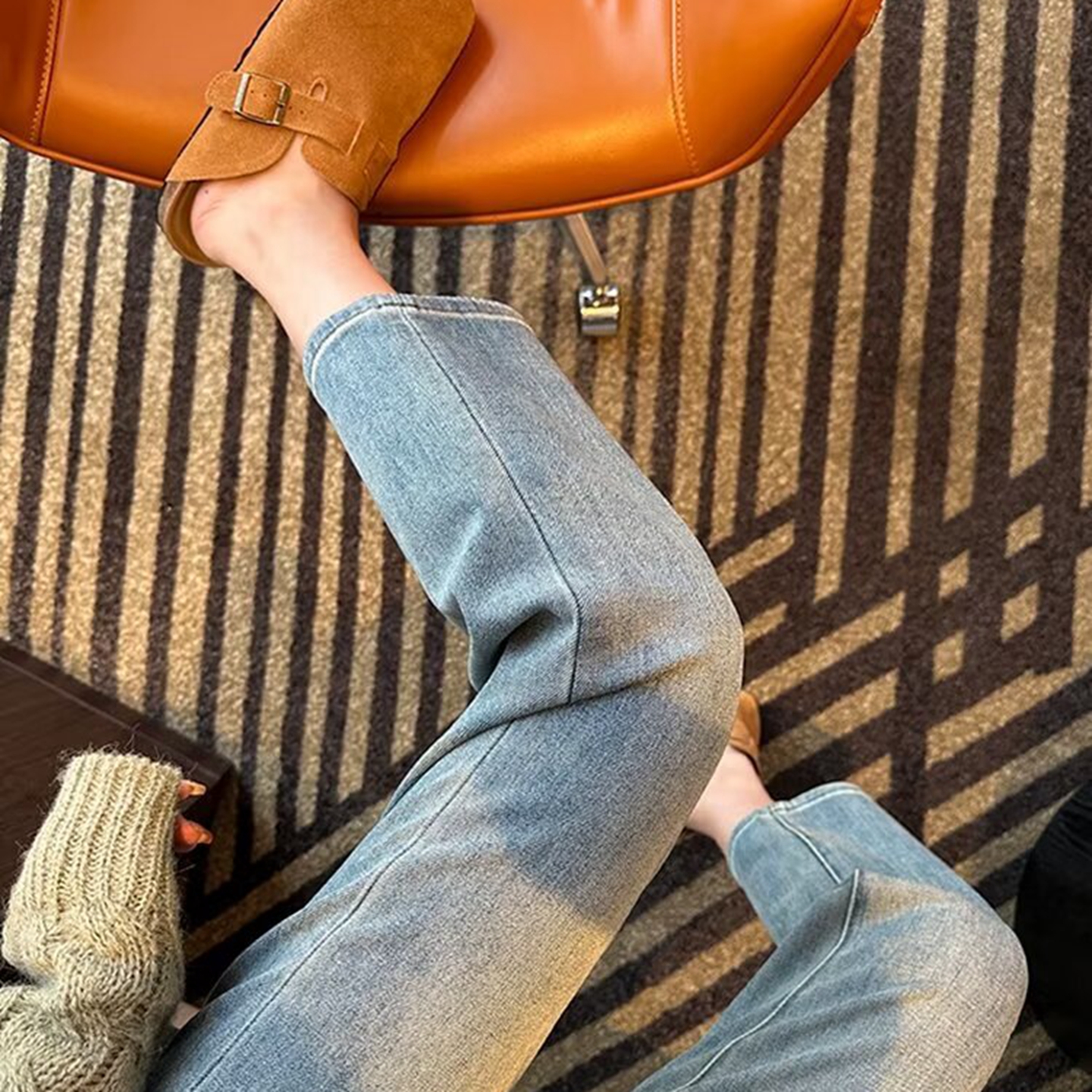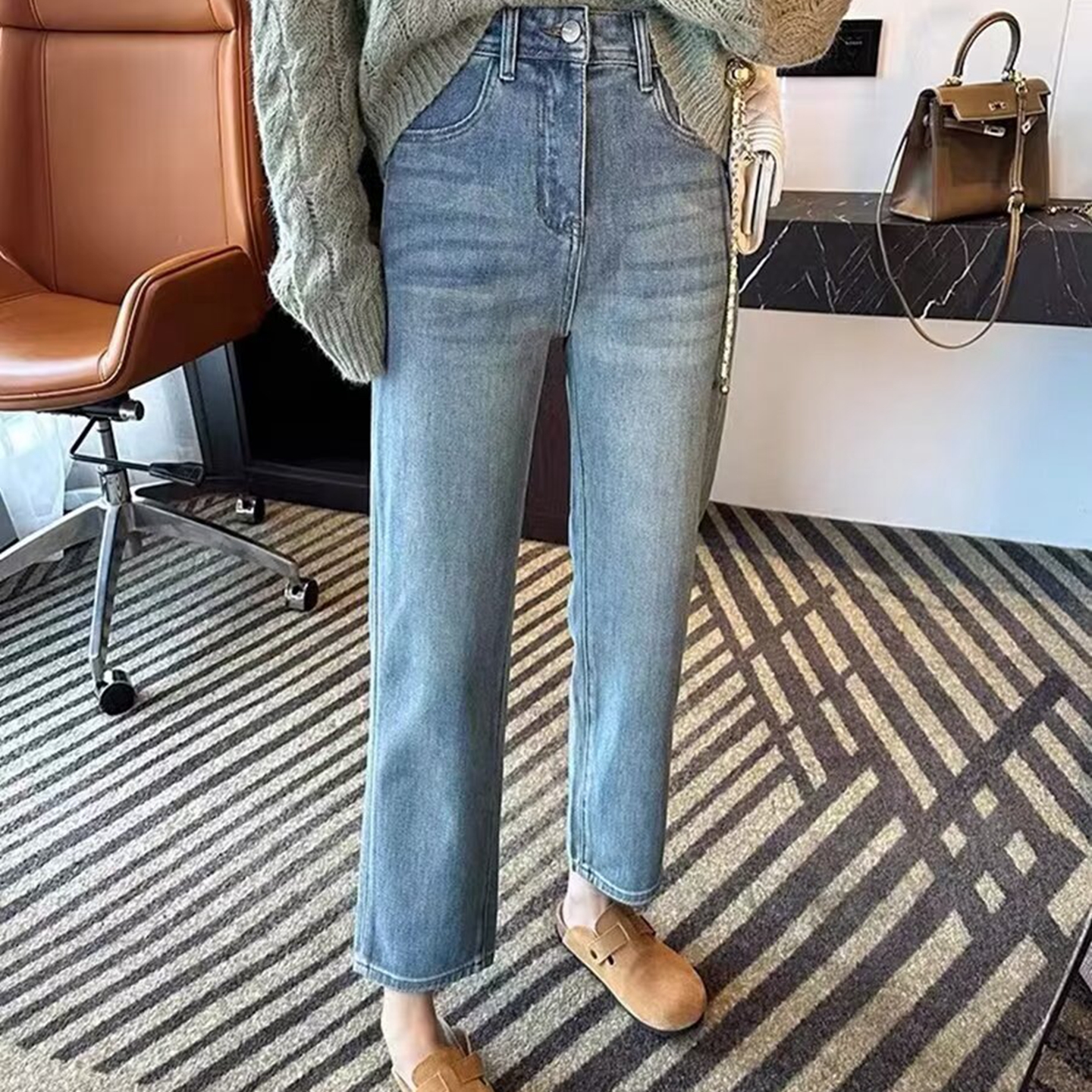 (总)洛兰沙家居馆【只代发】【只代发】 2025新款大码胖mm美式高街直筒牛仔裤女高腰宽松显瘦九分烟管裤子牛仔裤3