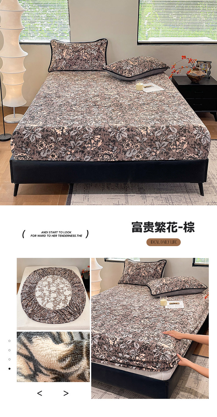 商品名称:库里梦家纺 2025网红直播热款美拉德加厚3D雕花牛奶绒床笠 富贵繁花-咖